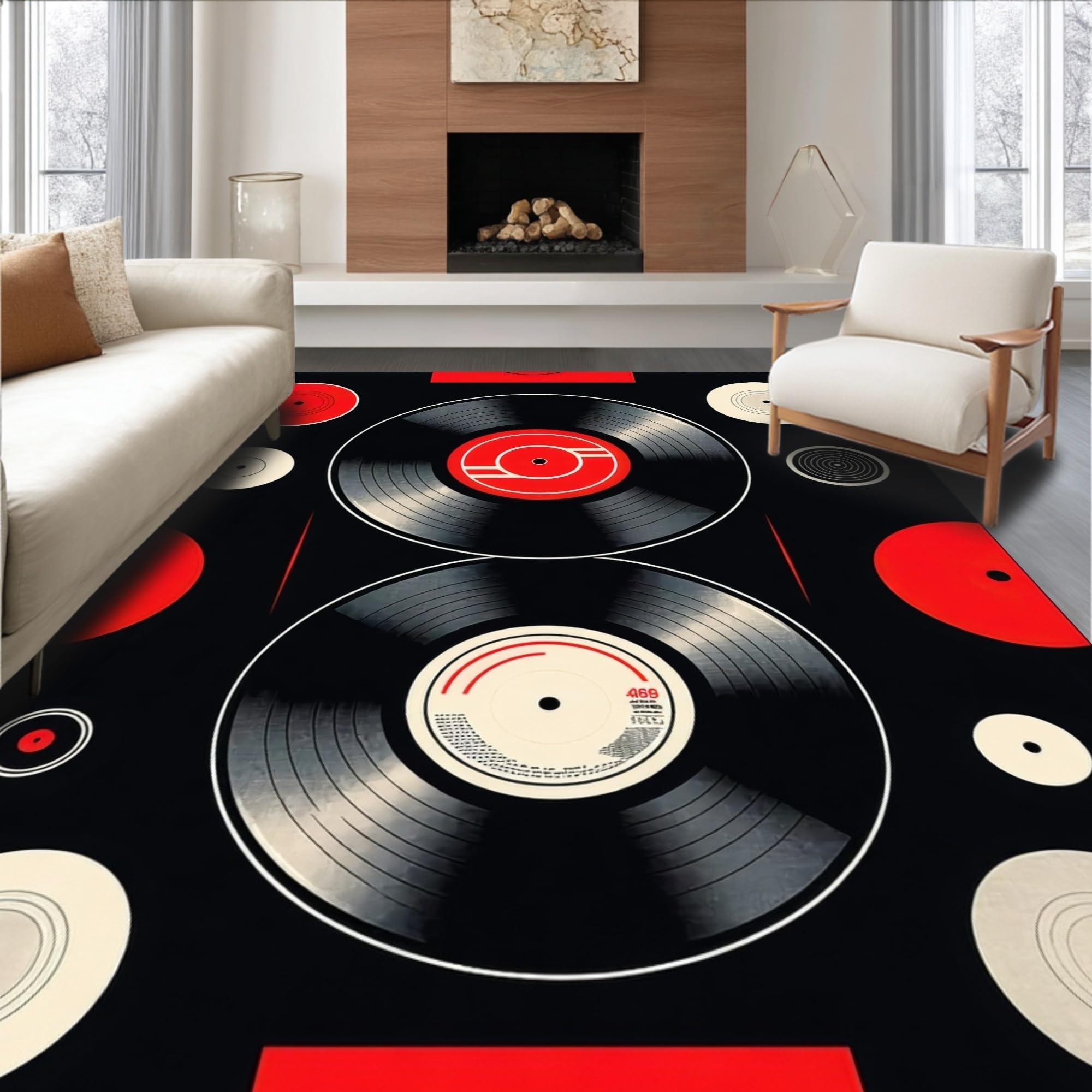 Ultra Soft Area Rug, Non Slip, Stain Resistant, Washable Area Rugs for Living Room, Bedroom, Modern Abstract Music Motif(Red) Overview: