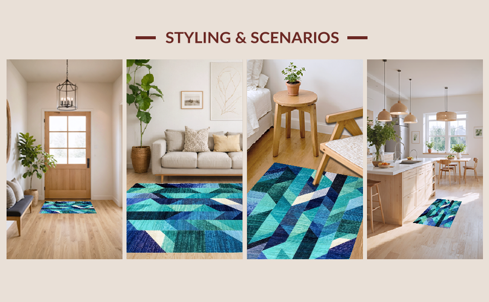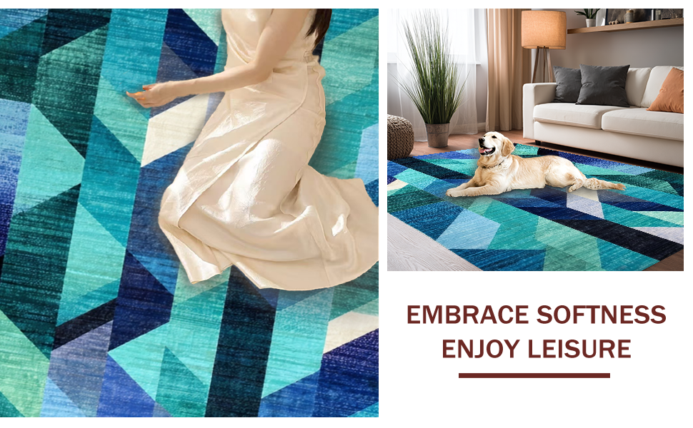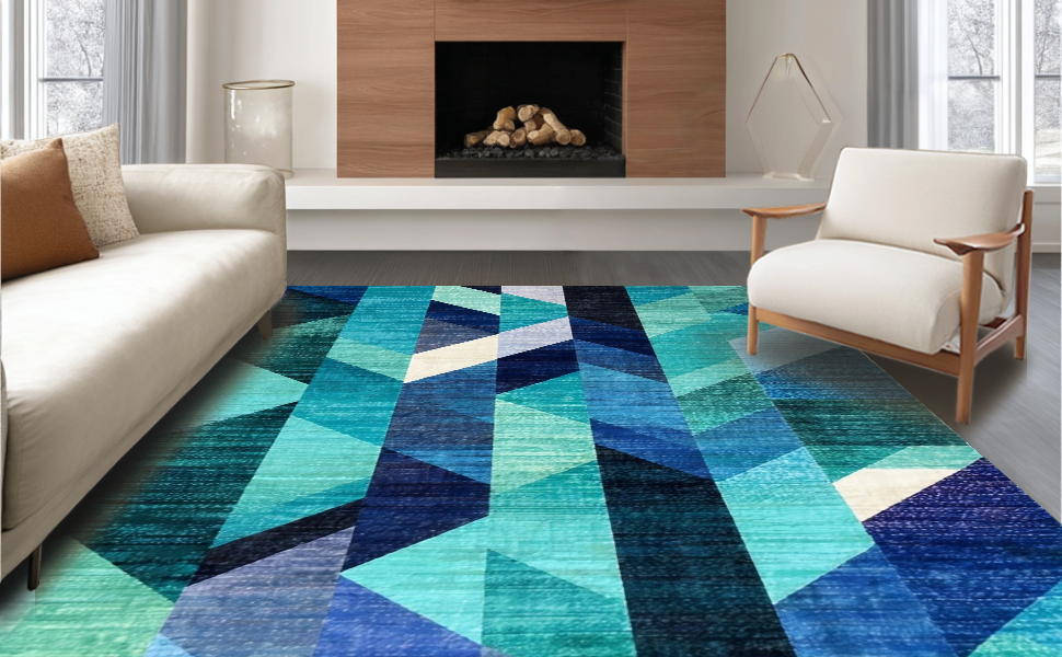 Ultra Soft Area Rug, Non Slip, Stain Resistant, Washable Area Rugs for Living Room, Bedroom, Modern Abstract Teal Rug: Geometric Ombre Carpet Design(Blue) Overview: