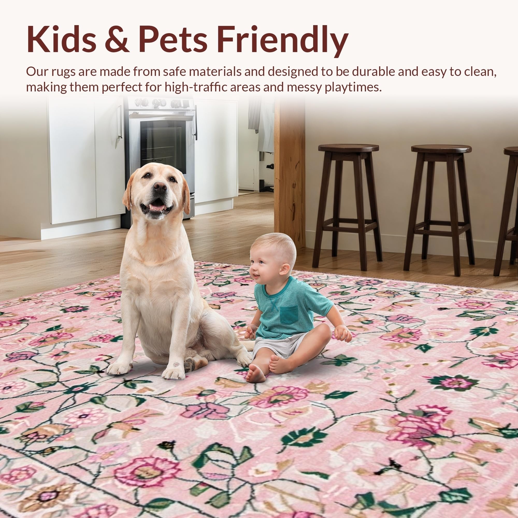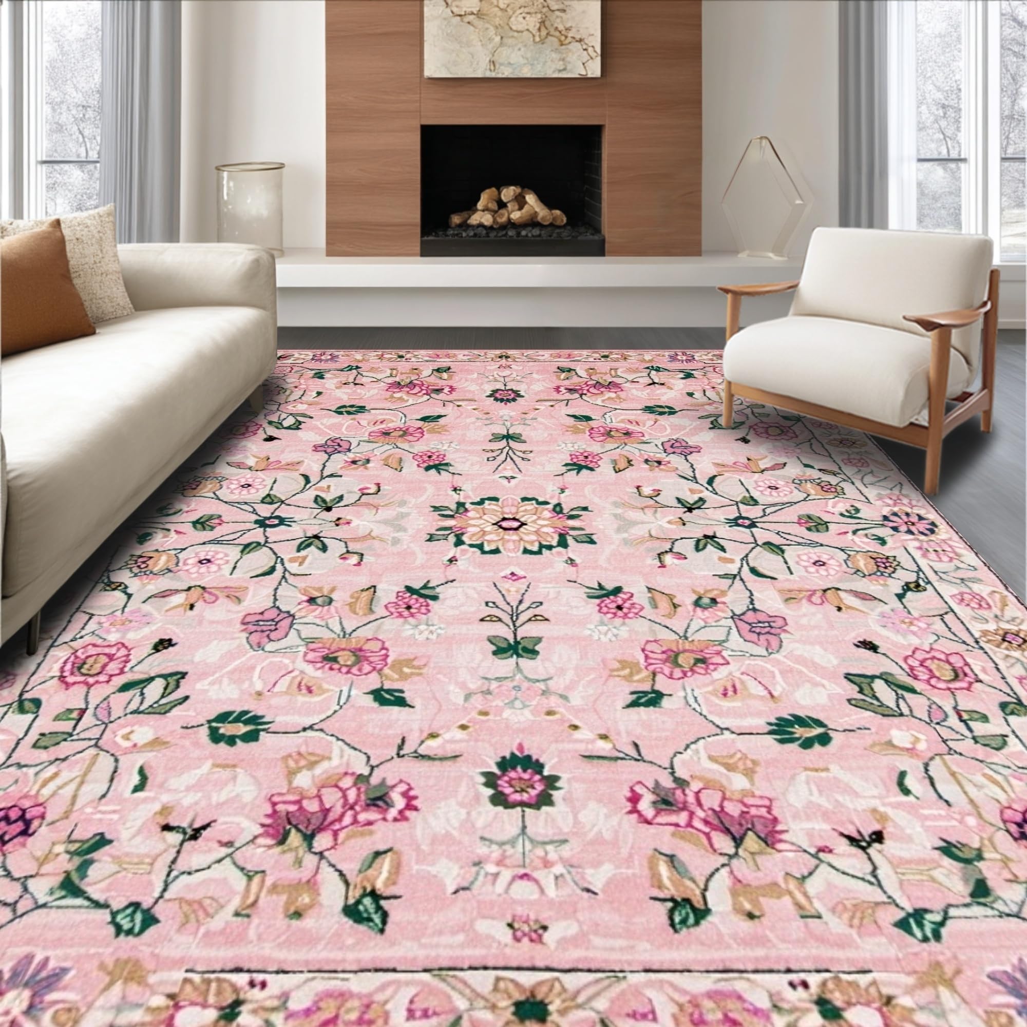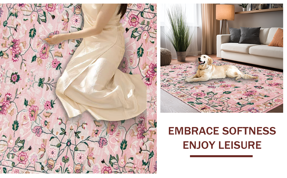 Ultra Soft Area Rug, Non Slip, Stain Resistant, Washable Area Rugs for Living Room, Bedroom, Modern Artistic Floral Accent(Pink) Overview: