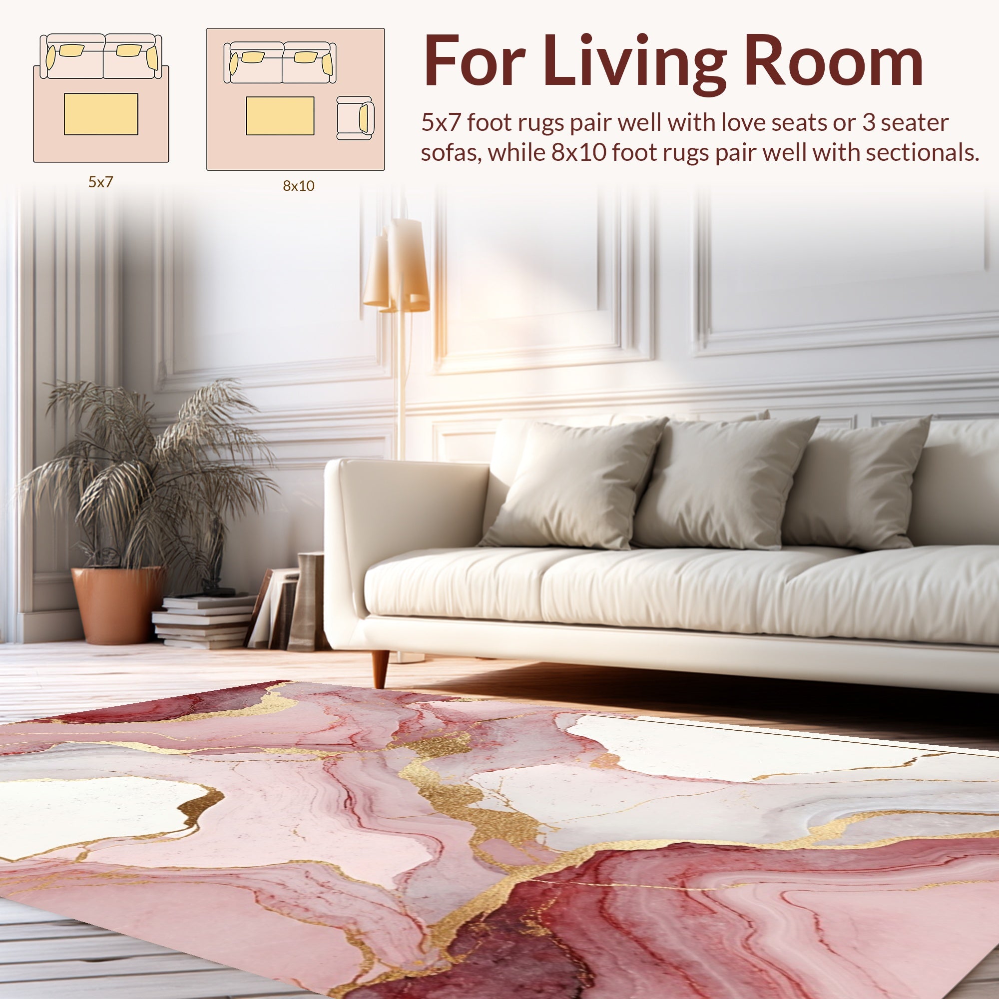 Flatwoven High Traffic Area Rug, Modern Artistic Pink Gold Flow, Non Slip, Stain Resistant, Washable Area Rugs for Living Room, Bedroom (Red) Overview:
