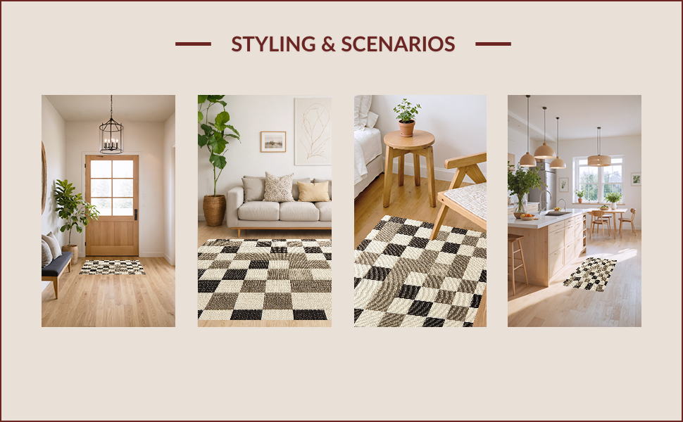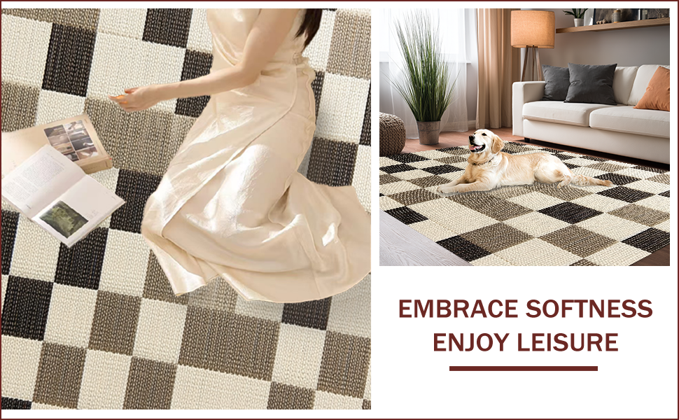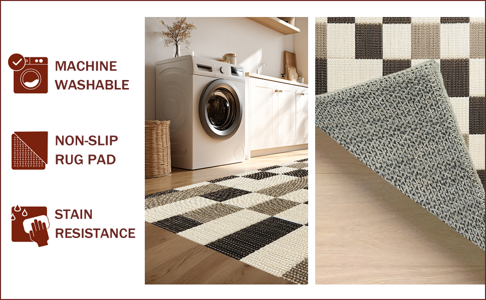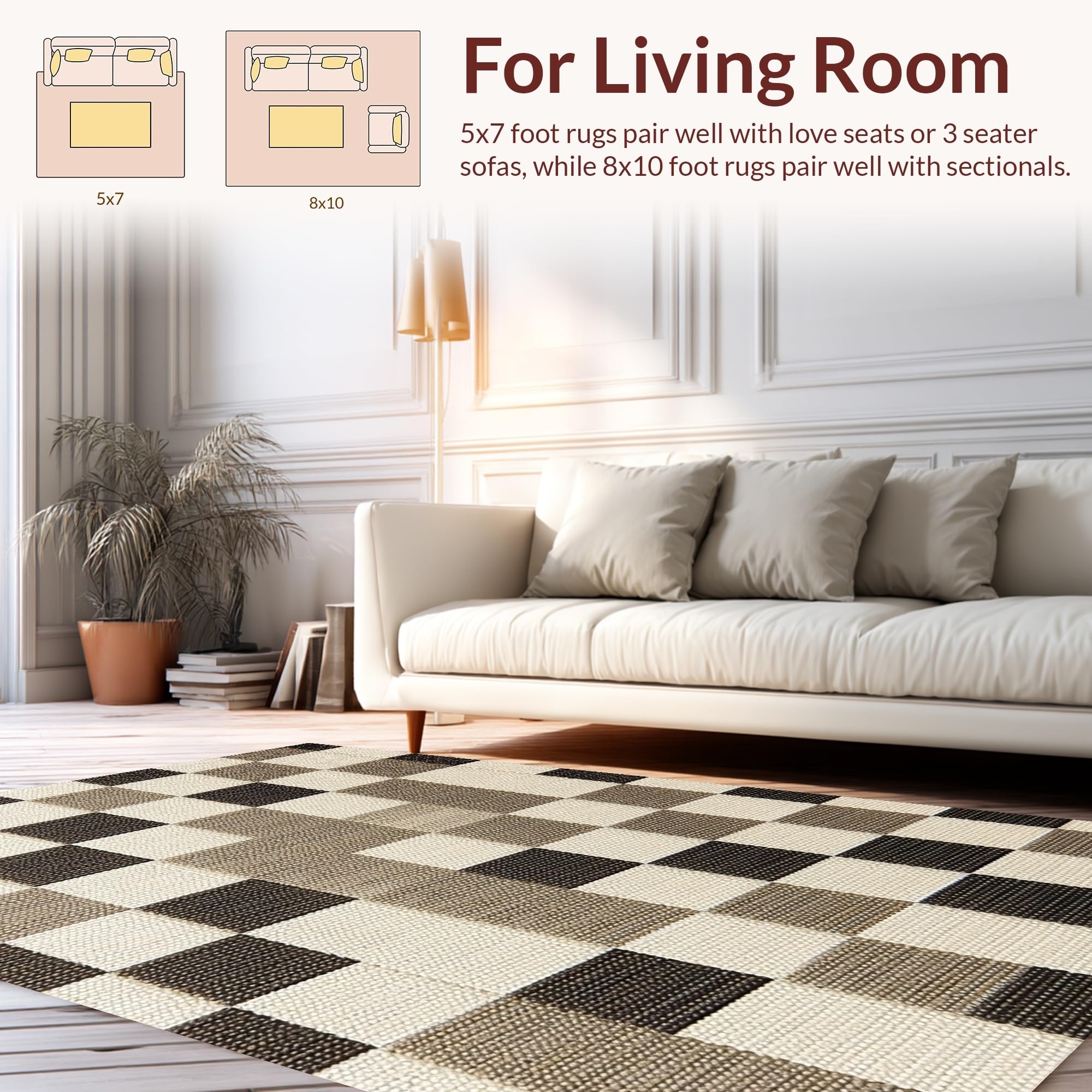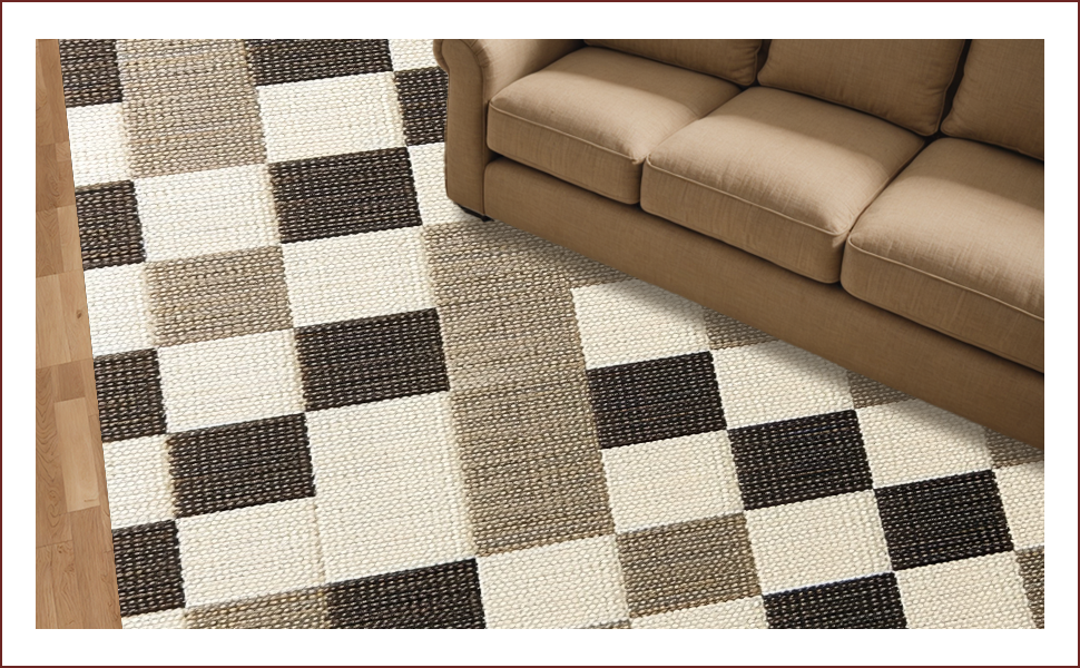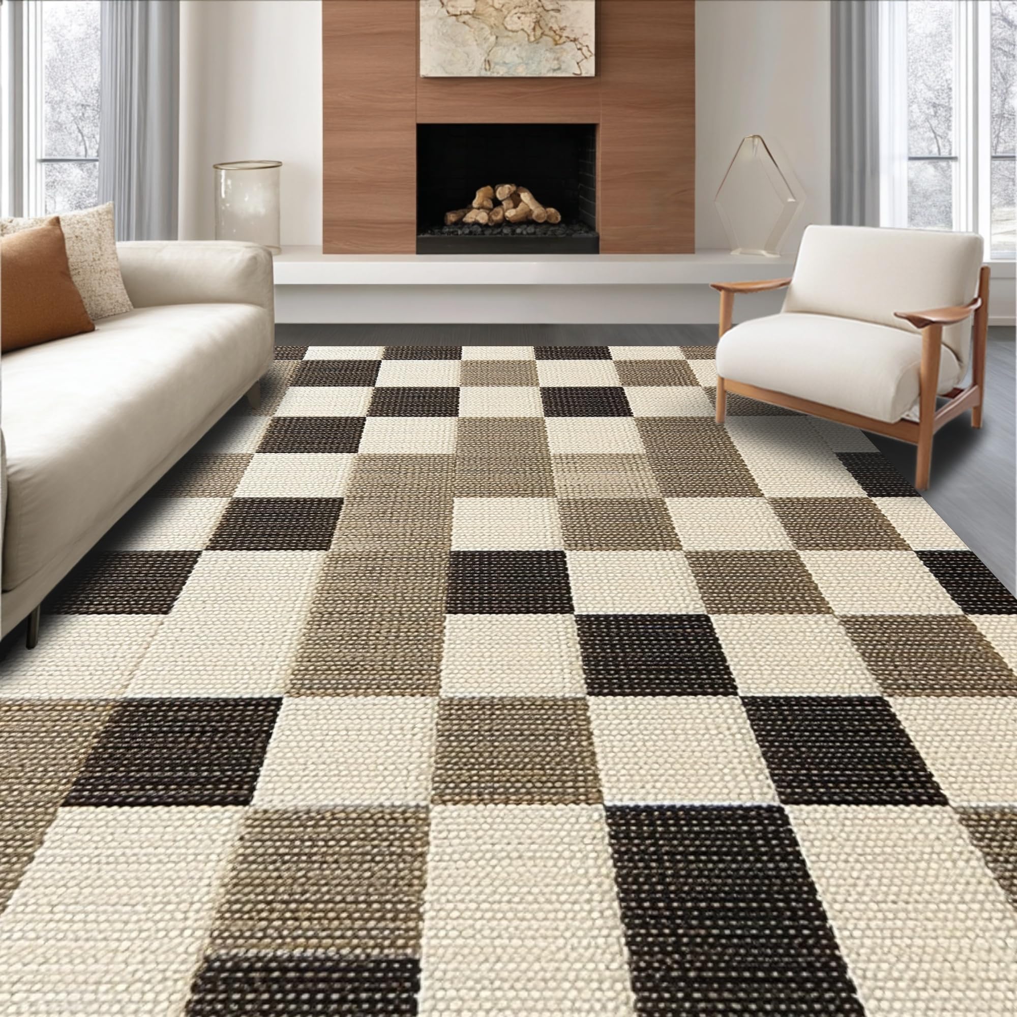 Ultra Soft Area Rug, Non Slip, Stain Resistant, Washable Area Rugs for Living Room, Bedroom, Modern Beige Checkered Rug for Living Room Decor(Beige) Overview: