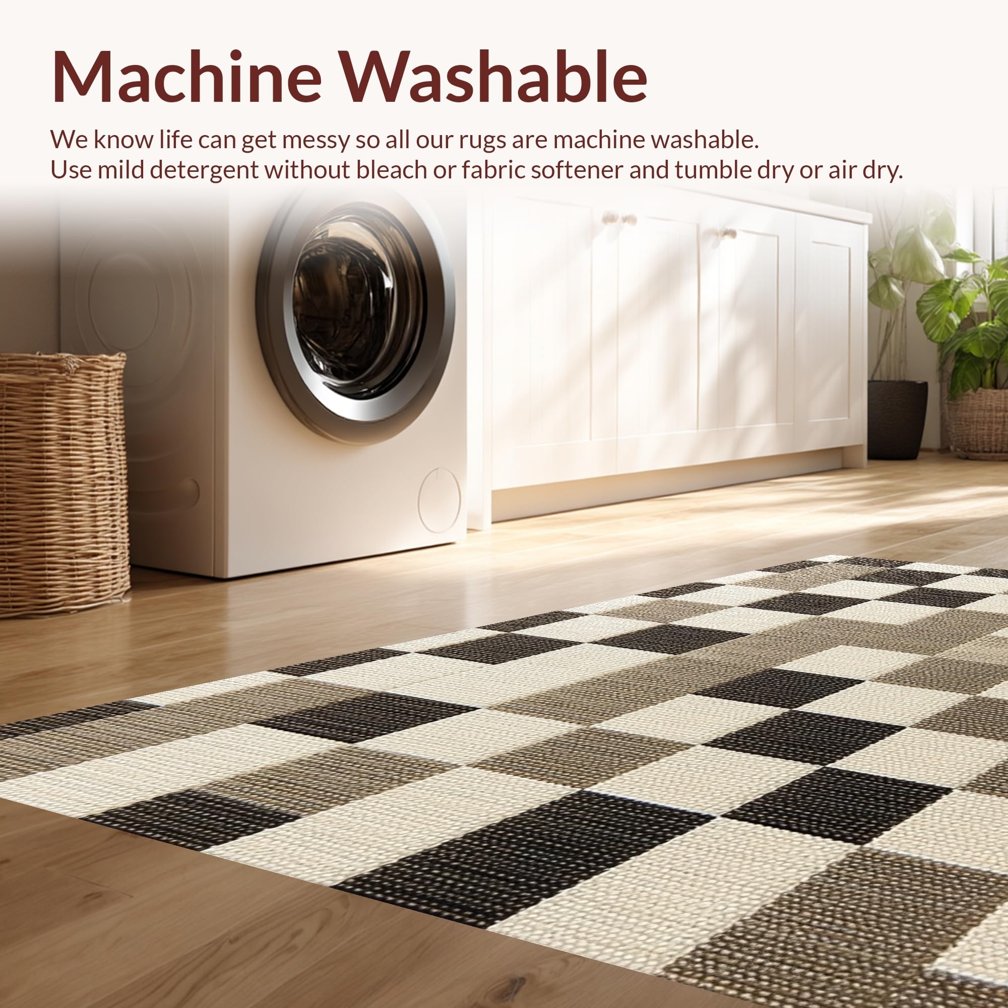 - Machine Washable: Our rugs can be easily thrown in the wash machine.