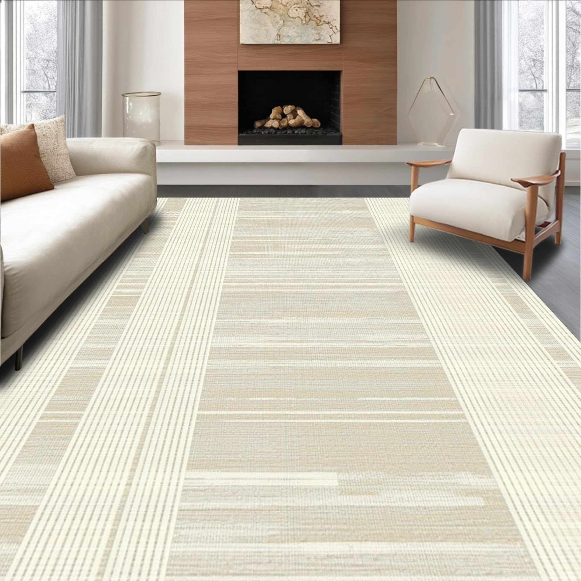 Ultra Soft Area Rug, Non Slip, Stain Resistant, Washable Area Rugs for Living Room, Bedroom, Modern Beige Stripe Cowhide Stylish Animal Skin for Home(Beige) Overview: