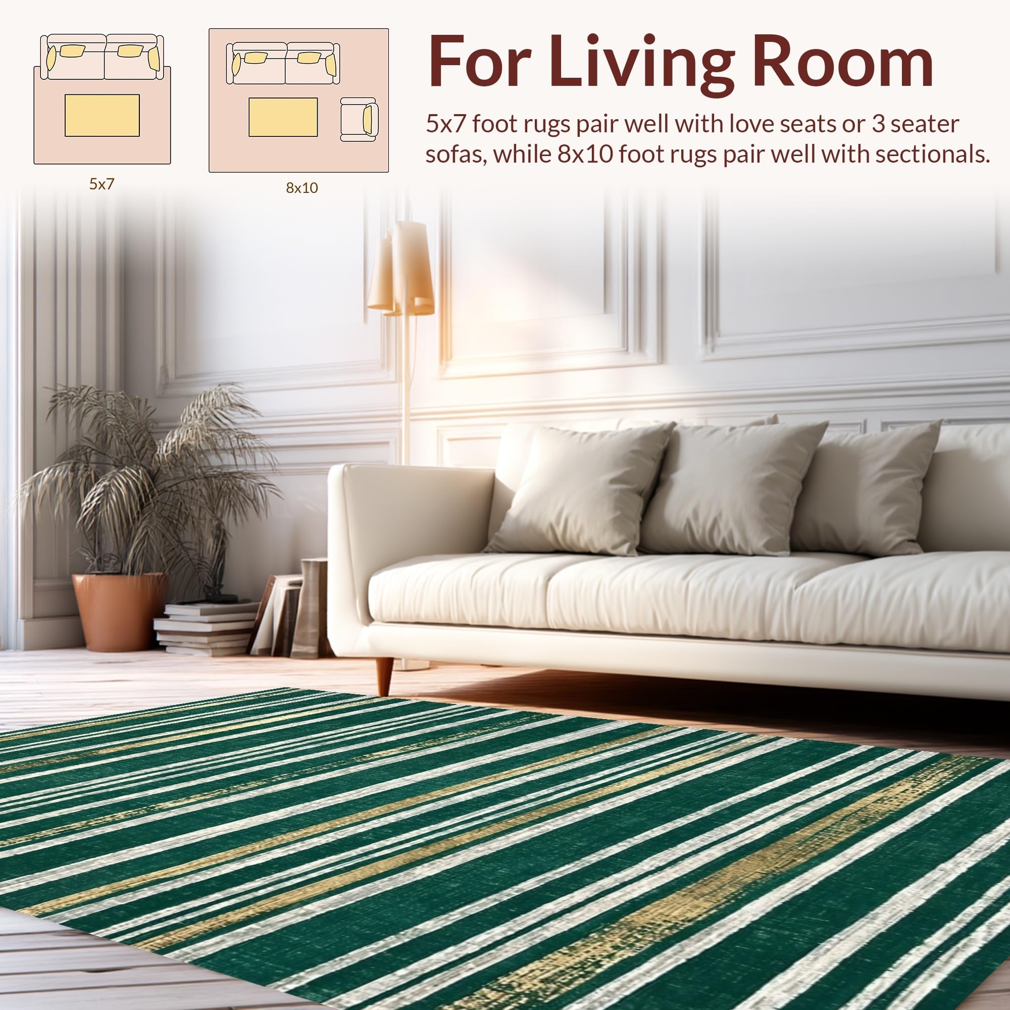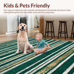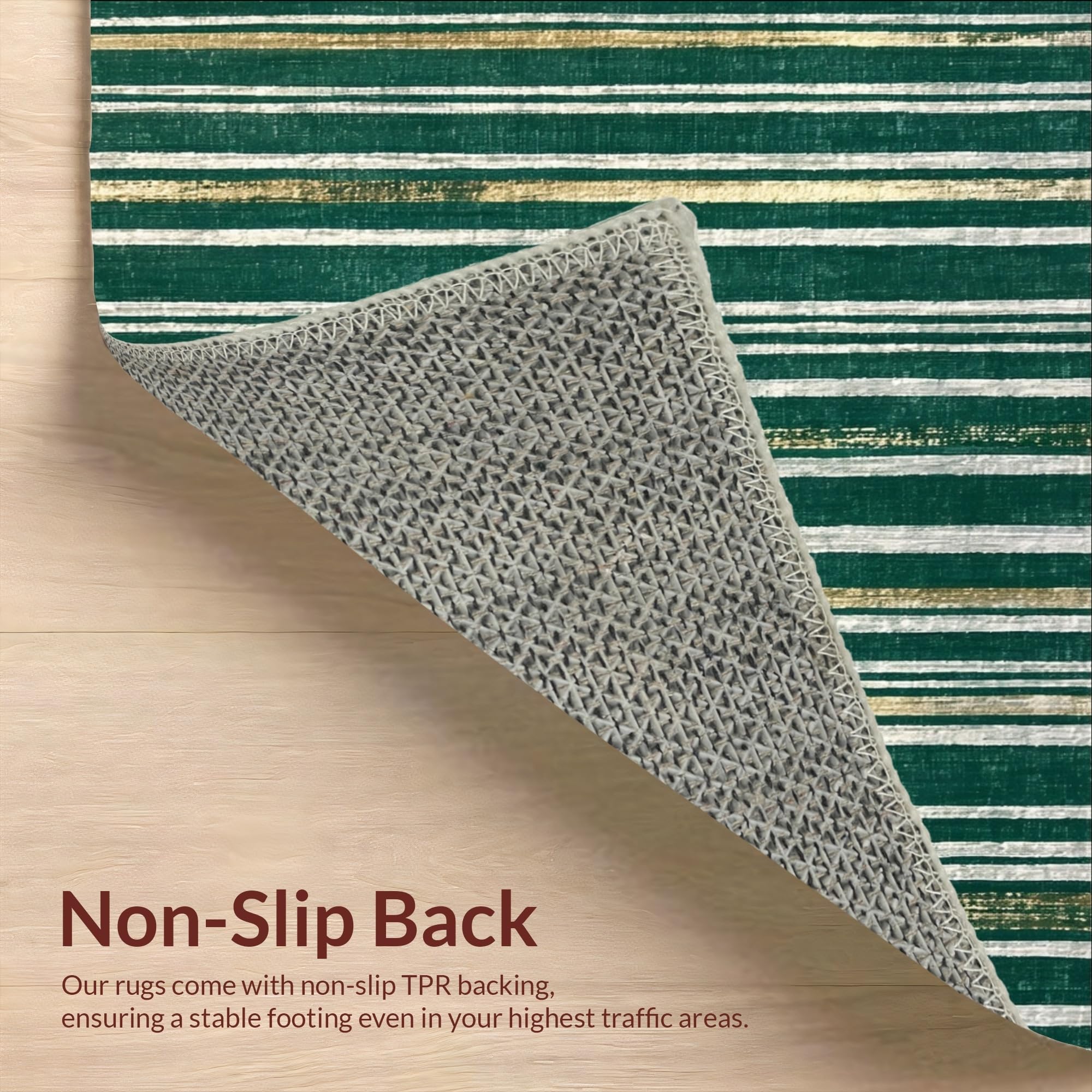 Ultra Soft Area Rug, Non Slip, Stain Resistant, Washable Area Rugs for Living Room, Bedroom, Modern Black and White Striped Rug Machine Washable Non Slip Backing(Green) Overview: