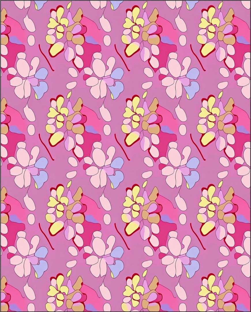 Modern Blossom Tapestry with Abstract Florals and Subtle Metallic Highlights(Pink)