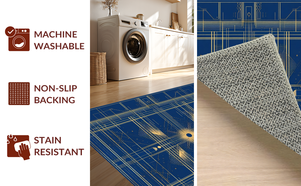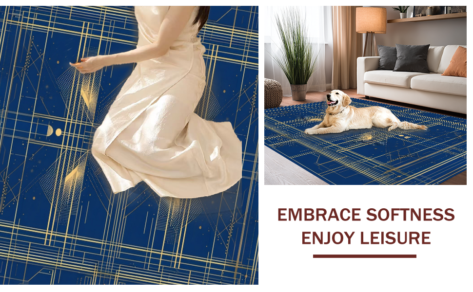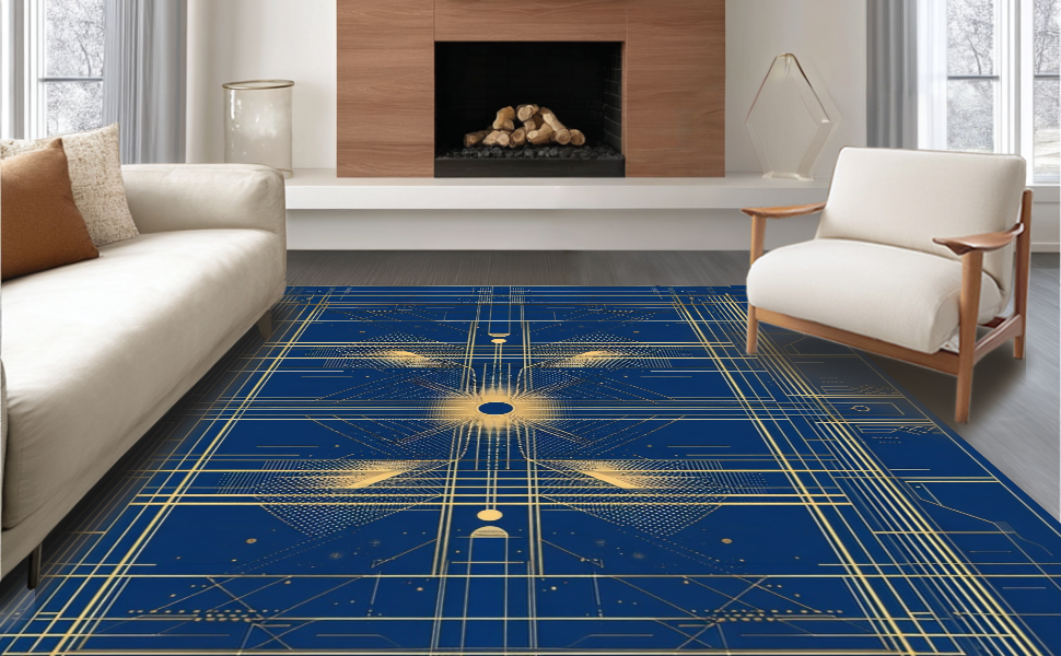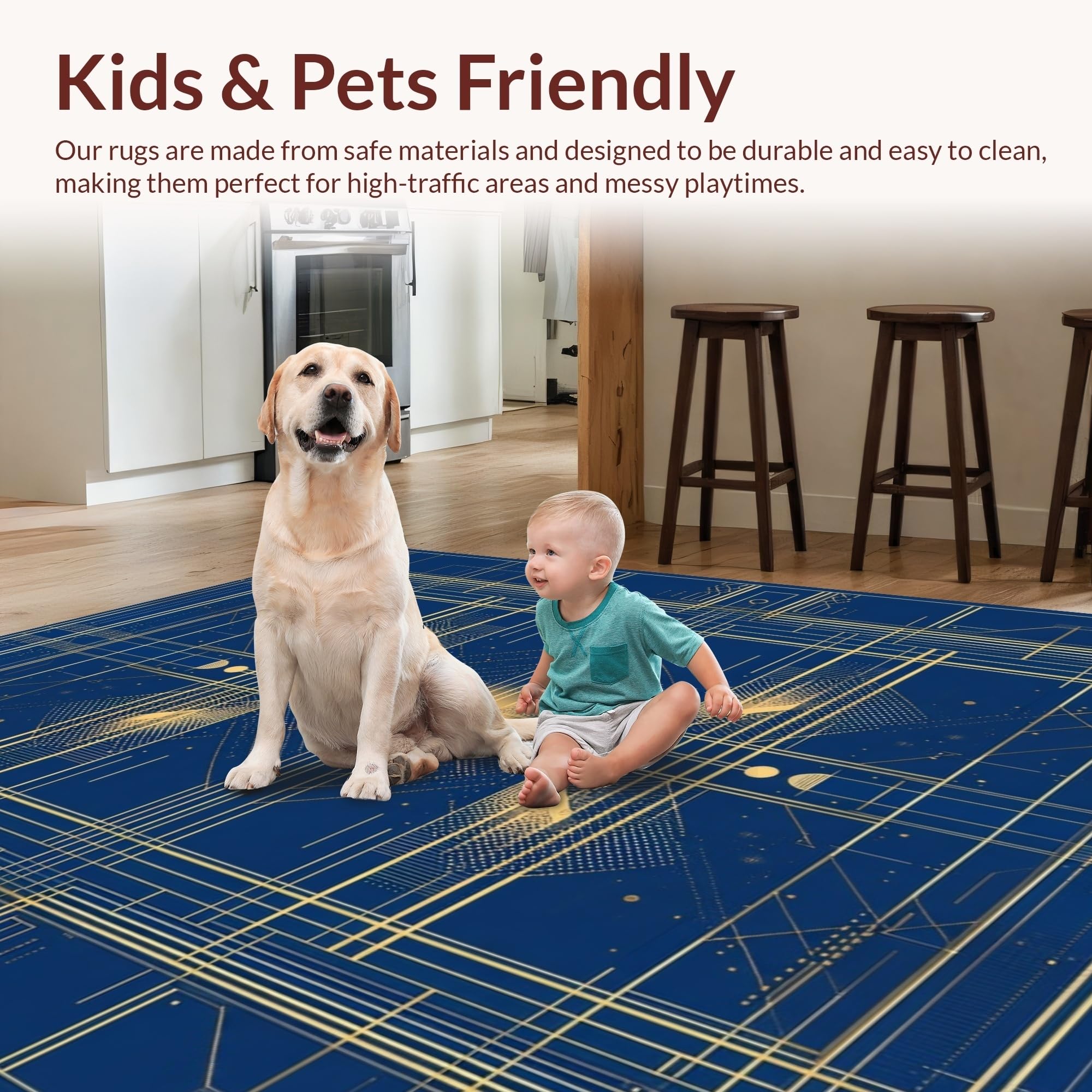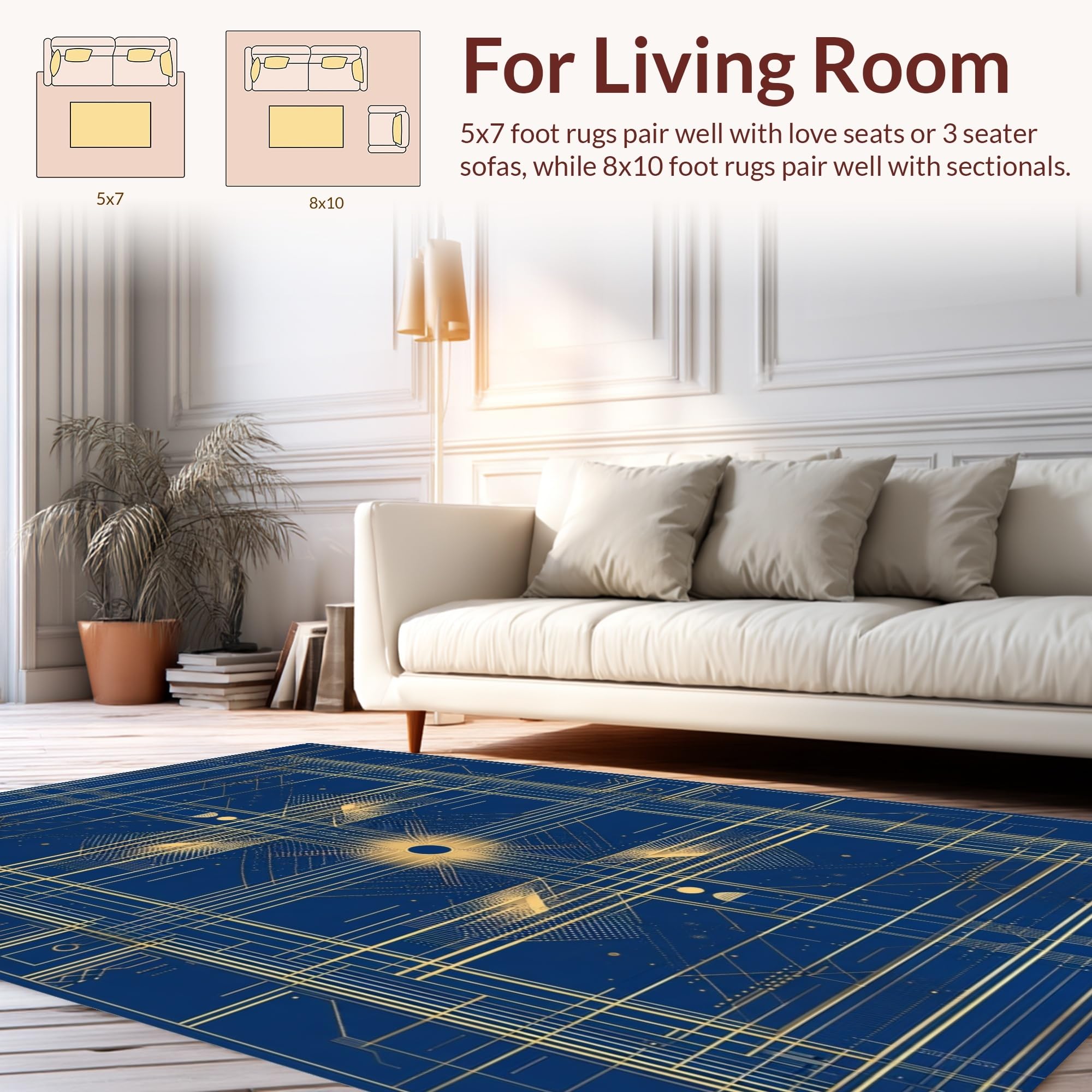 Ultra Soft Area Rug, Non Slip, Stain Resistant, Washable Area Rugs for Living Room, Bedroom, Modern Blue-Gold Abstract Elegance(Blue) Overview:
