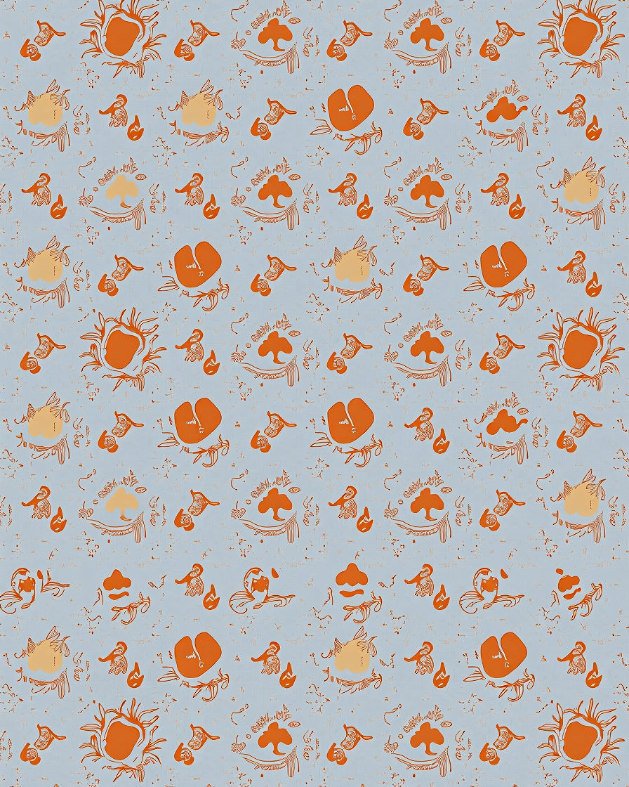 Modern Boho Scrollwork with Scattered Ornamental Blotches(Blue)