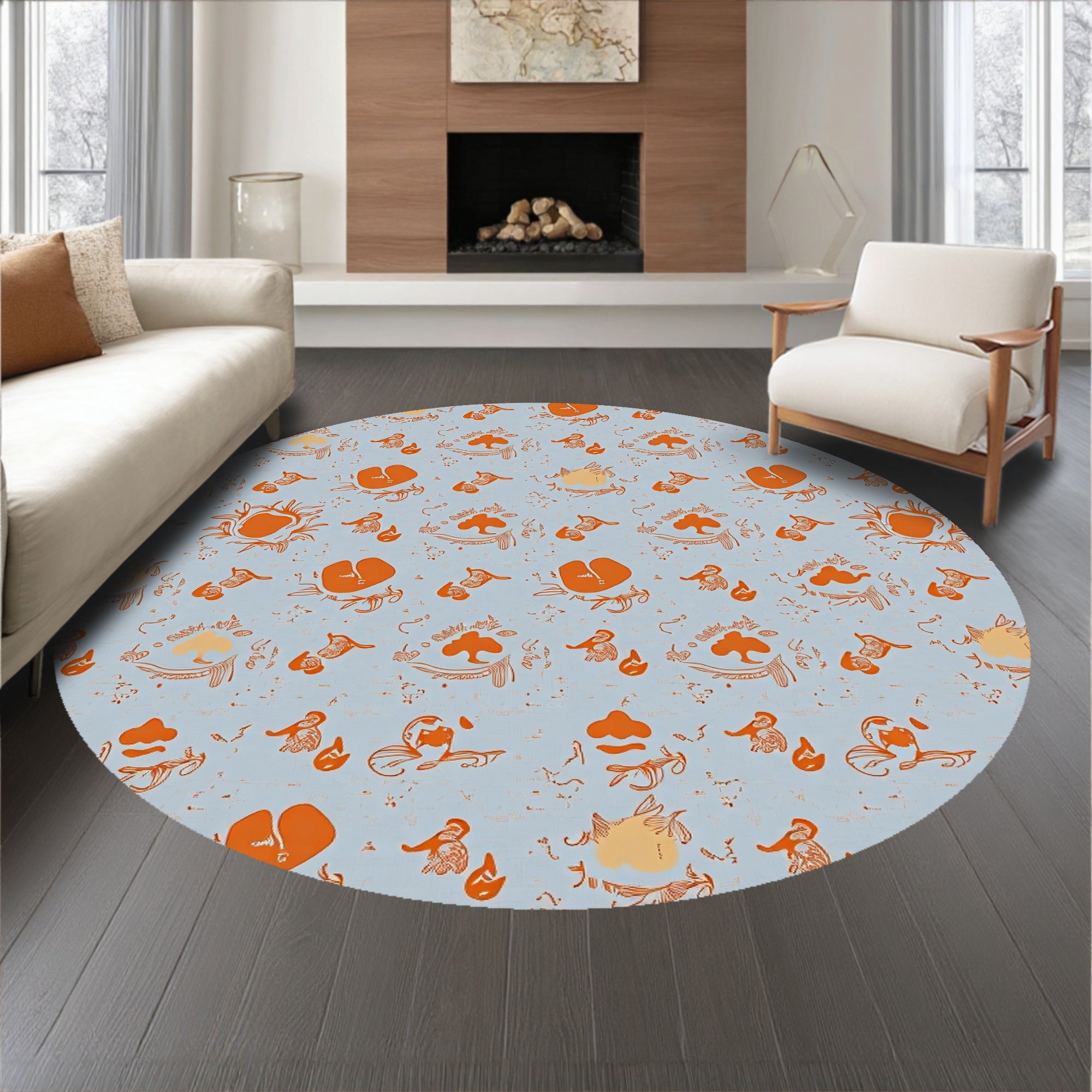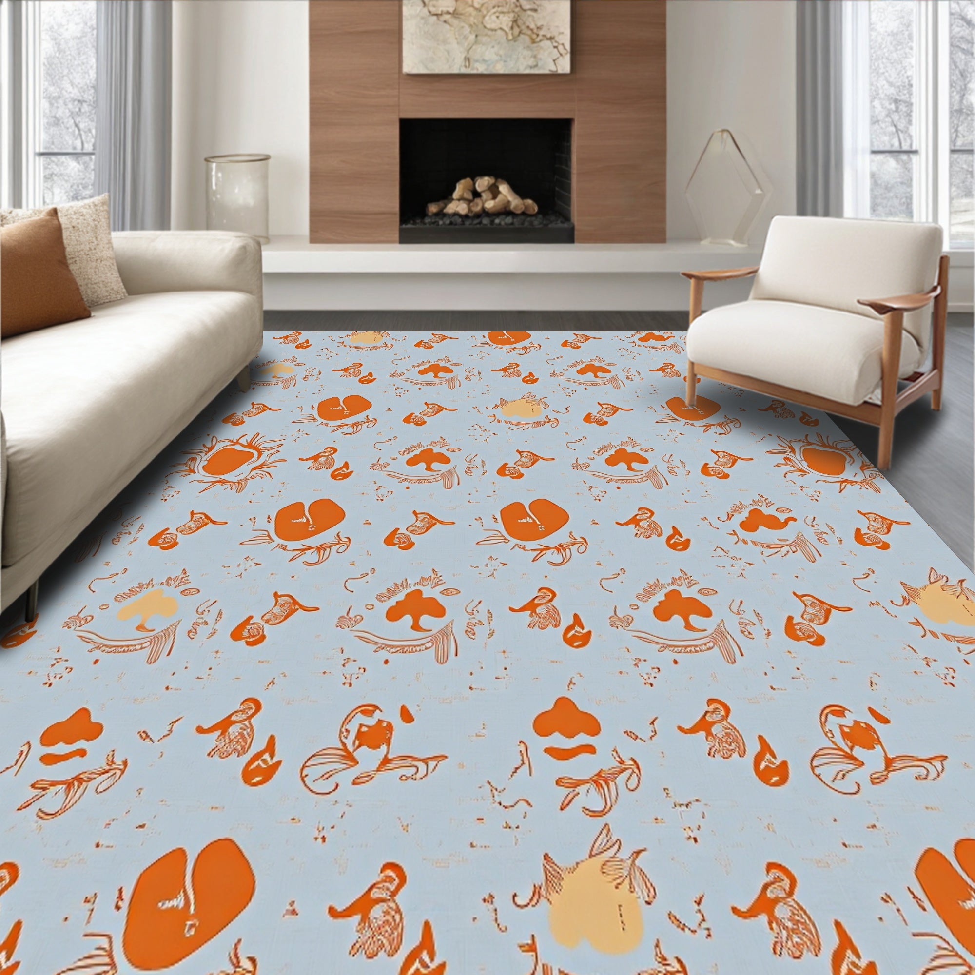 Ultra Soft Area Rug, Non Slip, Stain Resistant, Washable Area Rugs for Living Room, Bedroom, Modern Boho Scrollwork with Scattered Ornamental Blotches(Blue) Overview: