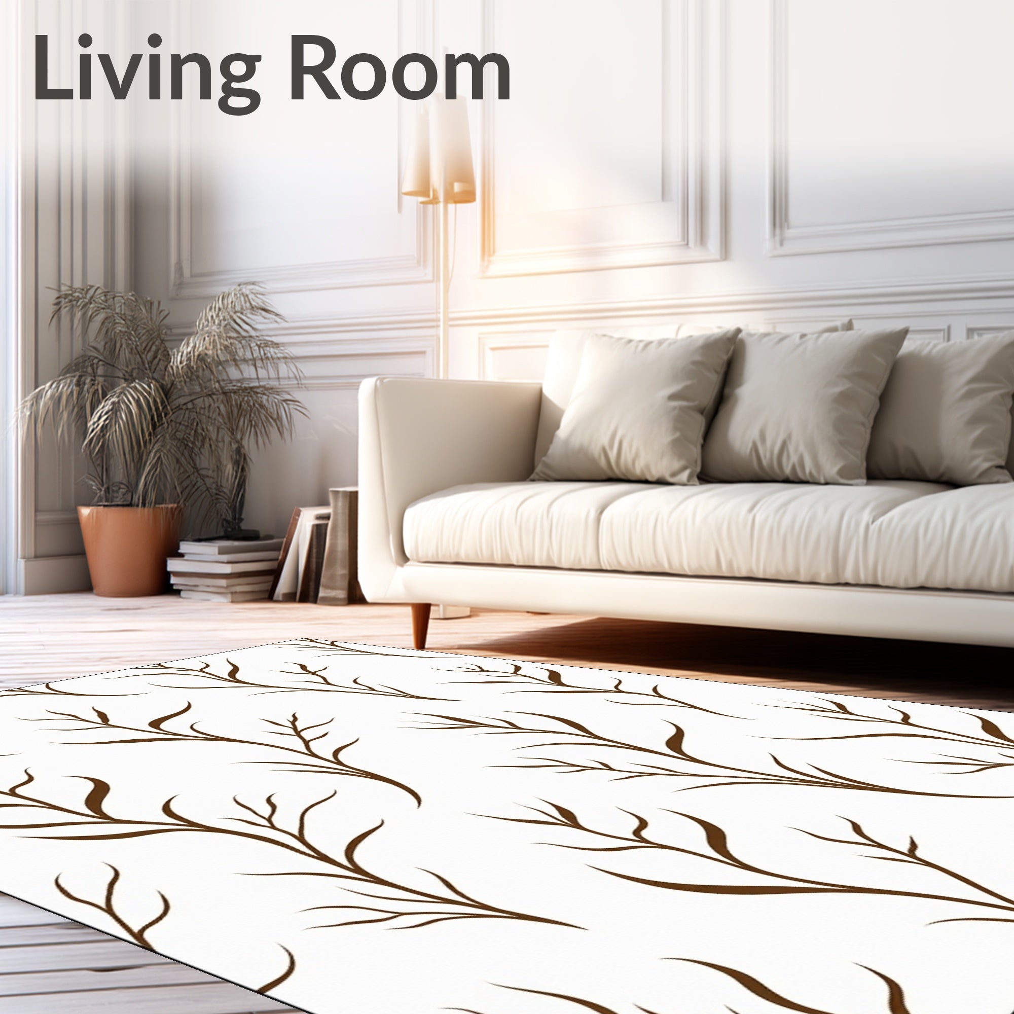 Flatwoven High Traffic Area Rug, Modern Botanical Interlocking Vinework, Non Slip, Stain Resistant, Washable Area Rugs for Living Room, Bedroom (Brown) Overview: