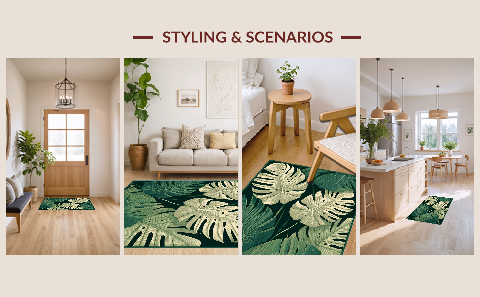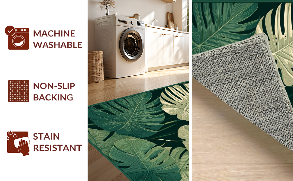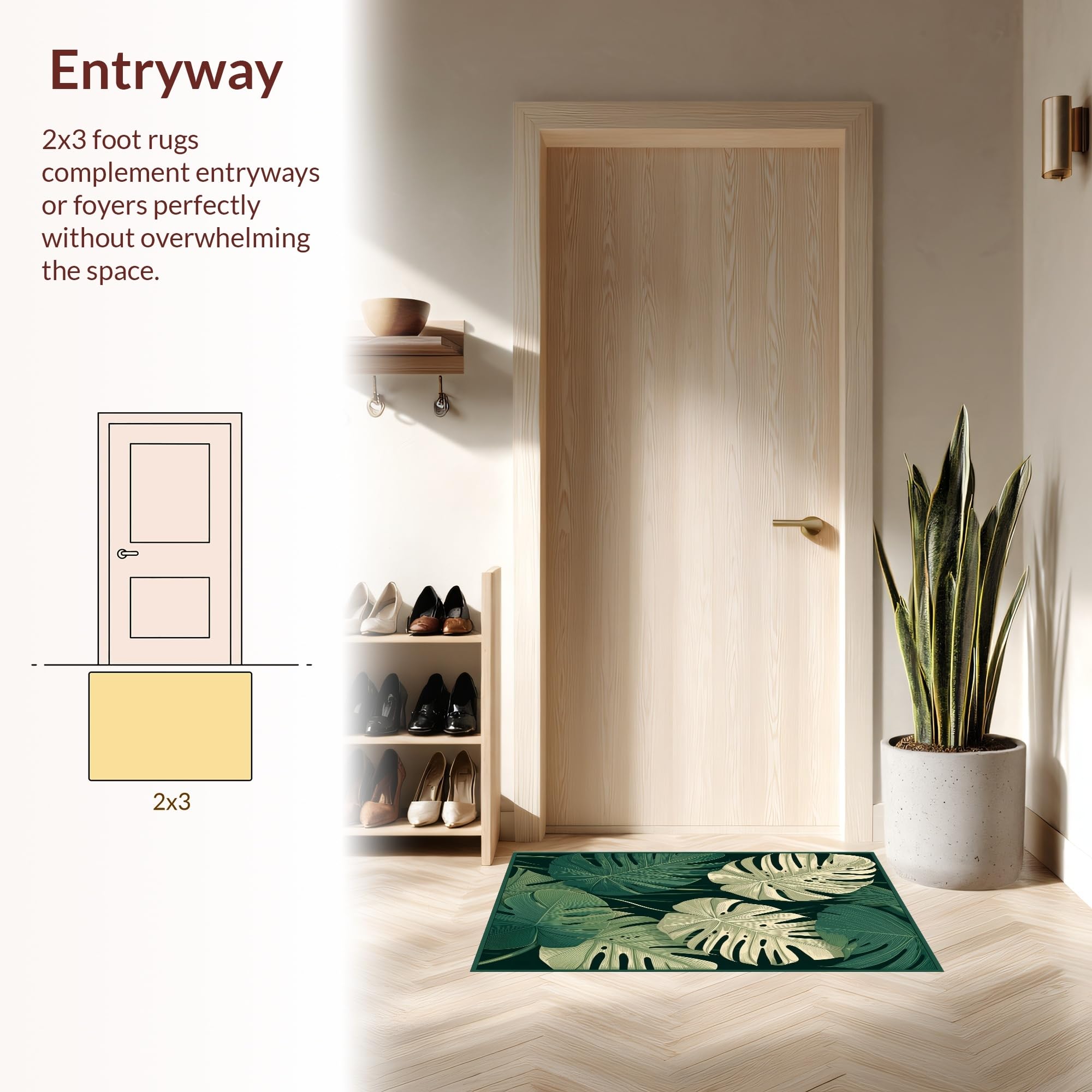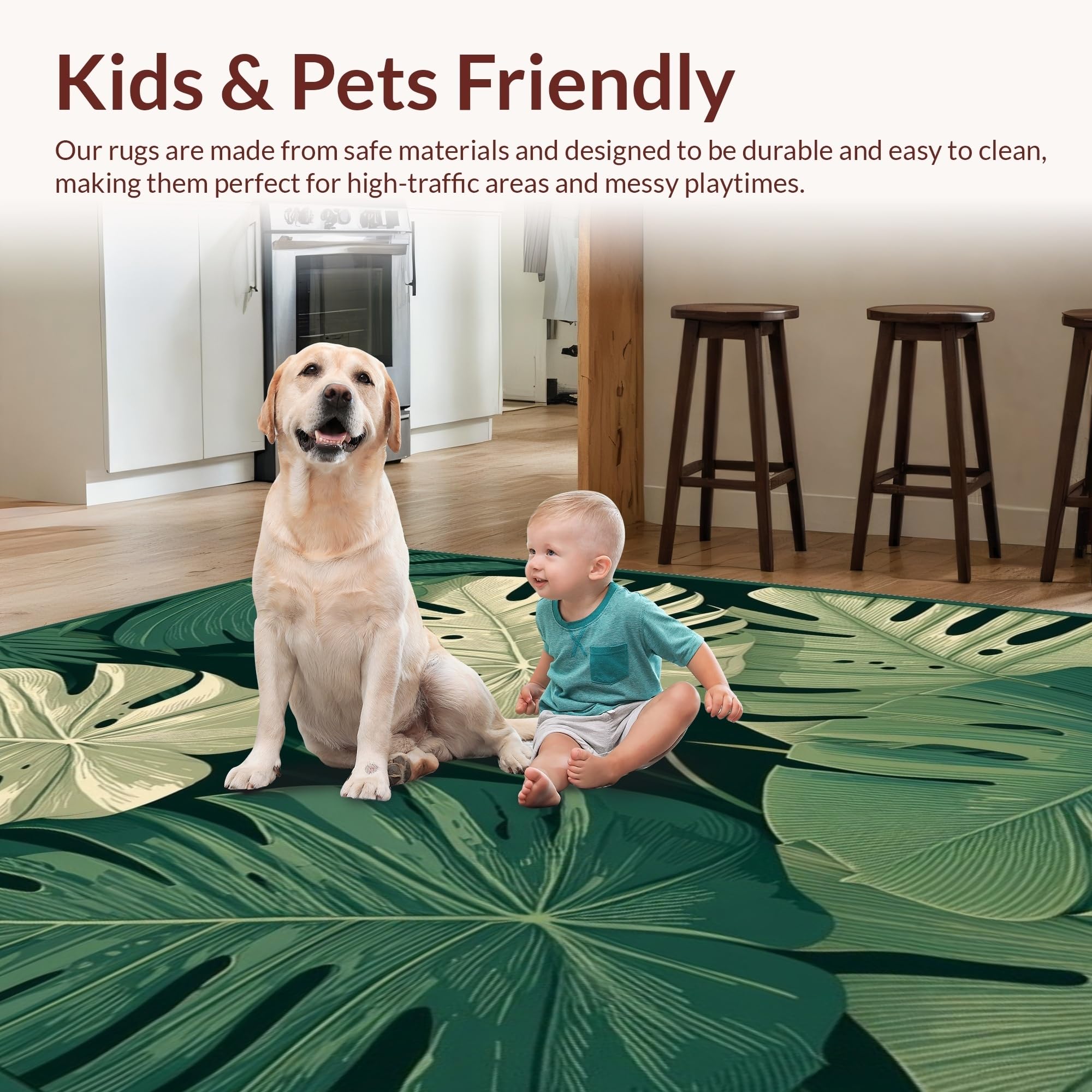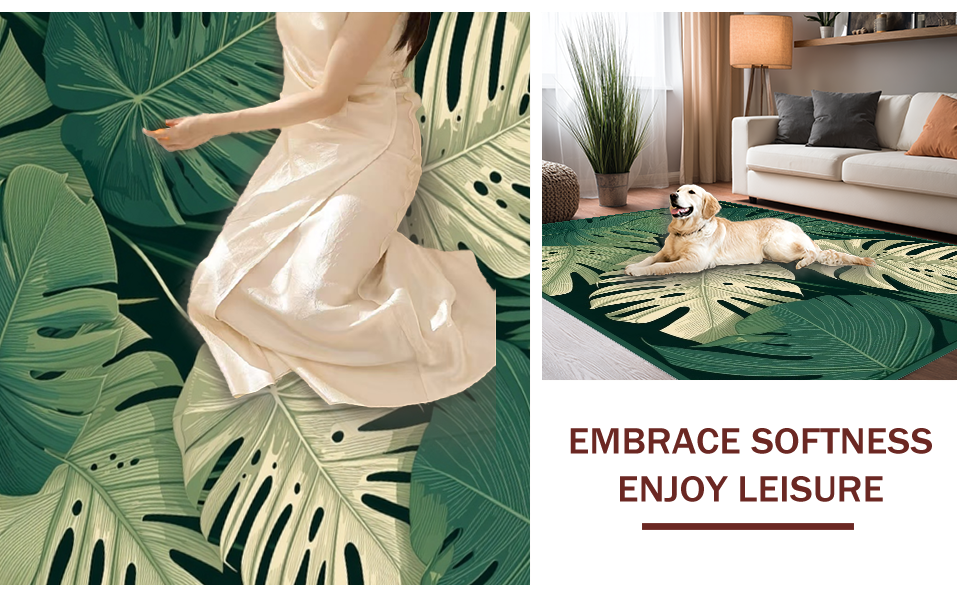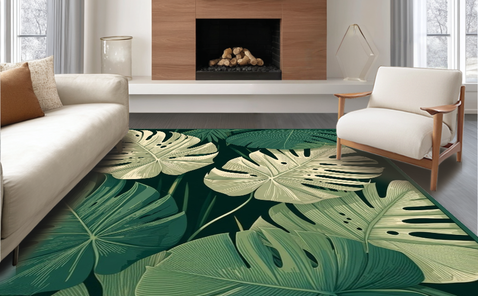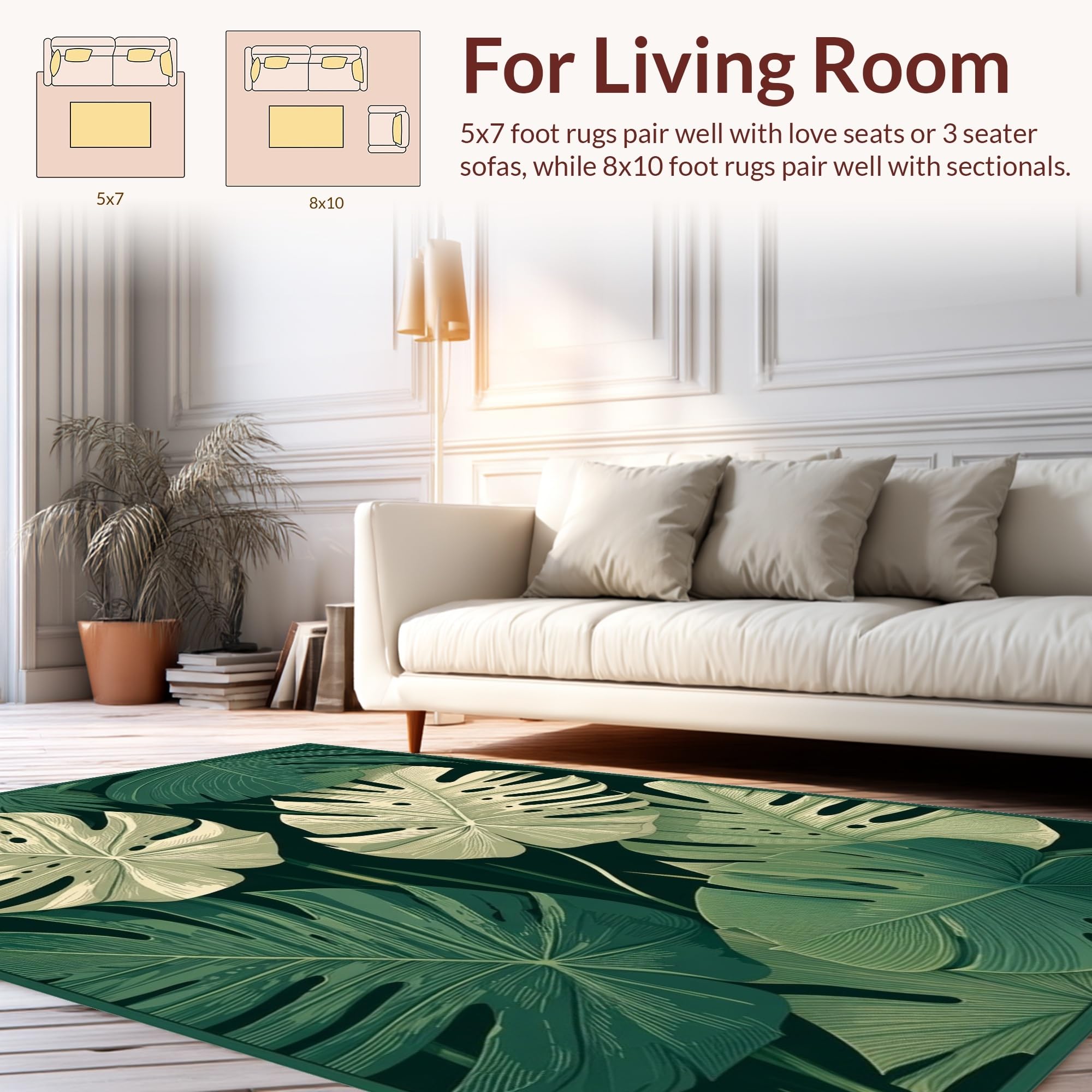 Ultra Soft Area Rug, Non Slip, Stain Resistant, Washable Area Rugs for Living Room, Bedroom, Modern Botanical Leaf Pattern(Green) Overview:
