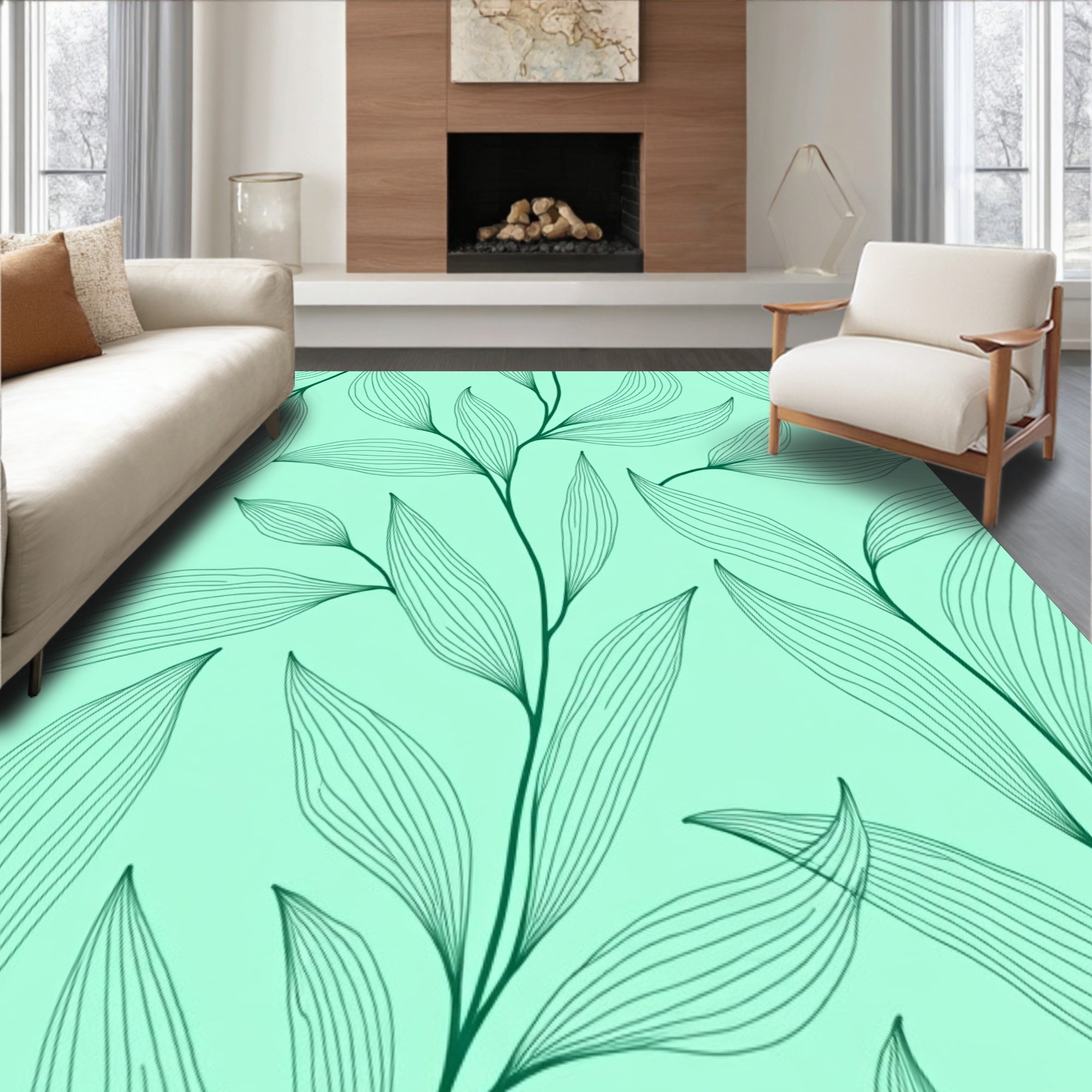Ultra Soft Area Rug, Non Slip, Stain Resistant, Washable Area Rugs for Living Room, Bedroom, Modern Botanical Leaf Vein Inspired Subtle Textured Floor Covering(Green) Overview:
