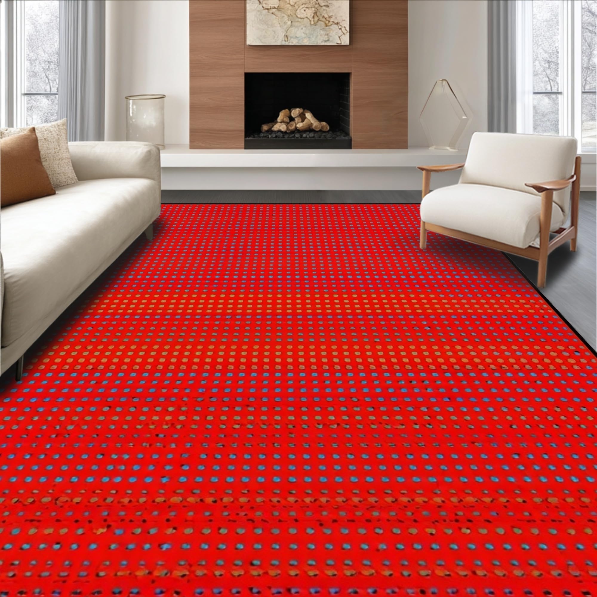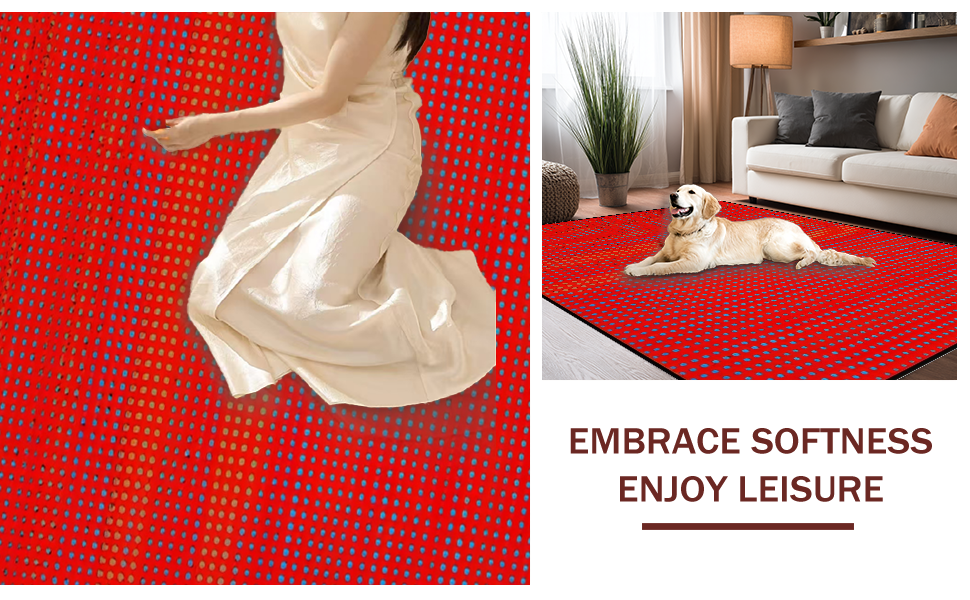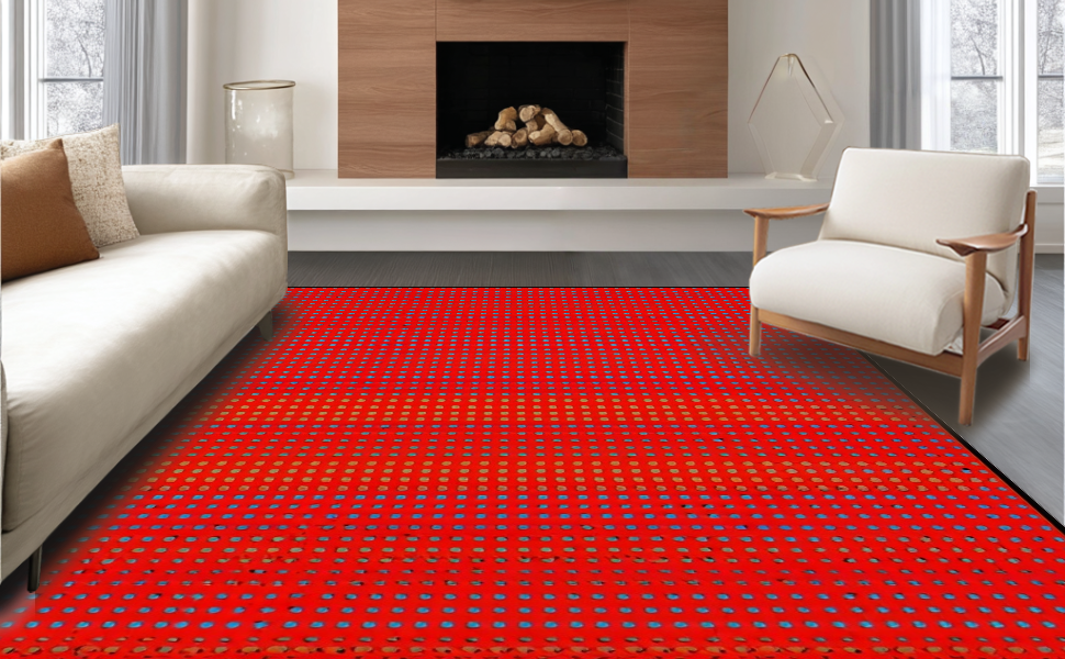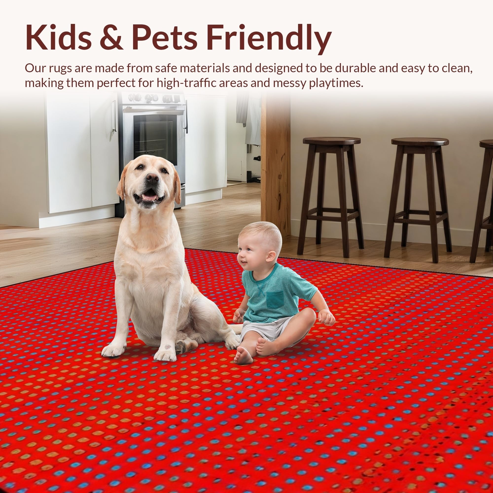Ultra Soft Area Rug, Non Slip, Stain Resistant, Washable Area Rugs for Living Room, Bedroom, Modern Cheerful Circle Motif(Red) Overview: