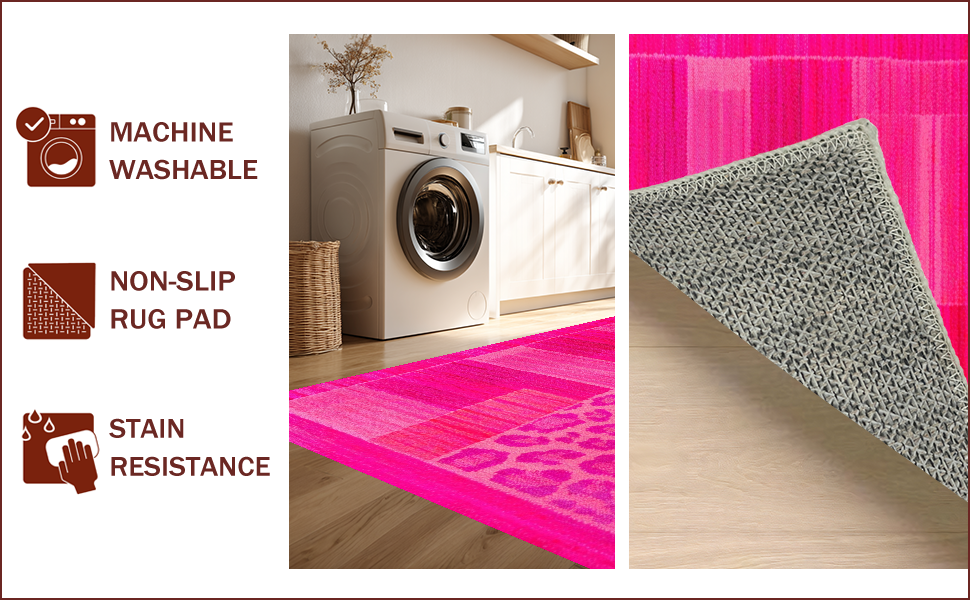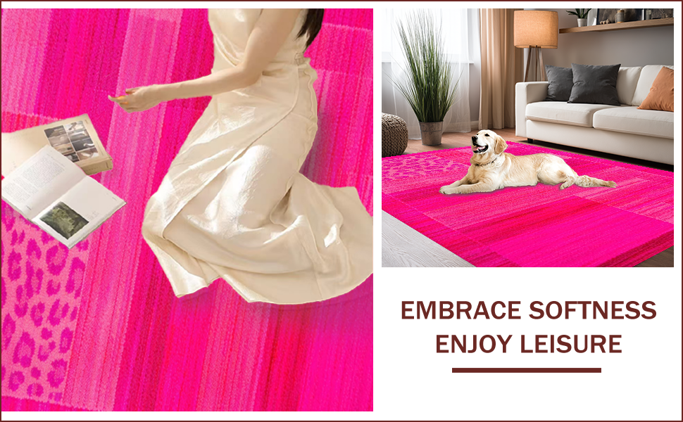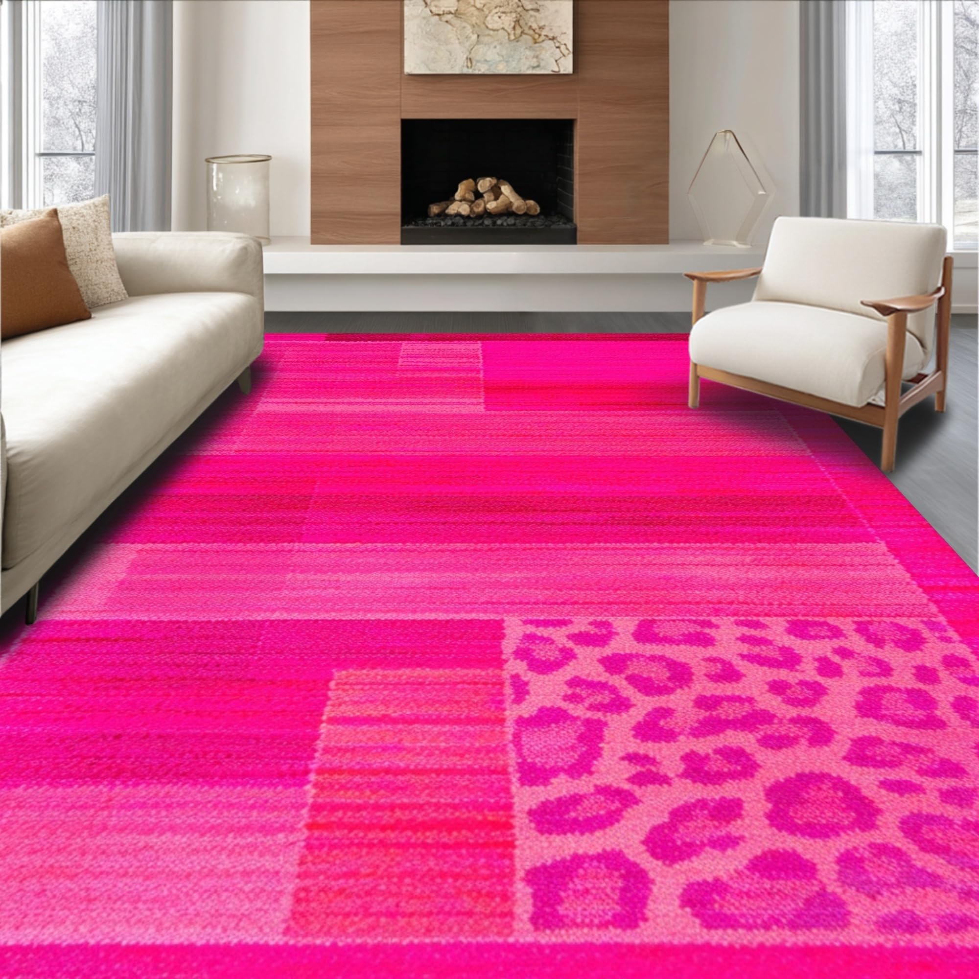 Ultra Soft Area Rug, Non Slip, Stain Resistant, Washable Area Rugs for Living Room, Bedroom, Modern Chic Leopard Aesthetic(Pink) Overview: