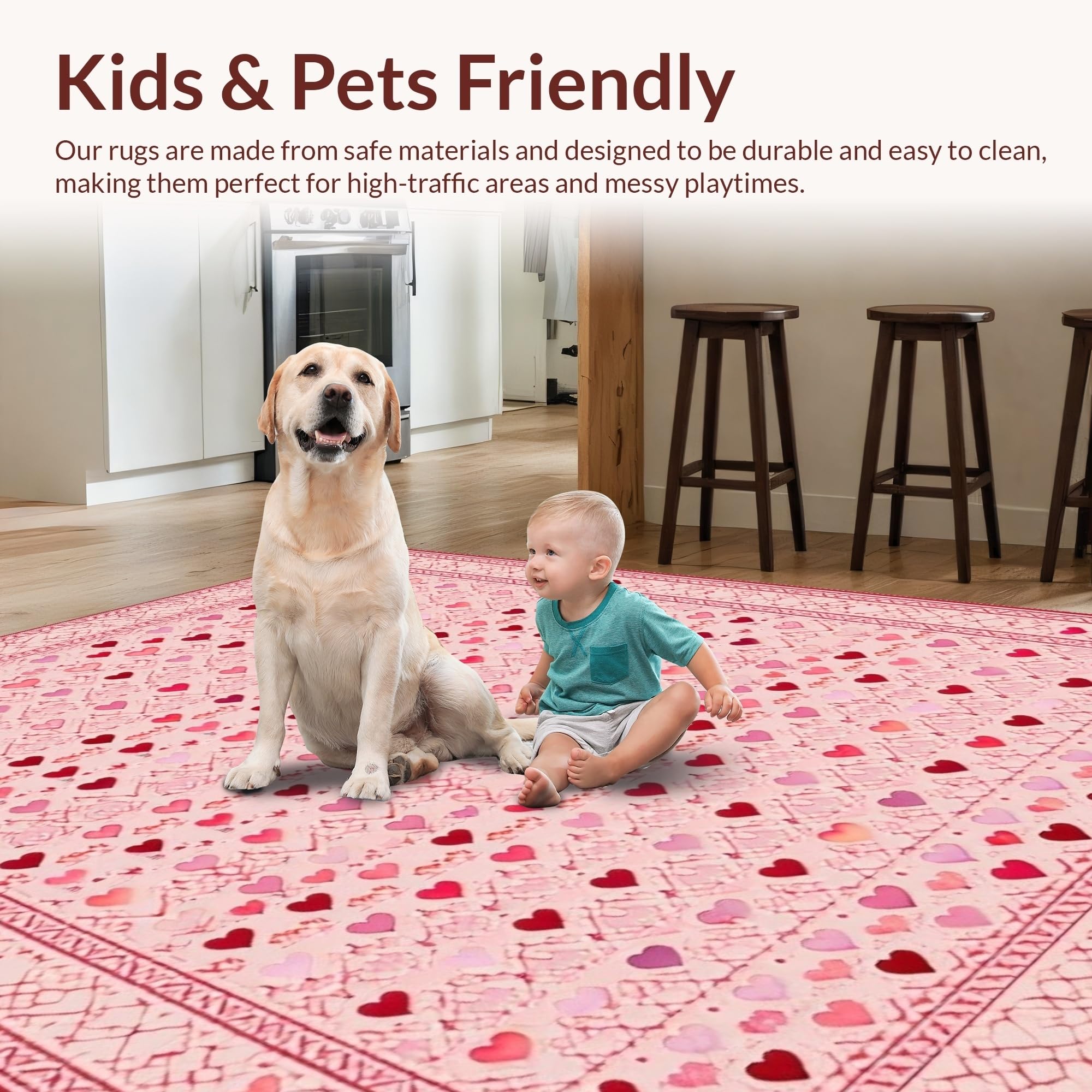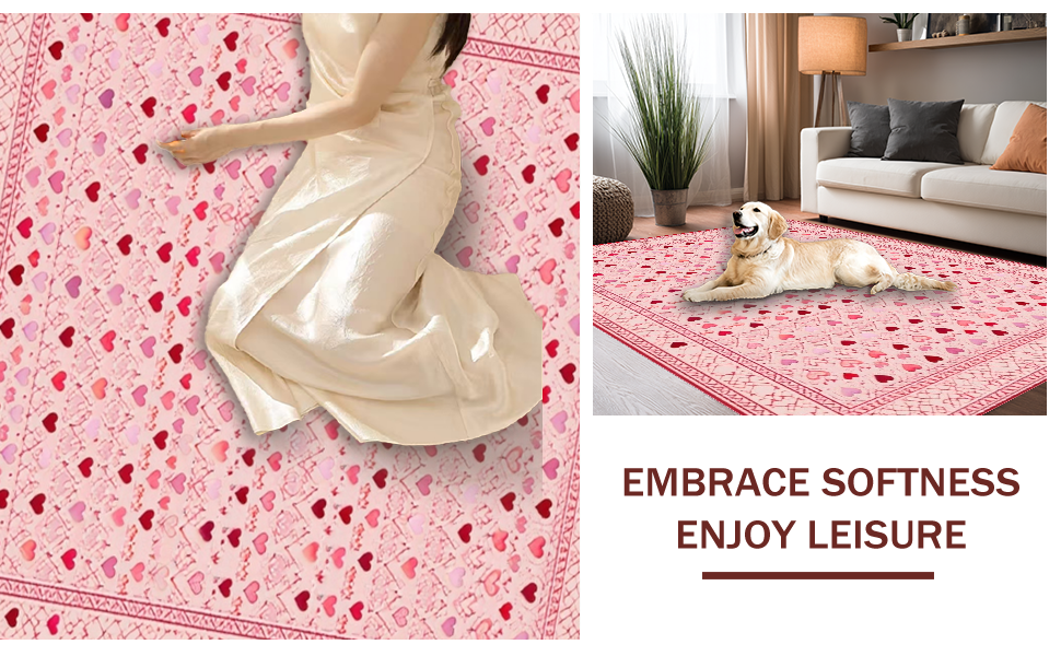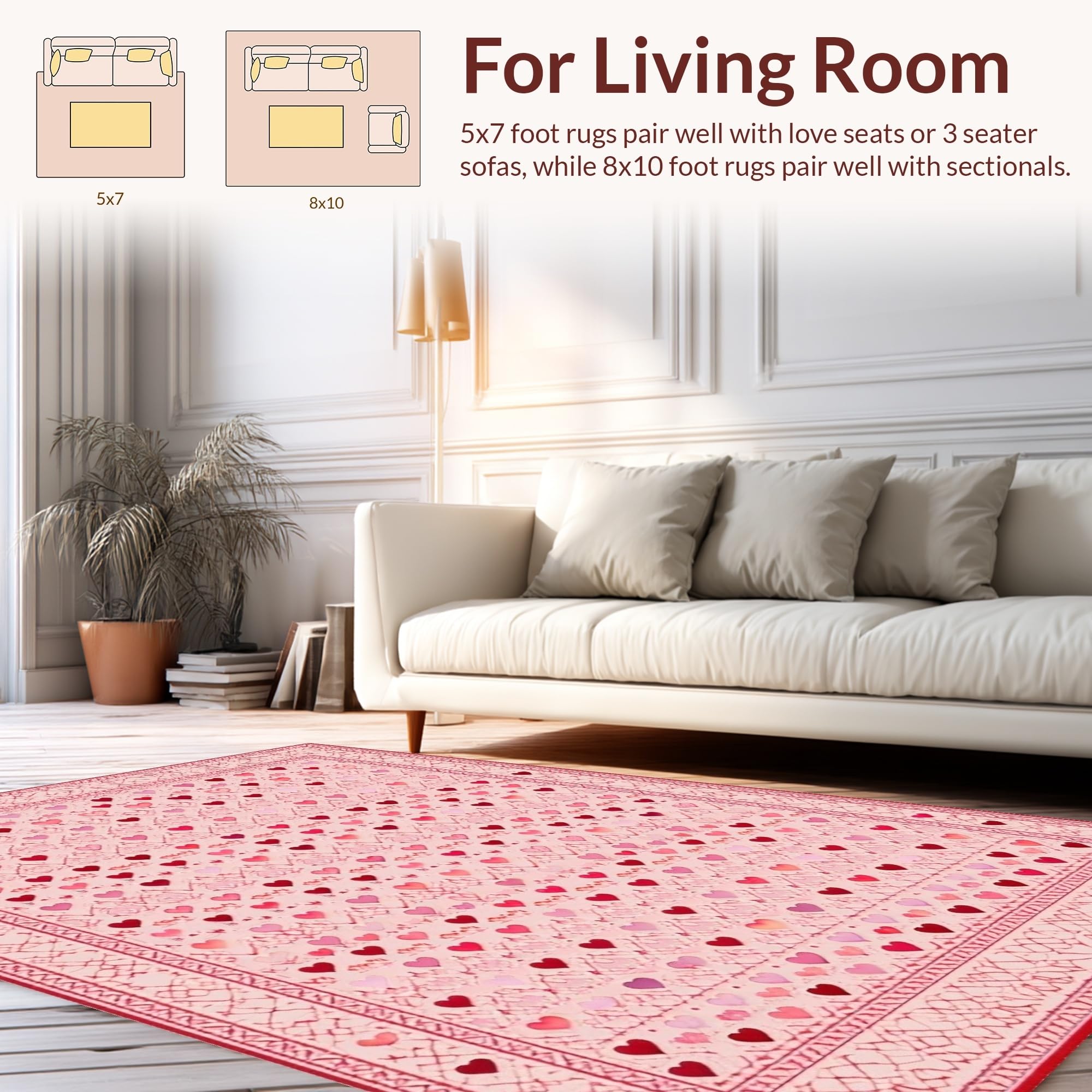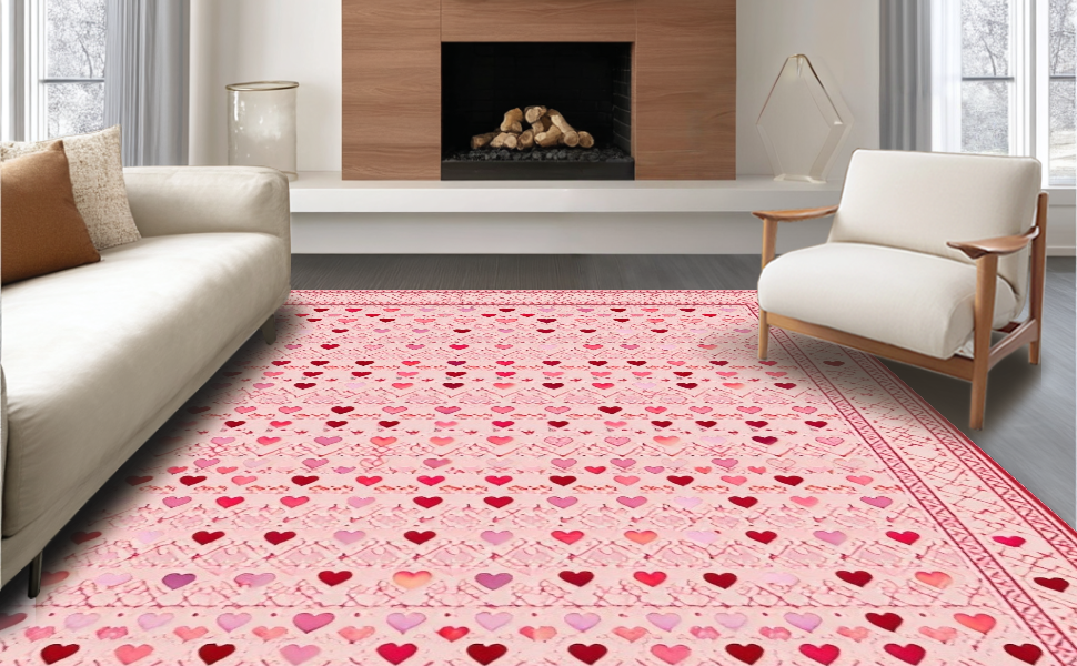 Ultra Soft Area Rug, Non Slip, Stain Resistant, Washable Area Rugs for Living Room, Bedroom, Modern Cozy Heart Aesthetic(Pink) Overview:
