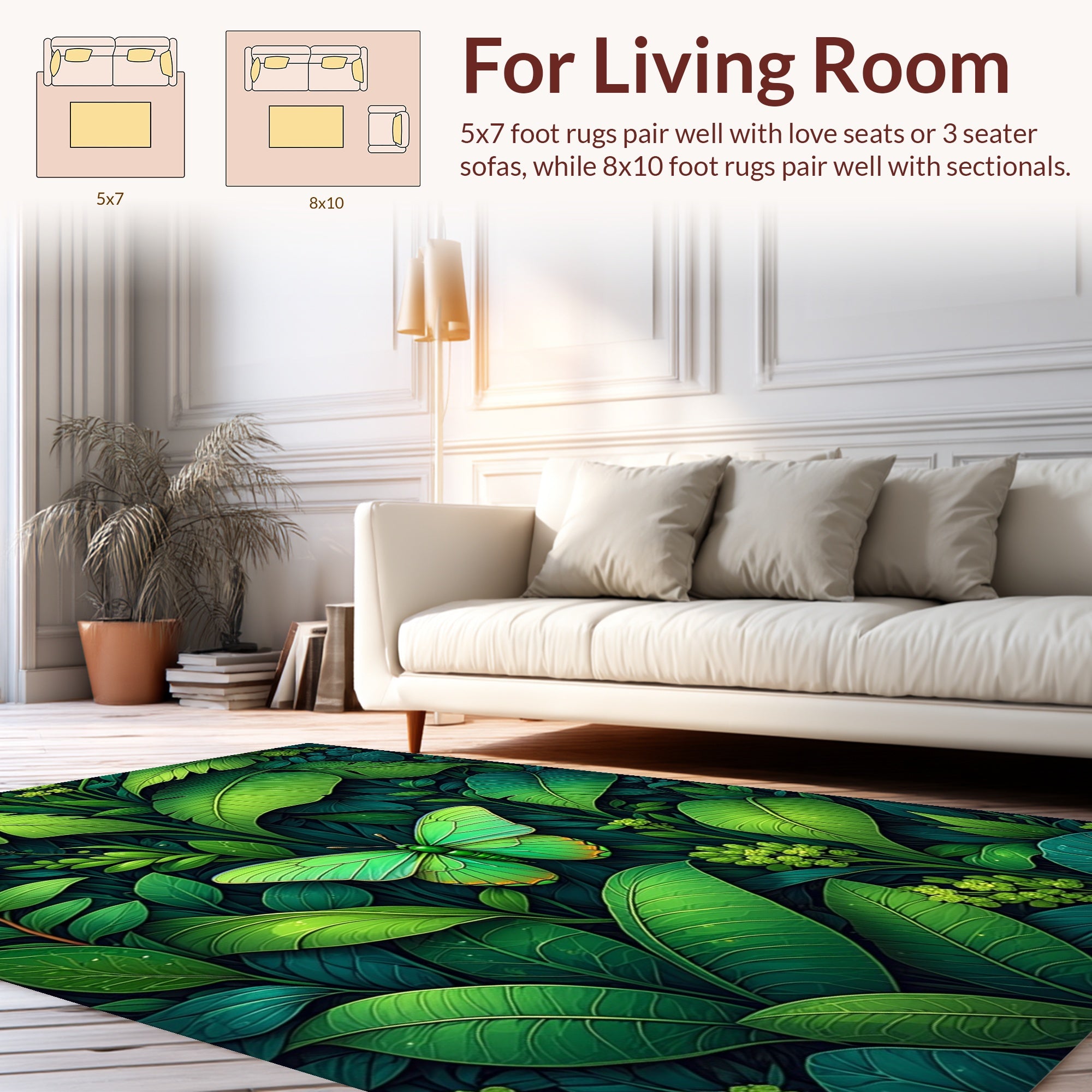 Flatwoven High Traffic Area Rug, Modern Dark Green Insect, Non Slip, Stain Resistant, Washable Area Rugs for Living Room, Bedroom (Green) Overview: