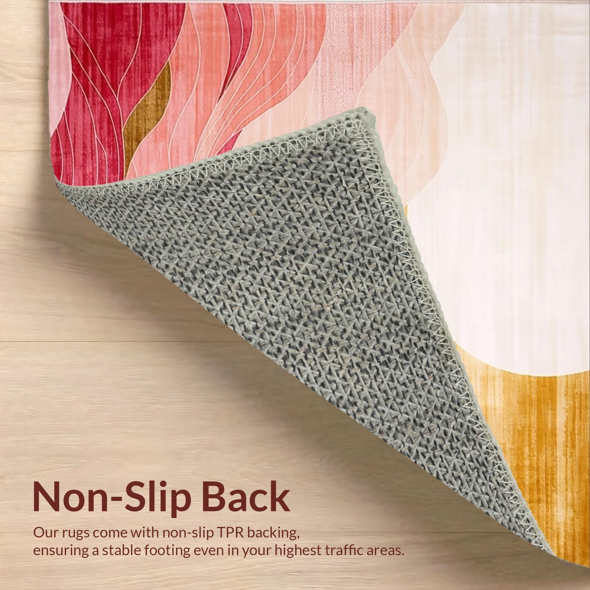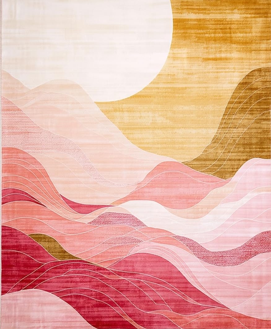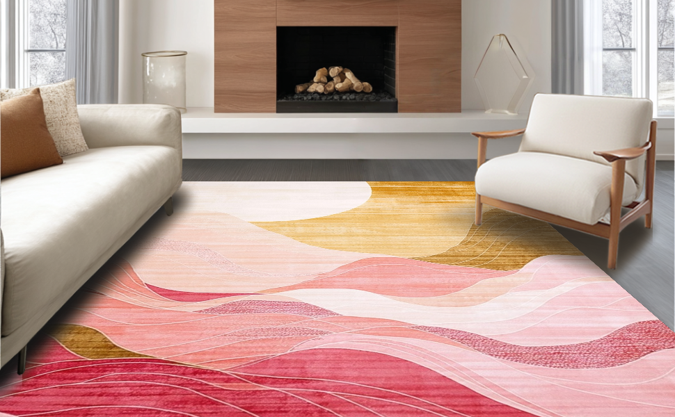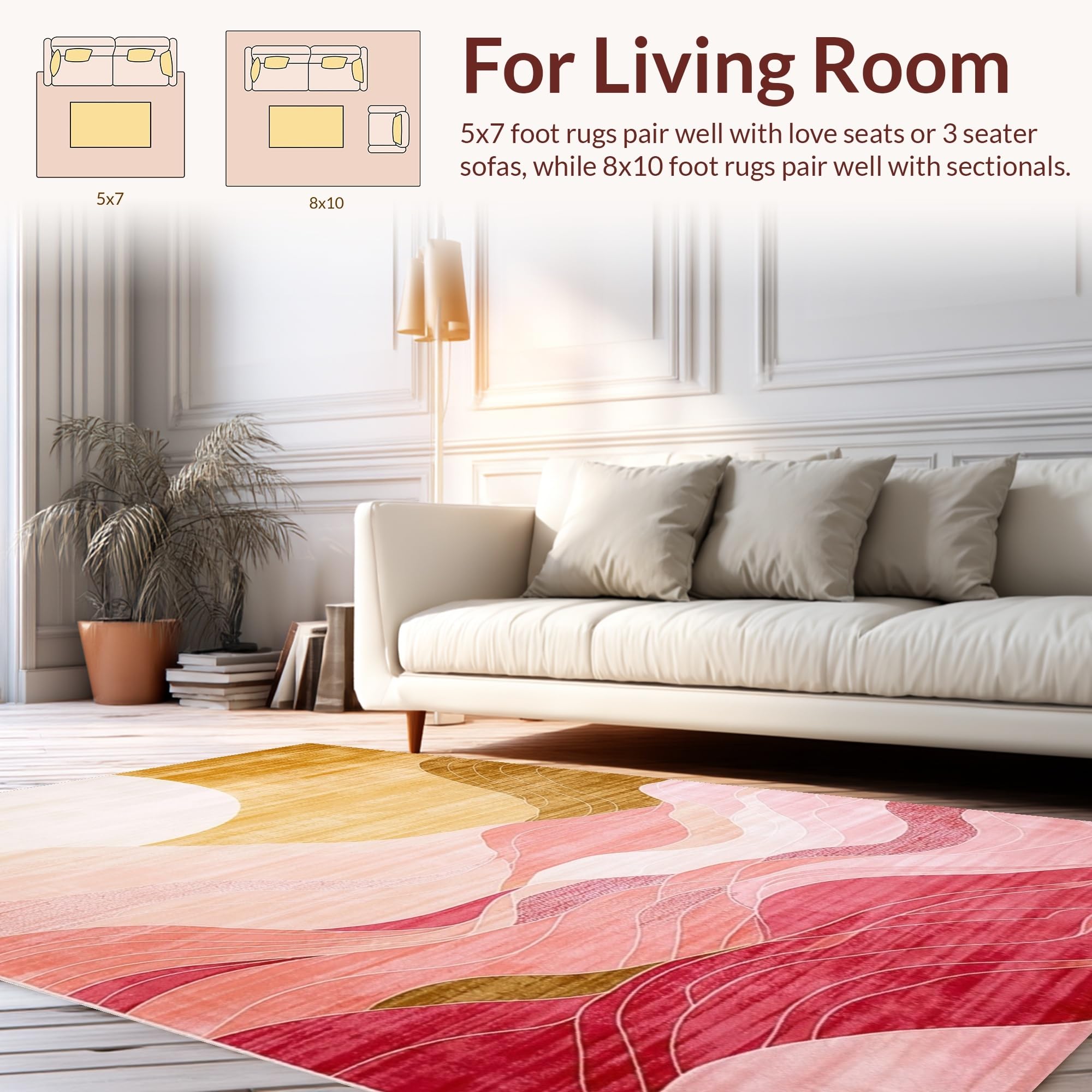 Ultra Soft Area Rug, Non Slip, Stain Resistant, Washable Area Rugs for Living Room, Bedroom, Modern Distressed Sunset Motif(Beige) Overview: