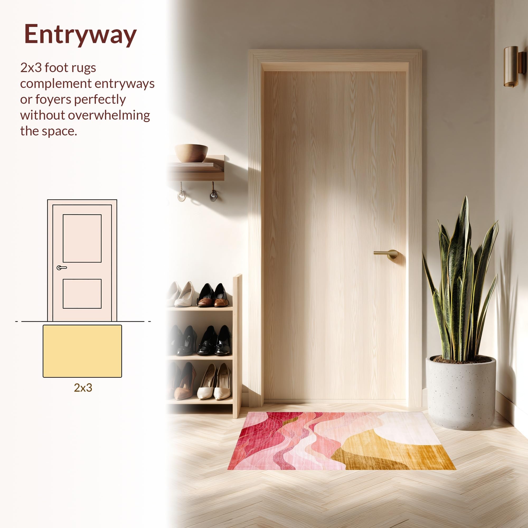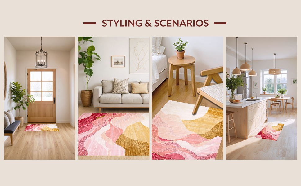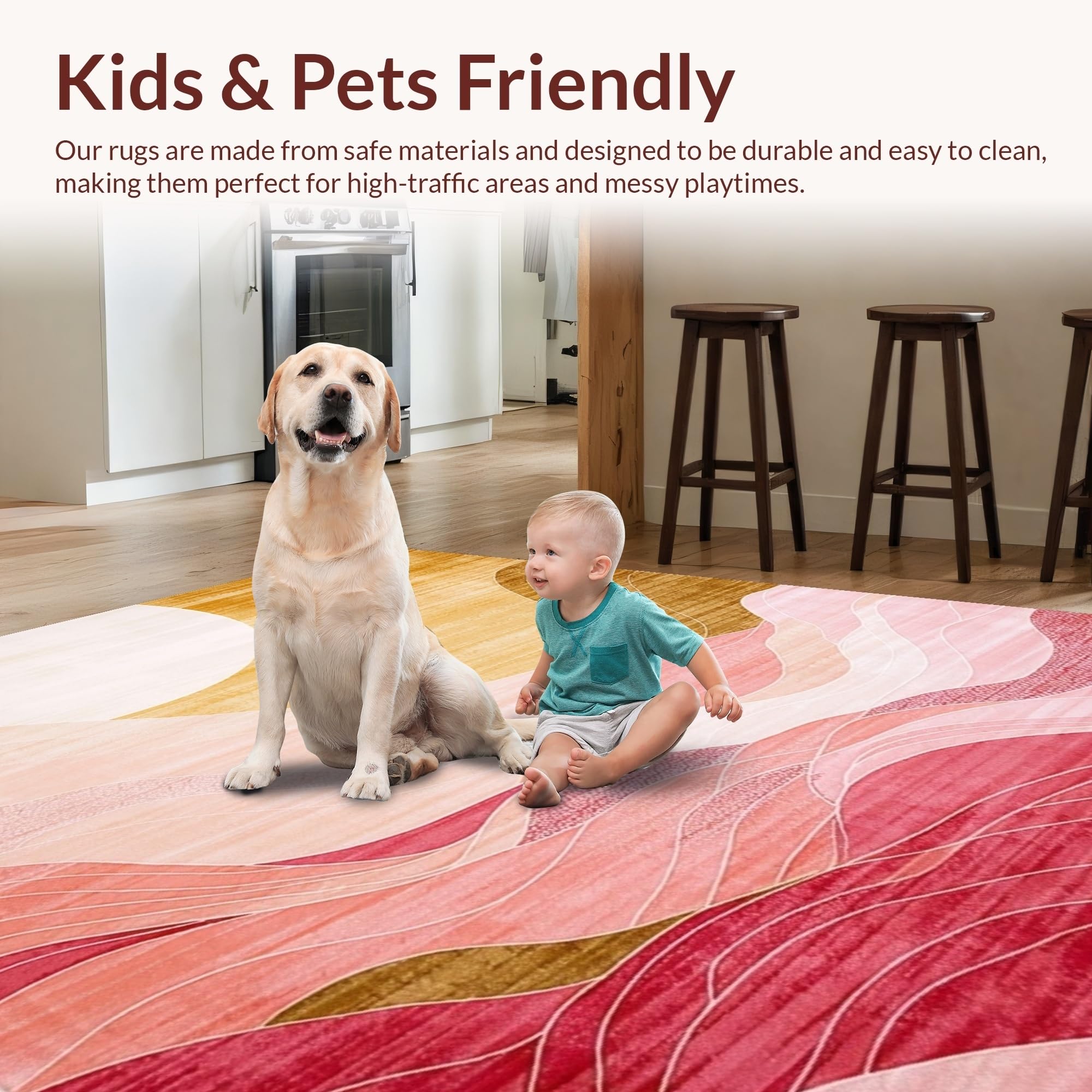 Ultra Soft Area Rug, Non Slip, Stain Resistant, Washable Area Rugs for Living Room, Bedroom, Modern Distressed Sunset Motif(Beige) Overview: