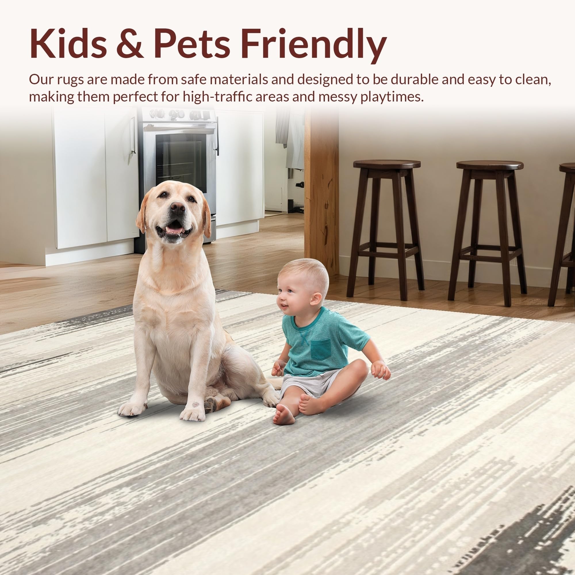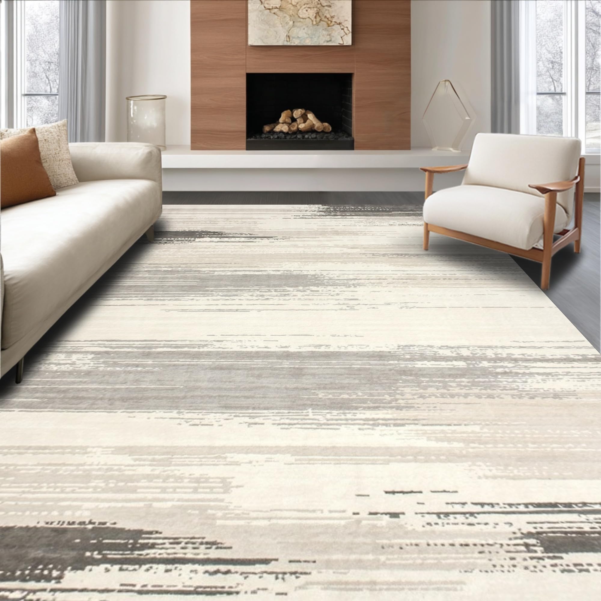 Ultra Soft Area Rug, Non Slip, Stain Resistant, Washable Area Rugs for Living Room, Bedroom, Modern Earth Tone Symmetrical Pattern(Gray) Overview: