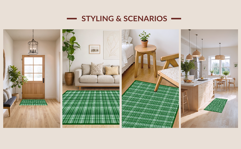 Ultra Soft Area Rug, Non Slip, Stain Resistant, Washable Area Rugs for Living Room, Bedroom, Modern Earthy Geometric Delight(Green) Overview:
