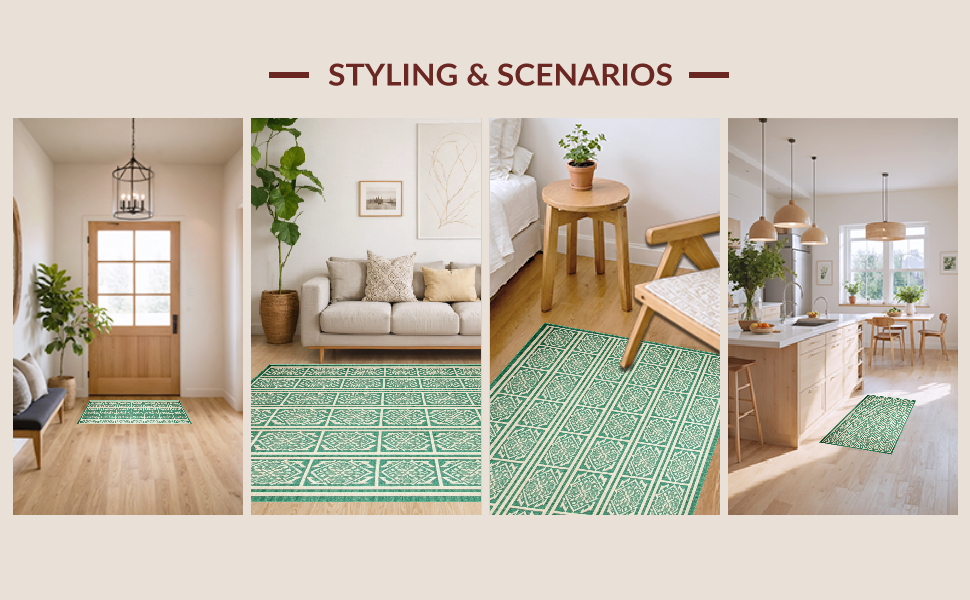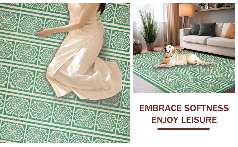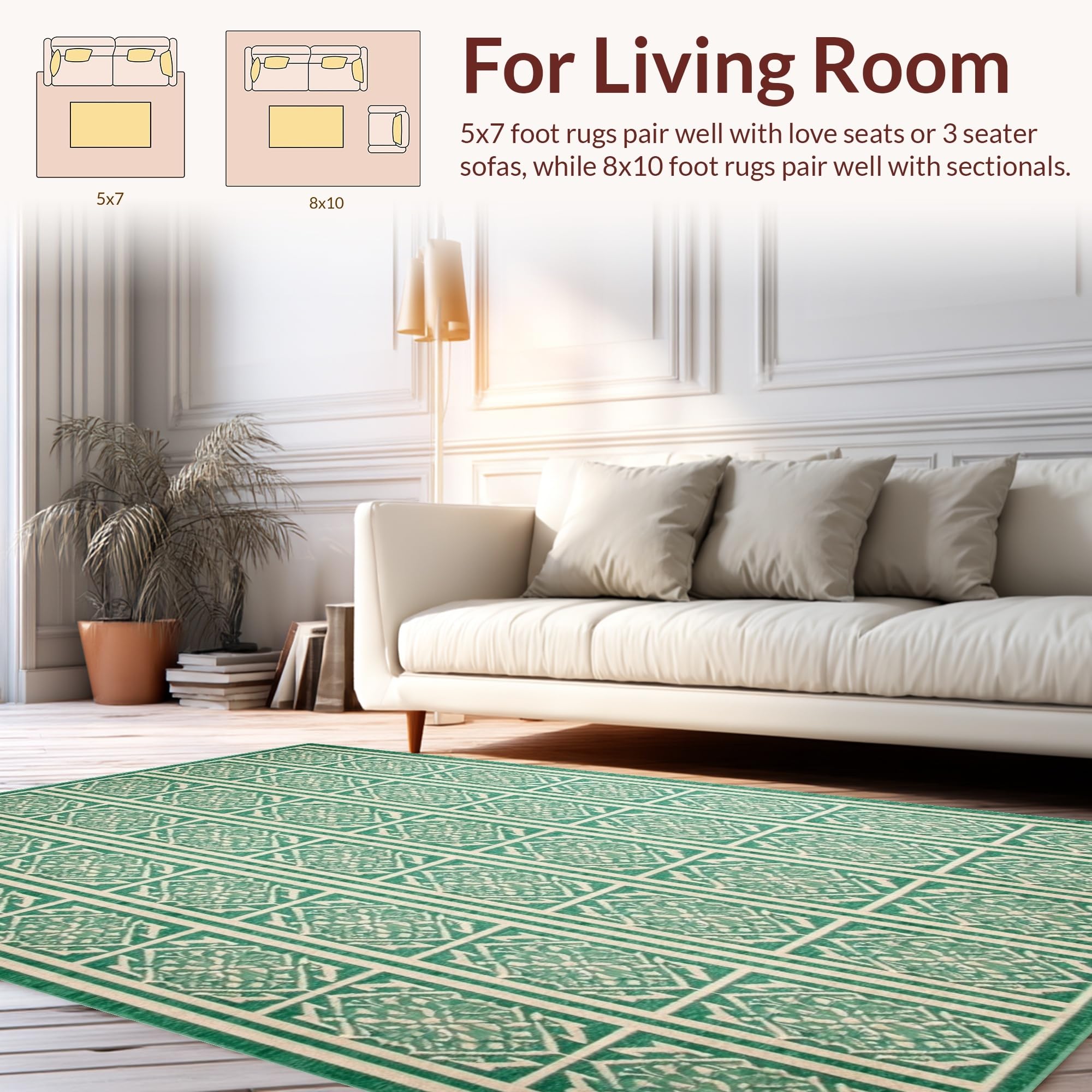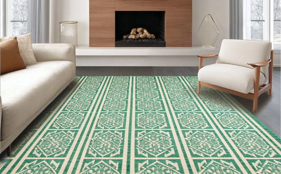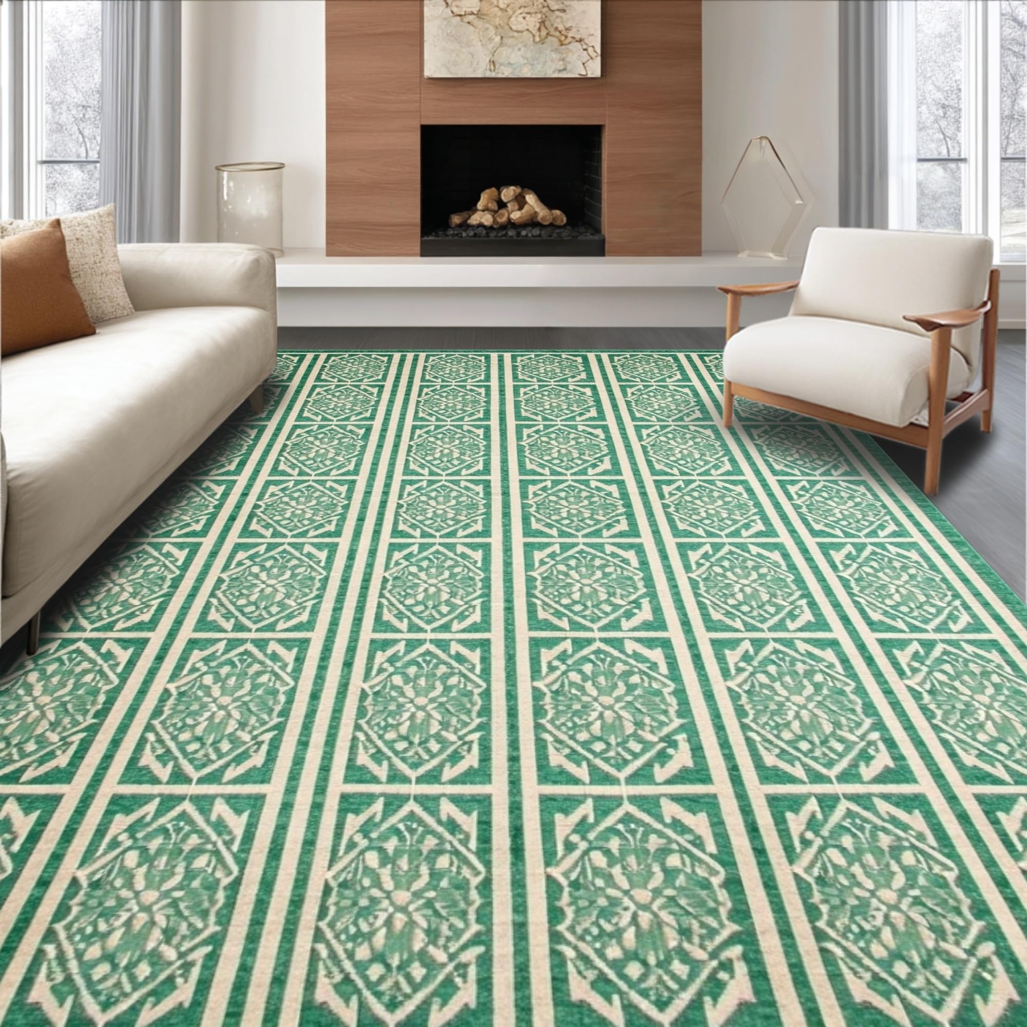 Ultra Soft Area Rug, Non Slip, Stain Resistant, Washable Area Rugs for Living Room, Bedroom, Modern Earthy Geometric Flair(Green) Overview: