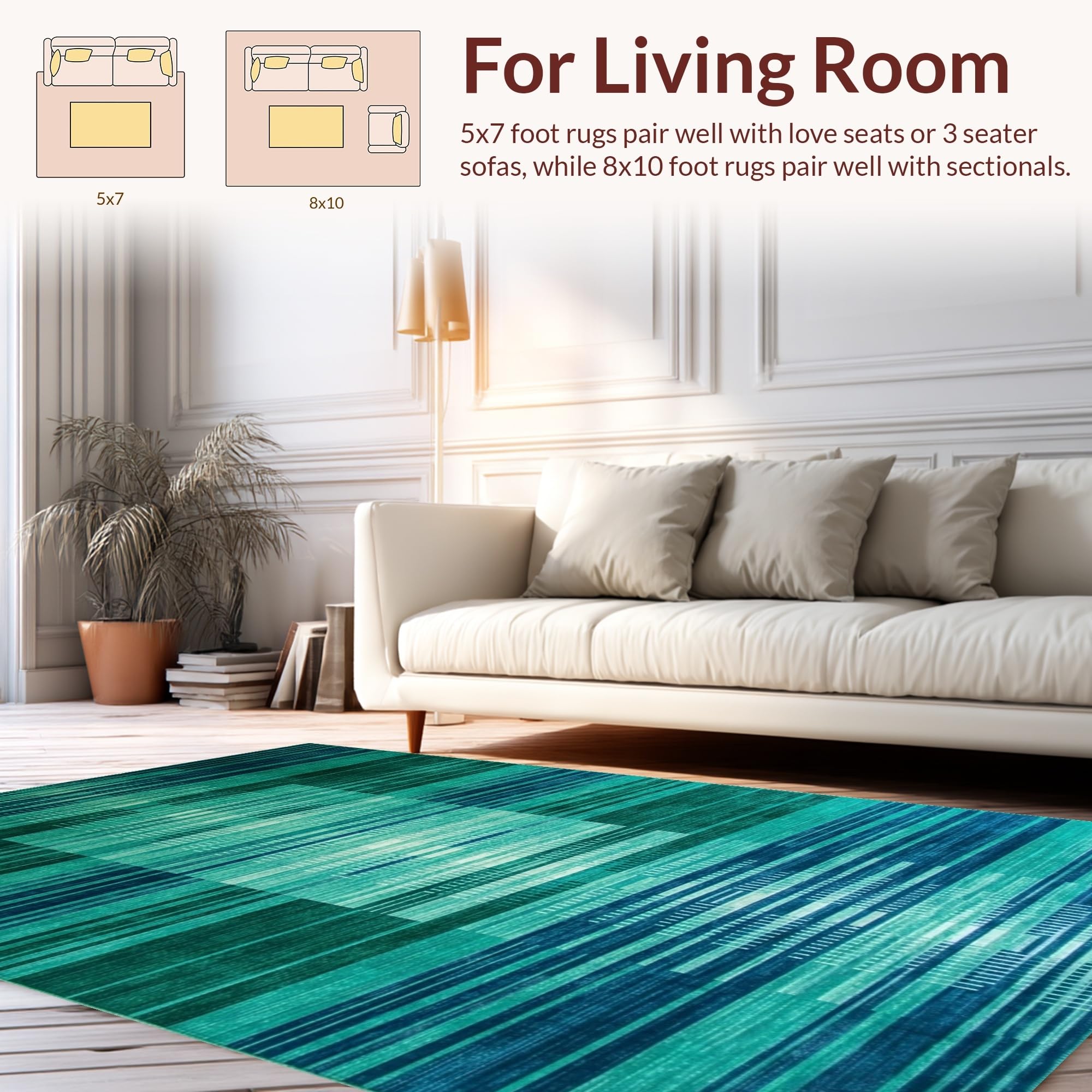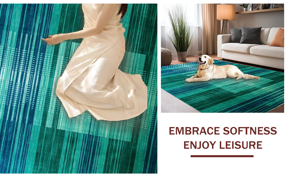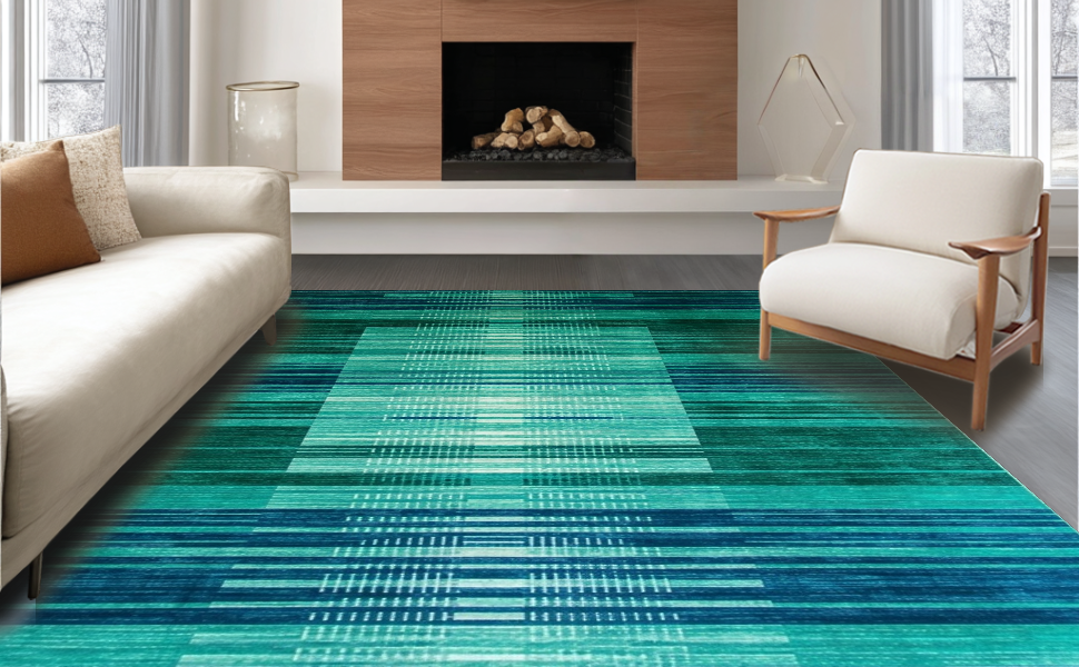 Ultra Soft Area Rug, Non Slip, Stain Resistant, Washable Area Rugs for Living Room, Bedroom, Modern Earthy Geometric Fusion(Blue) Overview: