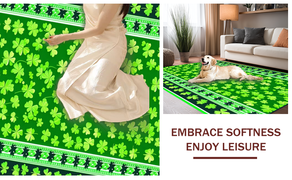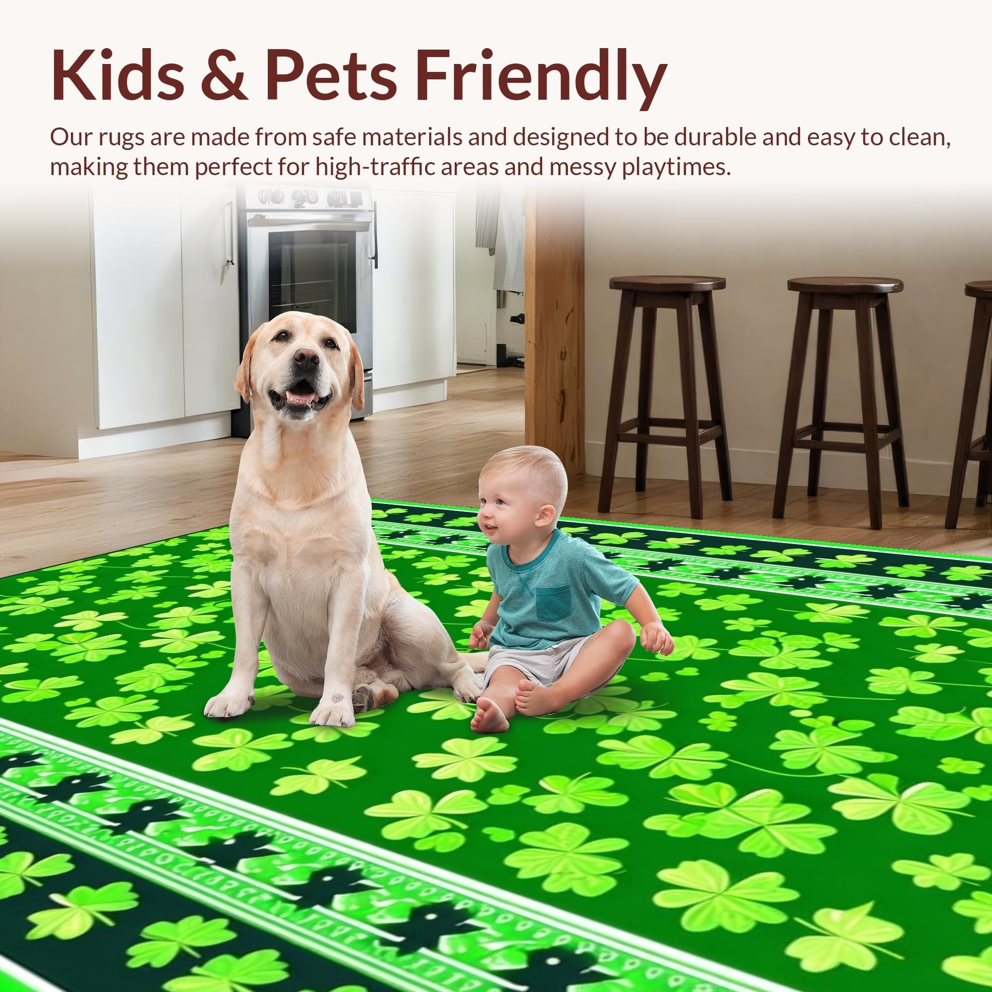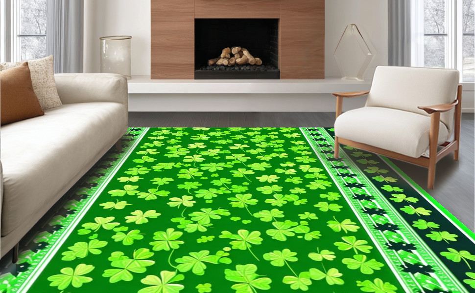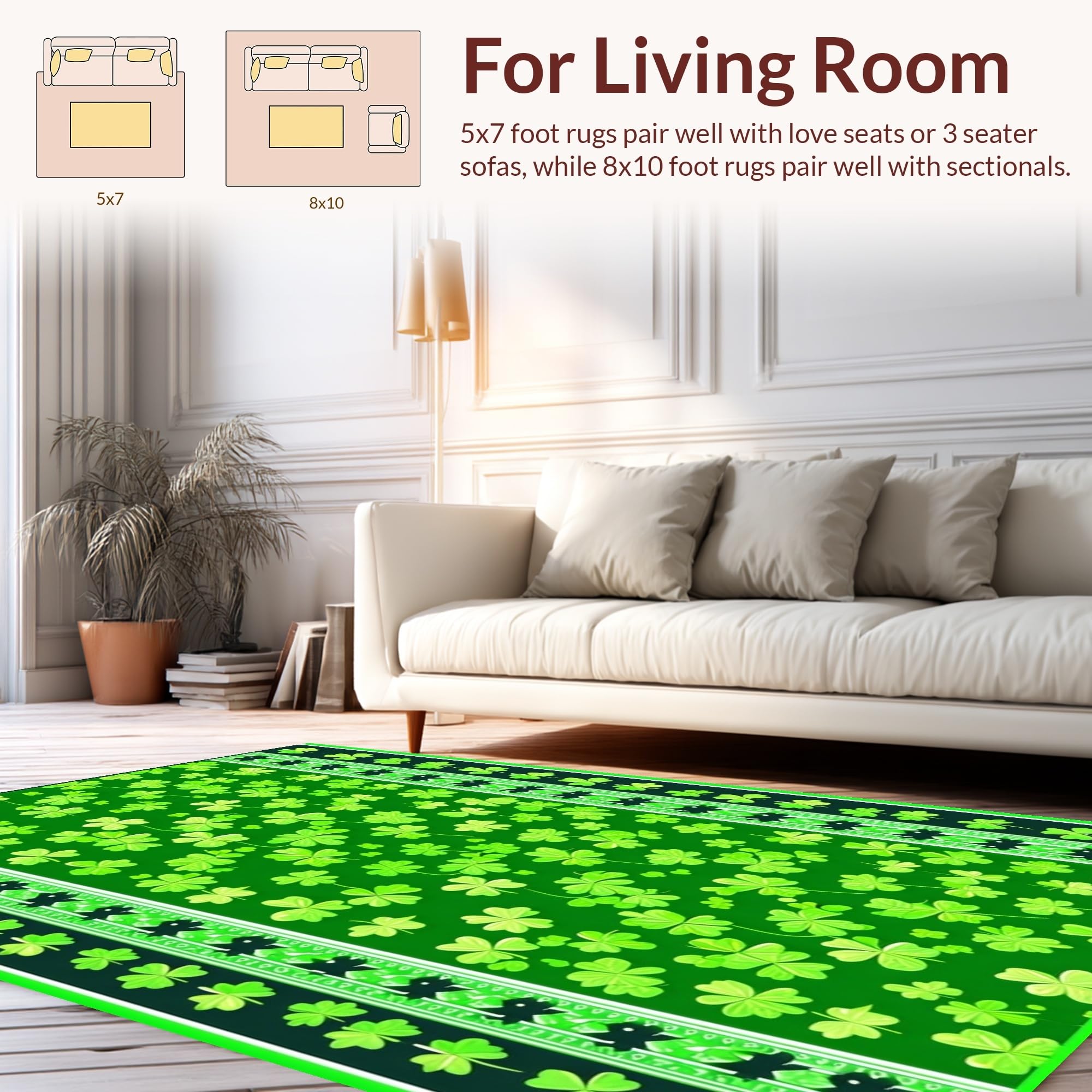 Ultra Soft Area Rug, Non Slip, Stain Resistant, Washable Area Rugs for Living Room, Bedroom, Modern Earthy Shamrock Aesthetic Mat(Green) Overview: