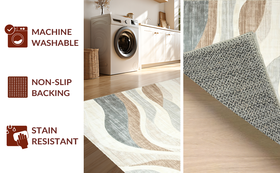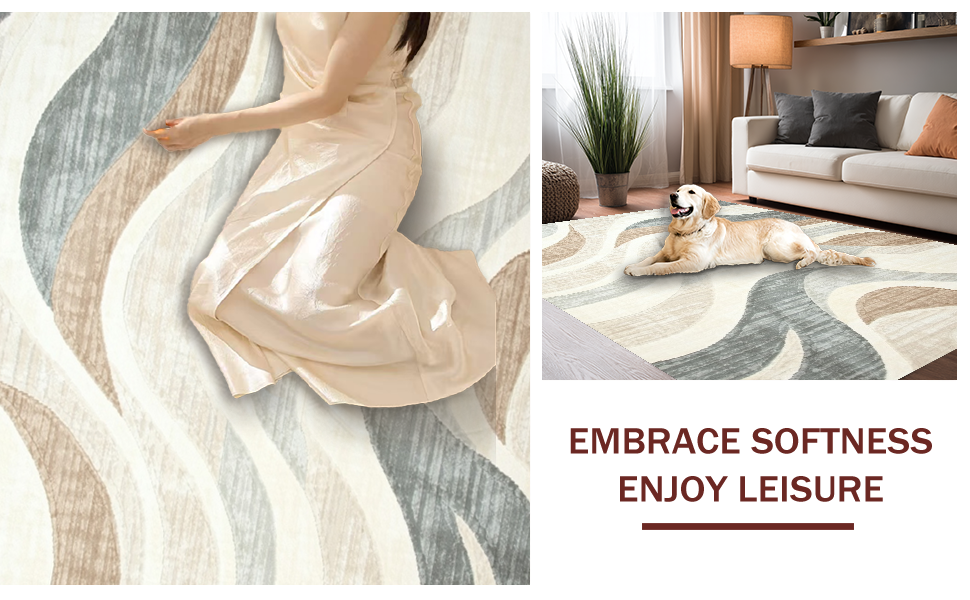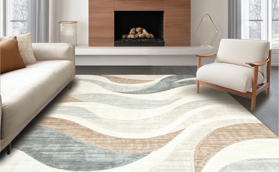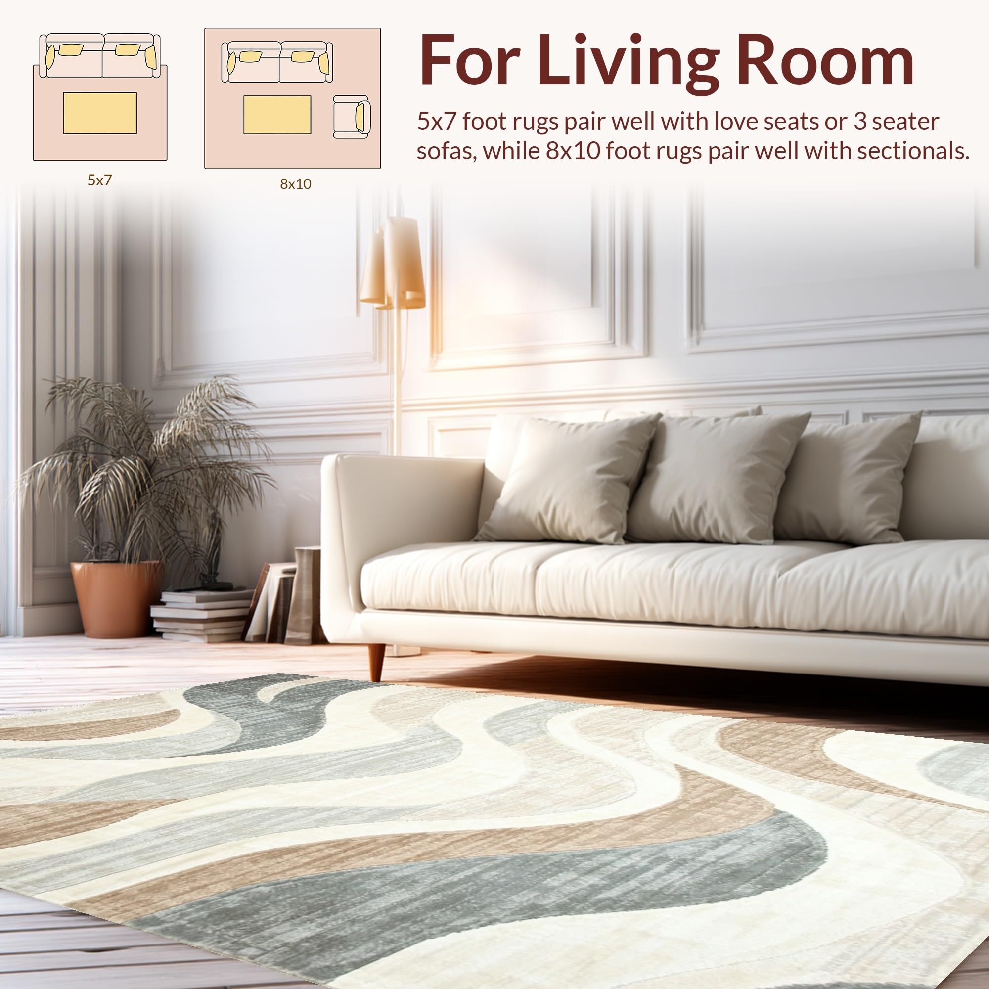 Ultra Soft Area Rug, Non Slip, Stain Resistant, Washable Area Rugs for Living Room, Bedroom, Modern Earthy Swirl Aesthetic(Beige) Overview: