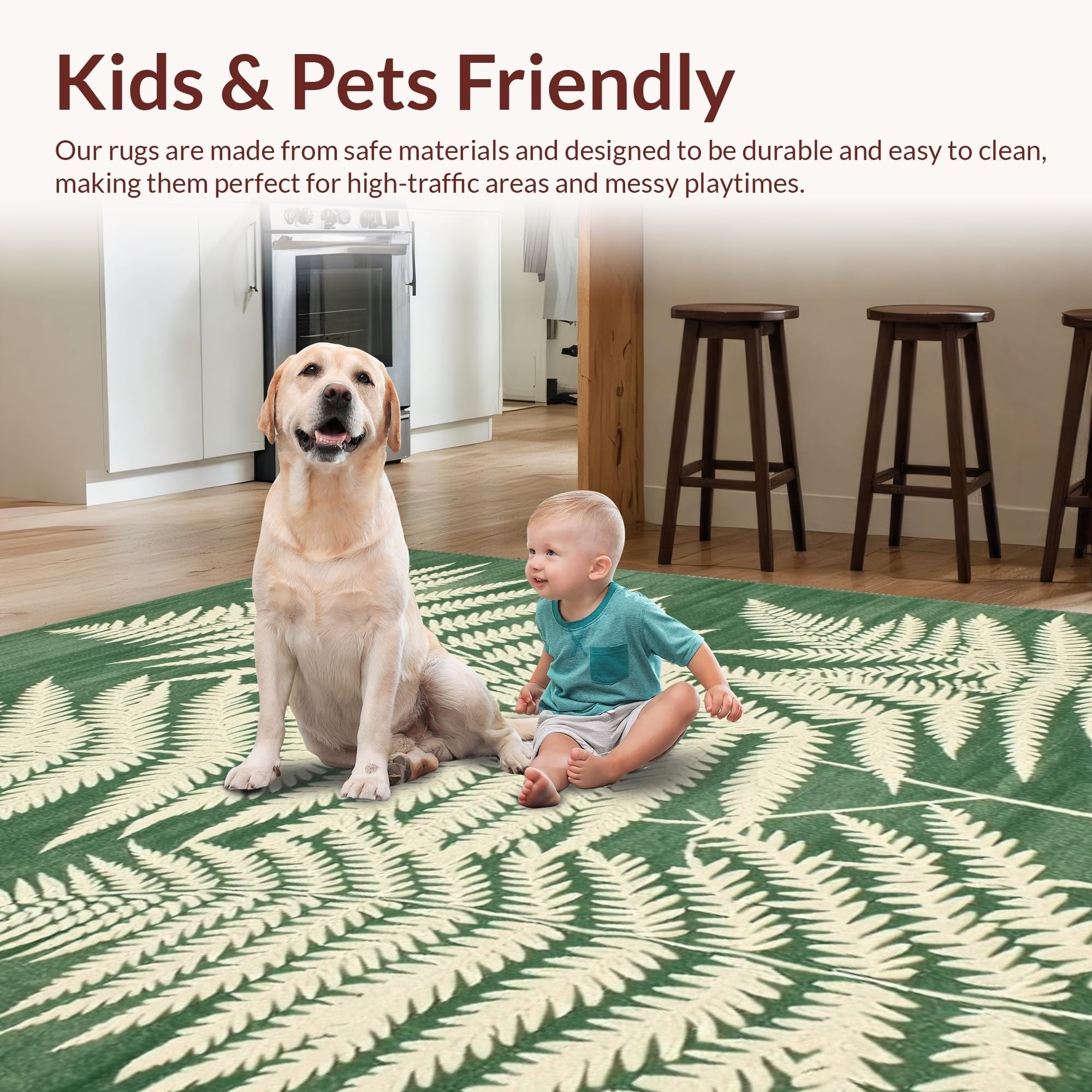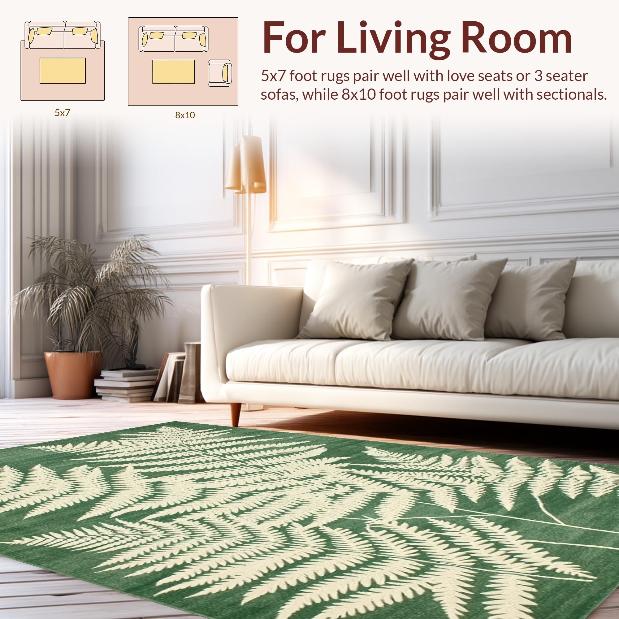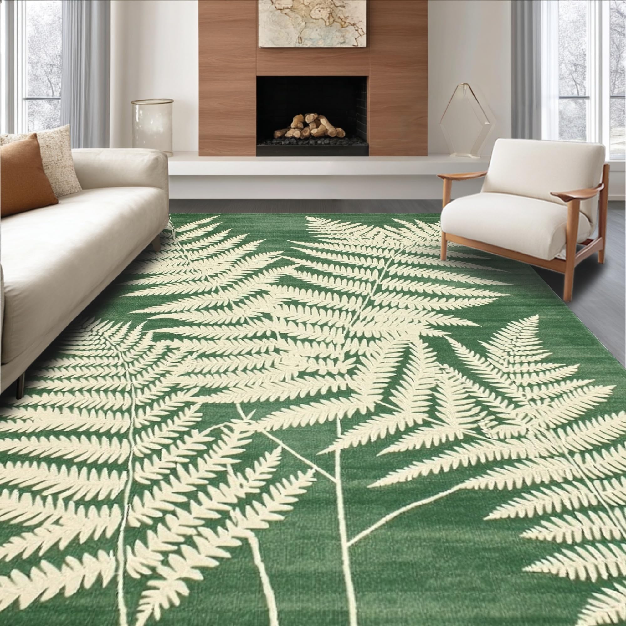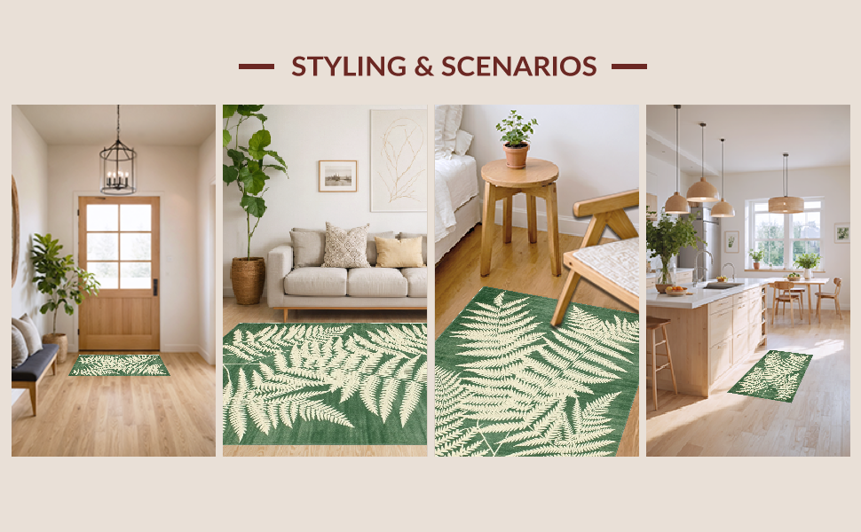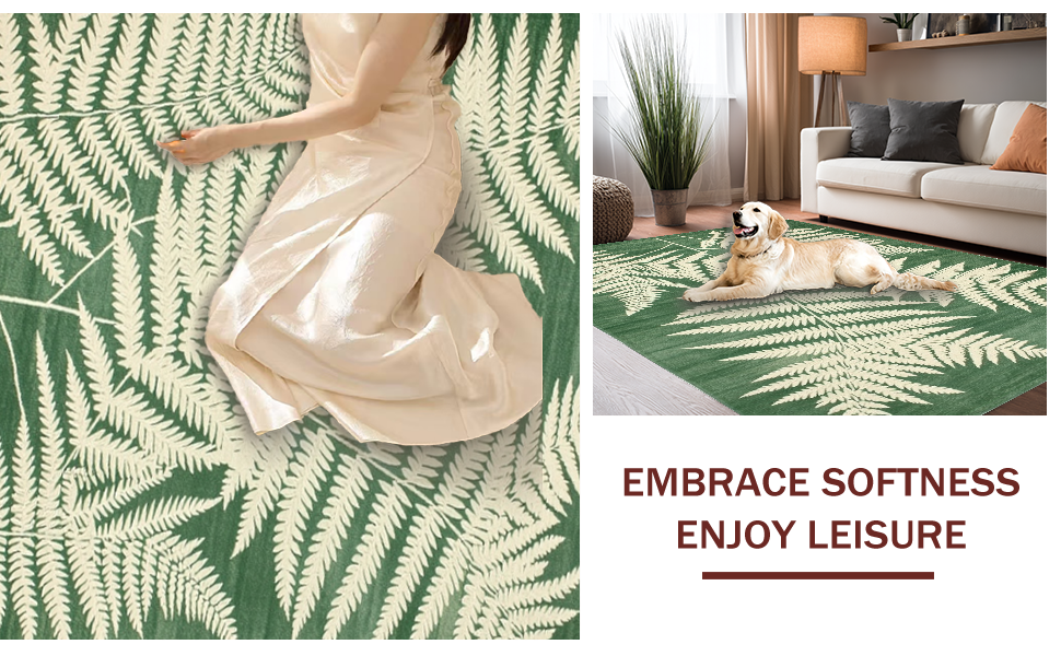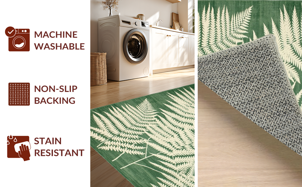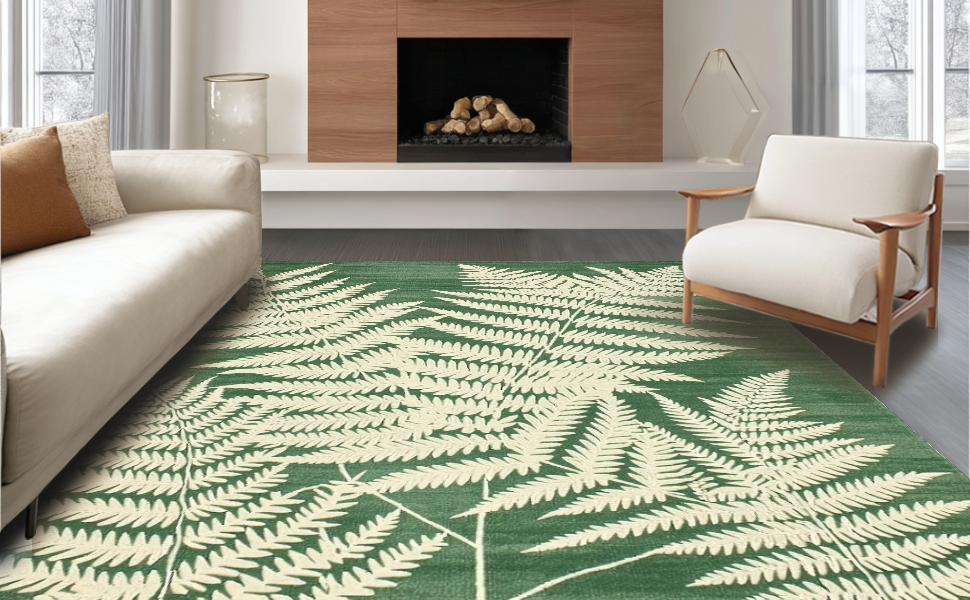 Ultra Soft Area Rug, Non Slip, Stain Resistant, Washable Area Rugs for Living Room, Bedroom, Modern Earthy Wave Pattern(Green) Overview:
