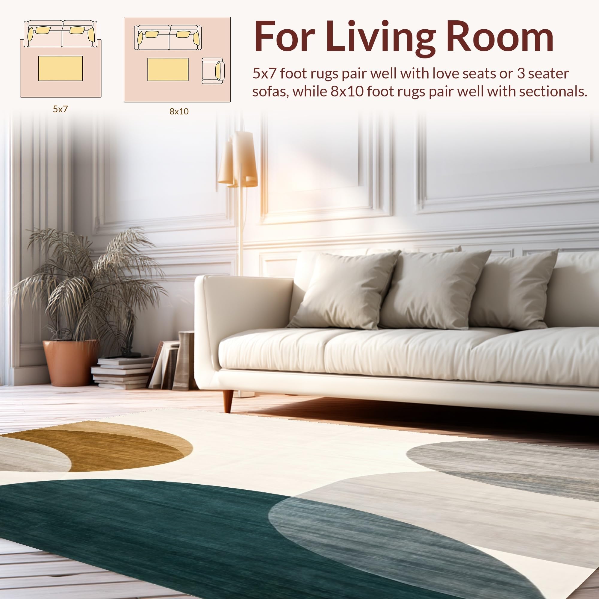 Ultra Soft Area Rug, Non Slip, Stain Resistant, Washable Area Rugs for Living Room, Bedroom, Modern Echoes Abstract Beige Area Stylish(Beige) Overview: