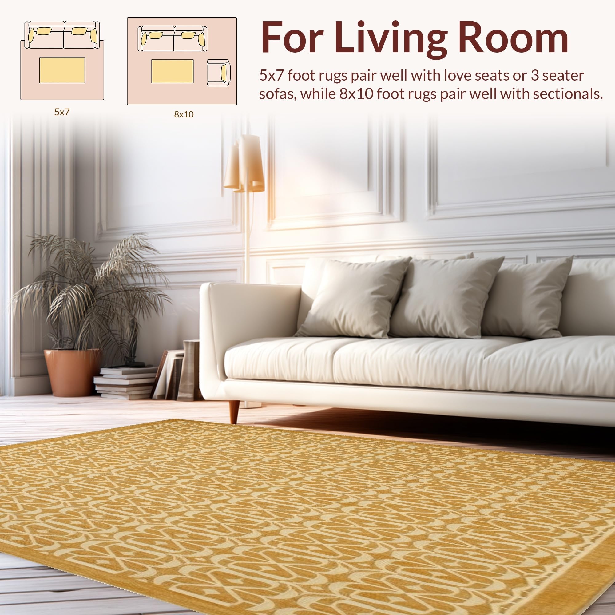 Ultra Soft Area Rug, Non Slip, Stain Resistant, Washable Area Rugs for Living Room, Bedroom, Modern Edge Tan Rug Geometric Pattern Area Rug(Beige) Overview: