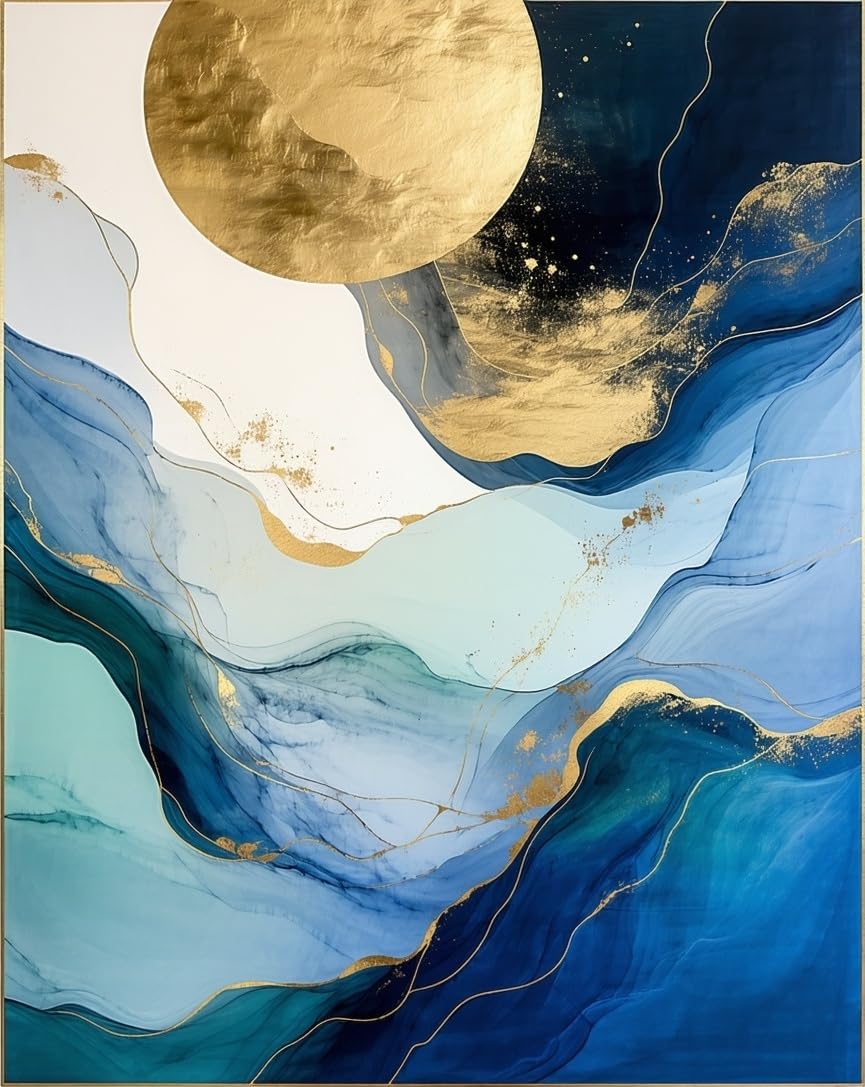 Modern Elegance Area Blending Abstract Marble Swirls and Subtle Botanicals(Blue)