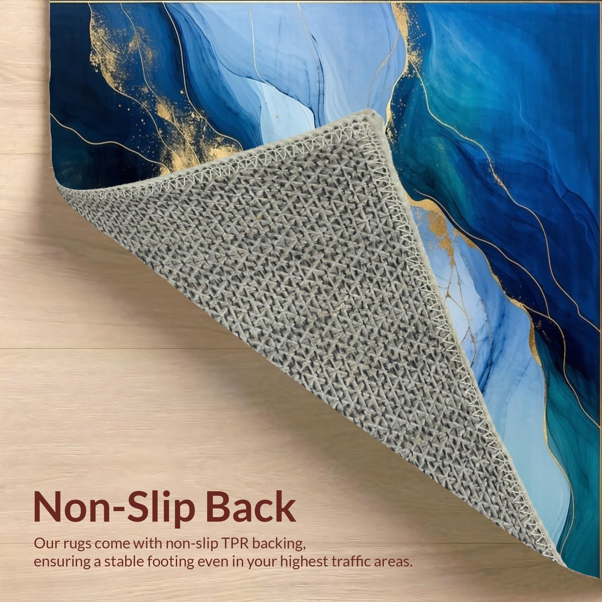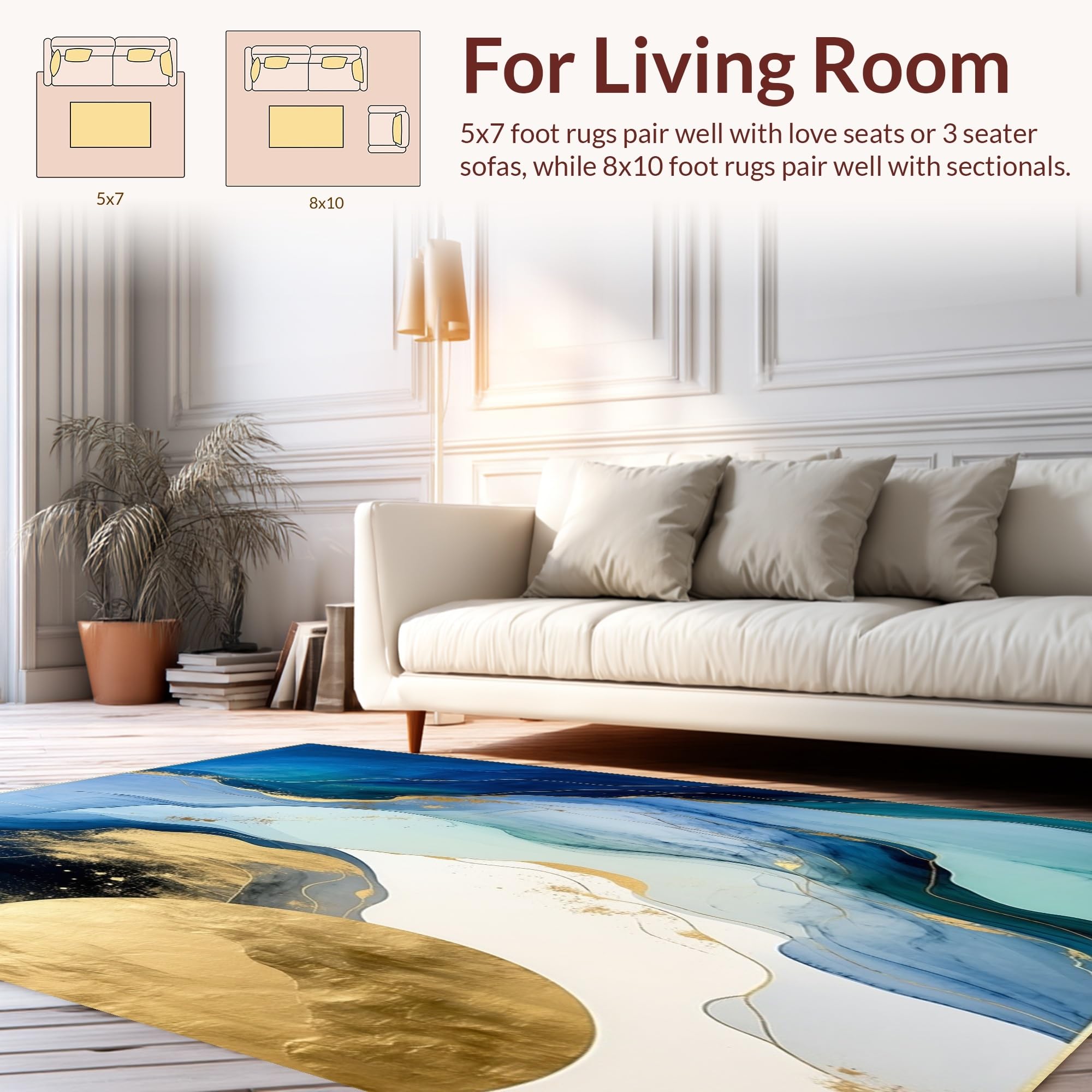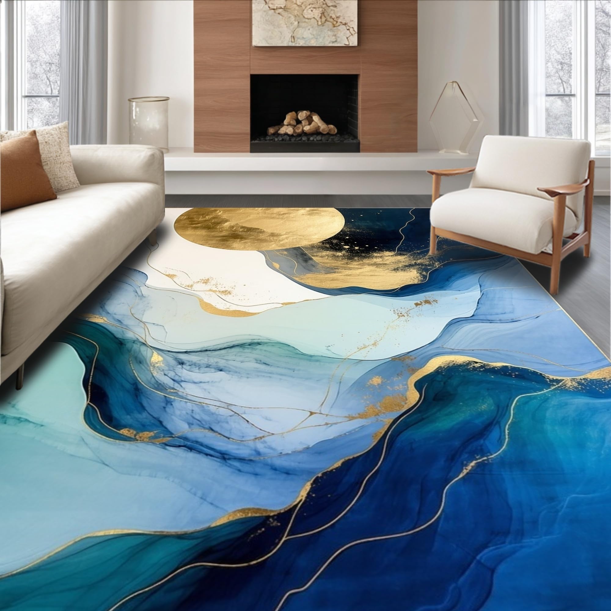 Ultra Soft Area Rug, Non Slip, Stain Resistant, Washable Area Rugs for Living Room, Bedroom, Modern Elegance Area Blending Abstract Marble Swirls and Subtle Botanicals(Blue) Overview: