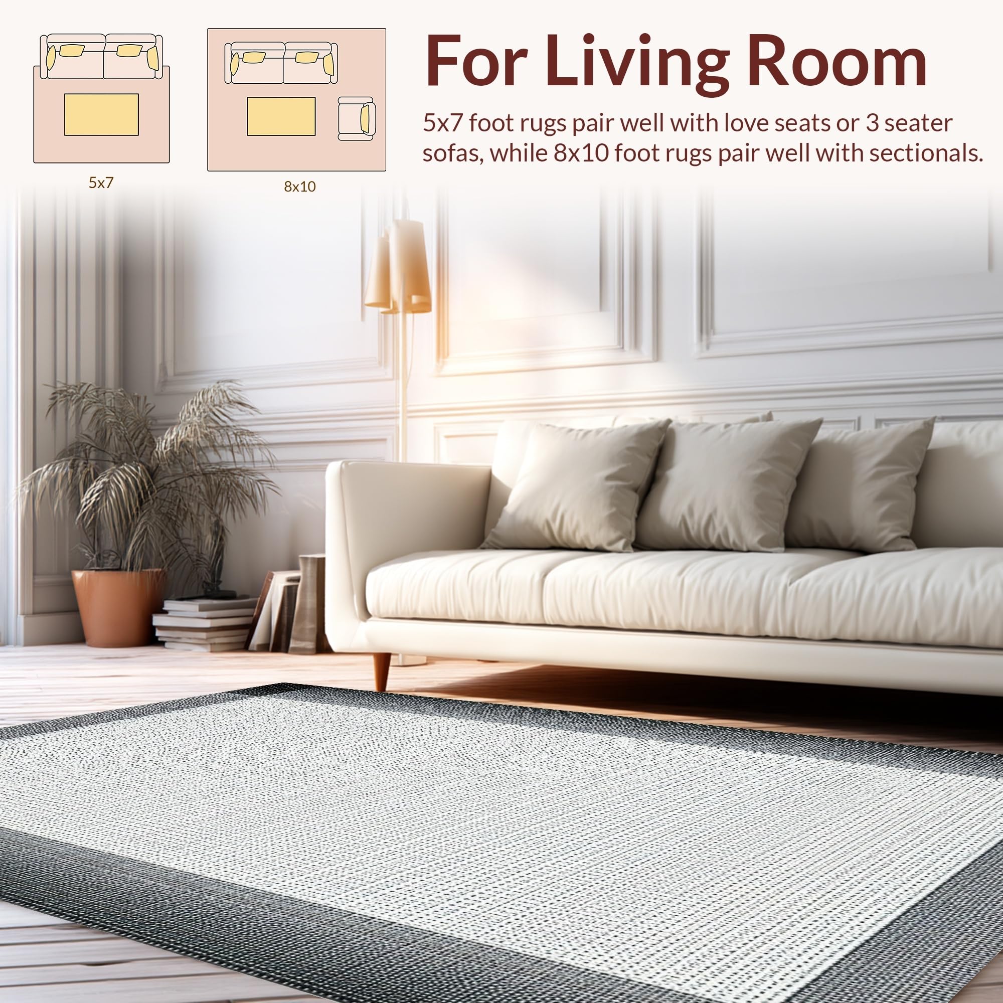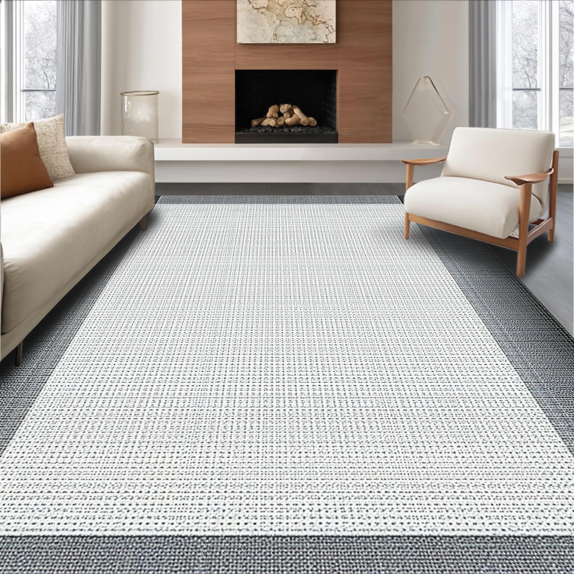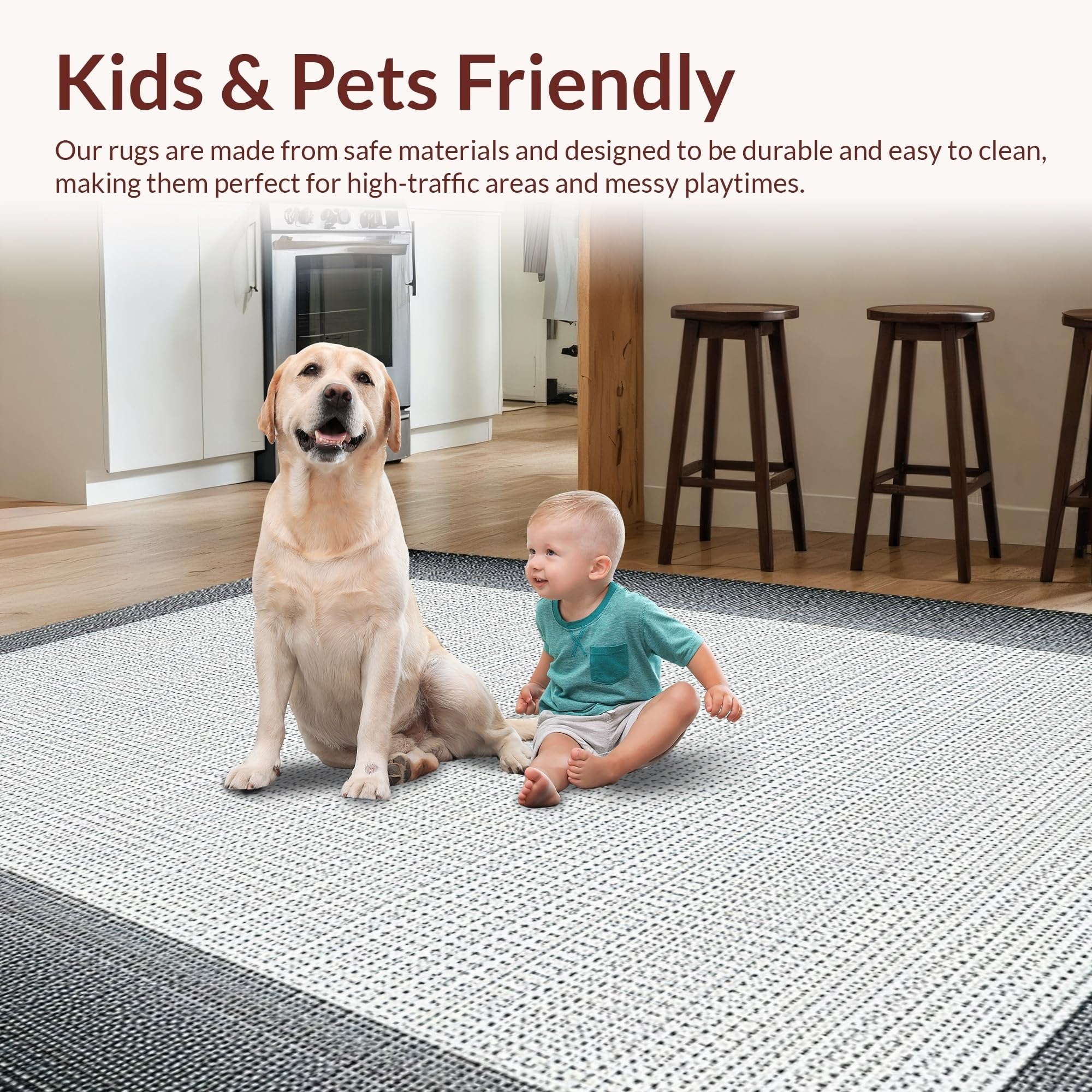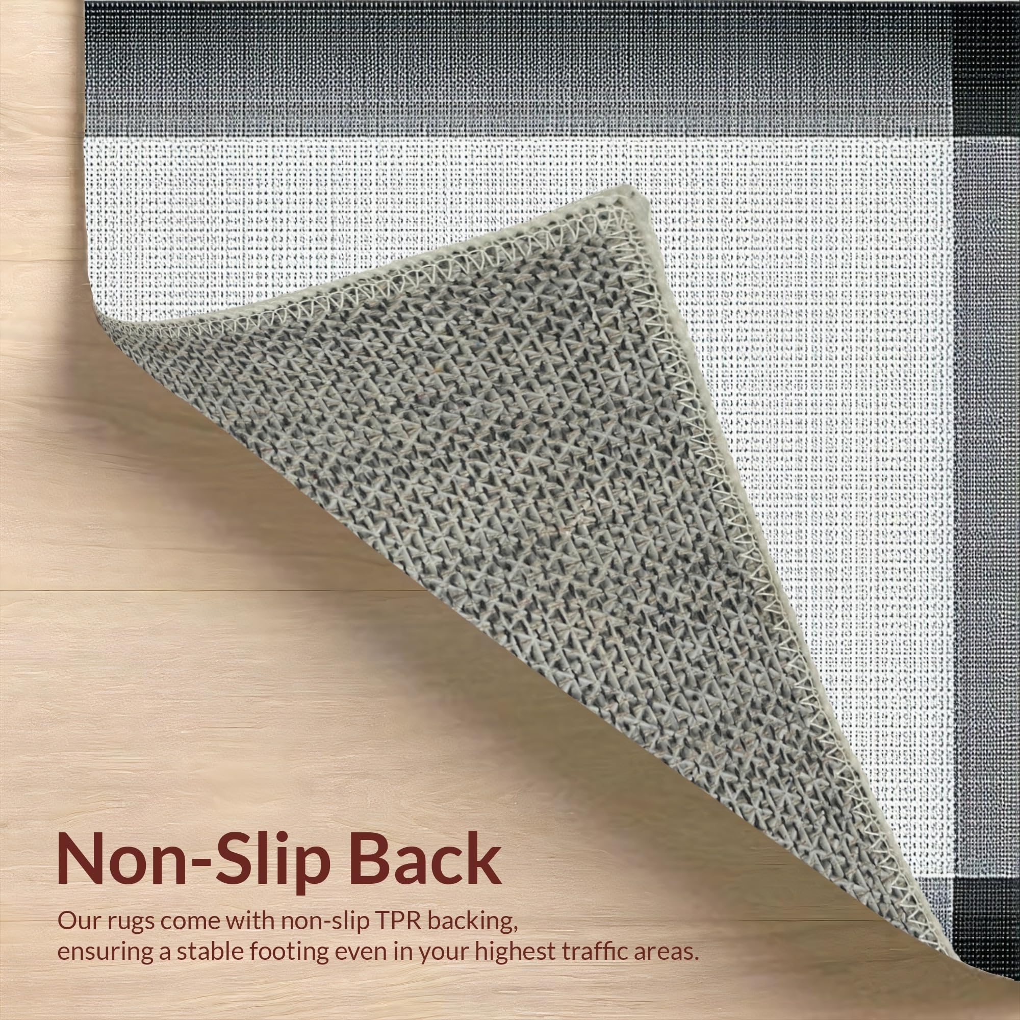 Ultra Soft Area Rug, Non Slip, Stain Resistant, Washable Area Rugs for Living Room, Bedroom, Modern Elegance Black Squares(Gray) Overview: