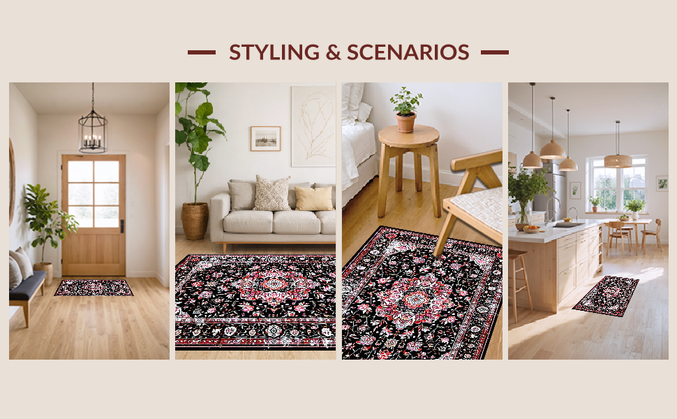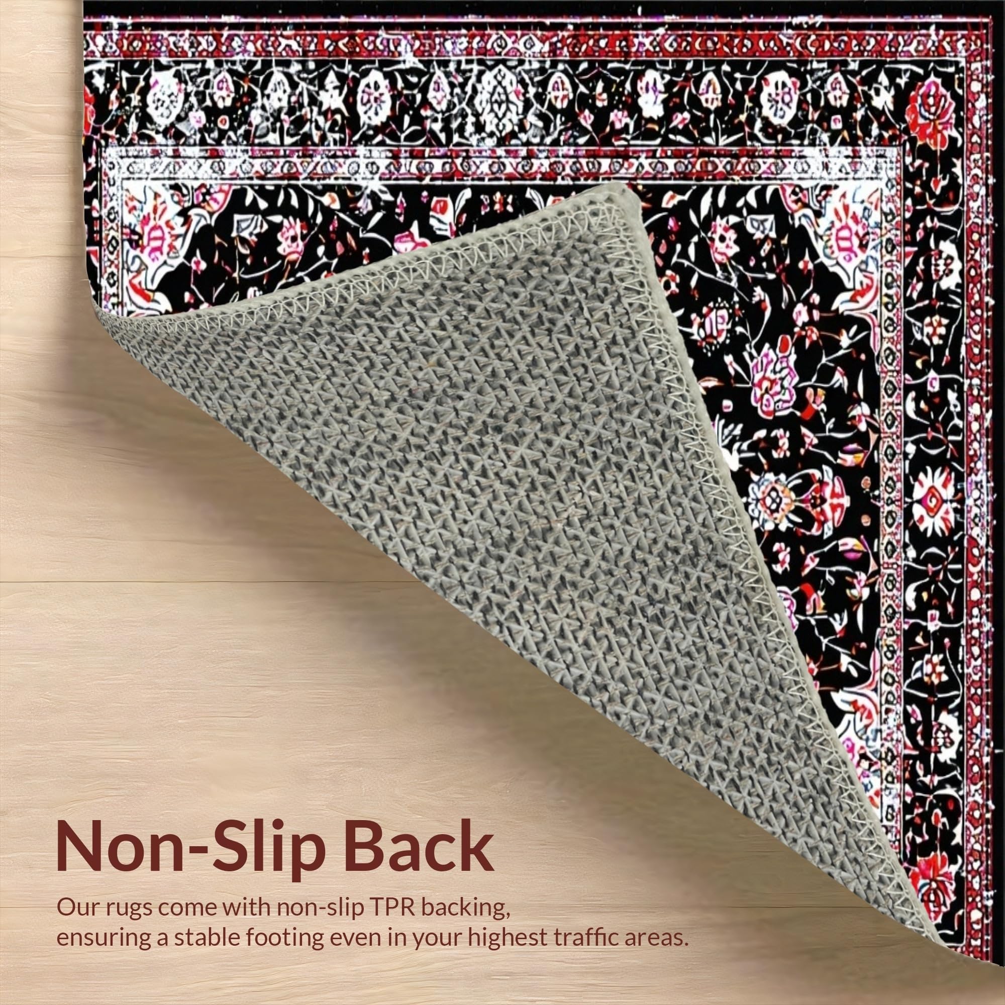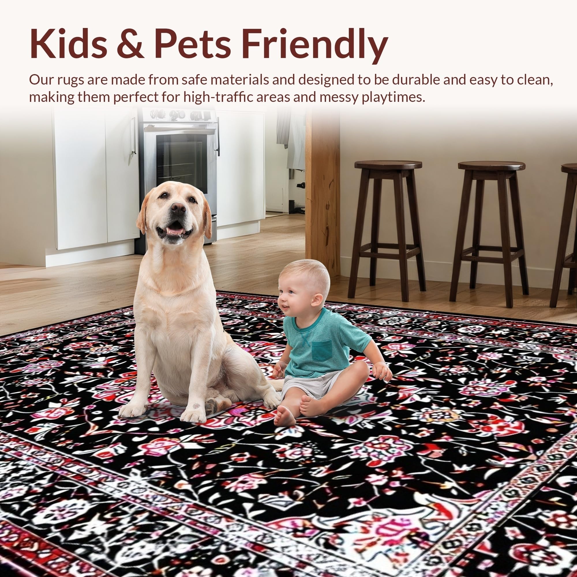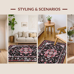 Ultra Soft Area Rug, Non Slip, Stain Resistant, Washable Area Rugs for Living Room, Bedroom, Modern Elegant Floral Geometry(Black) Overview: