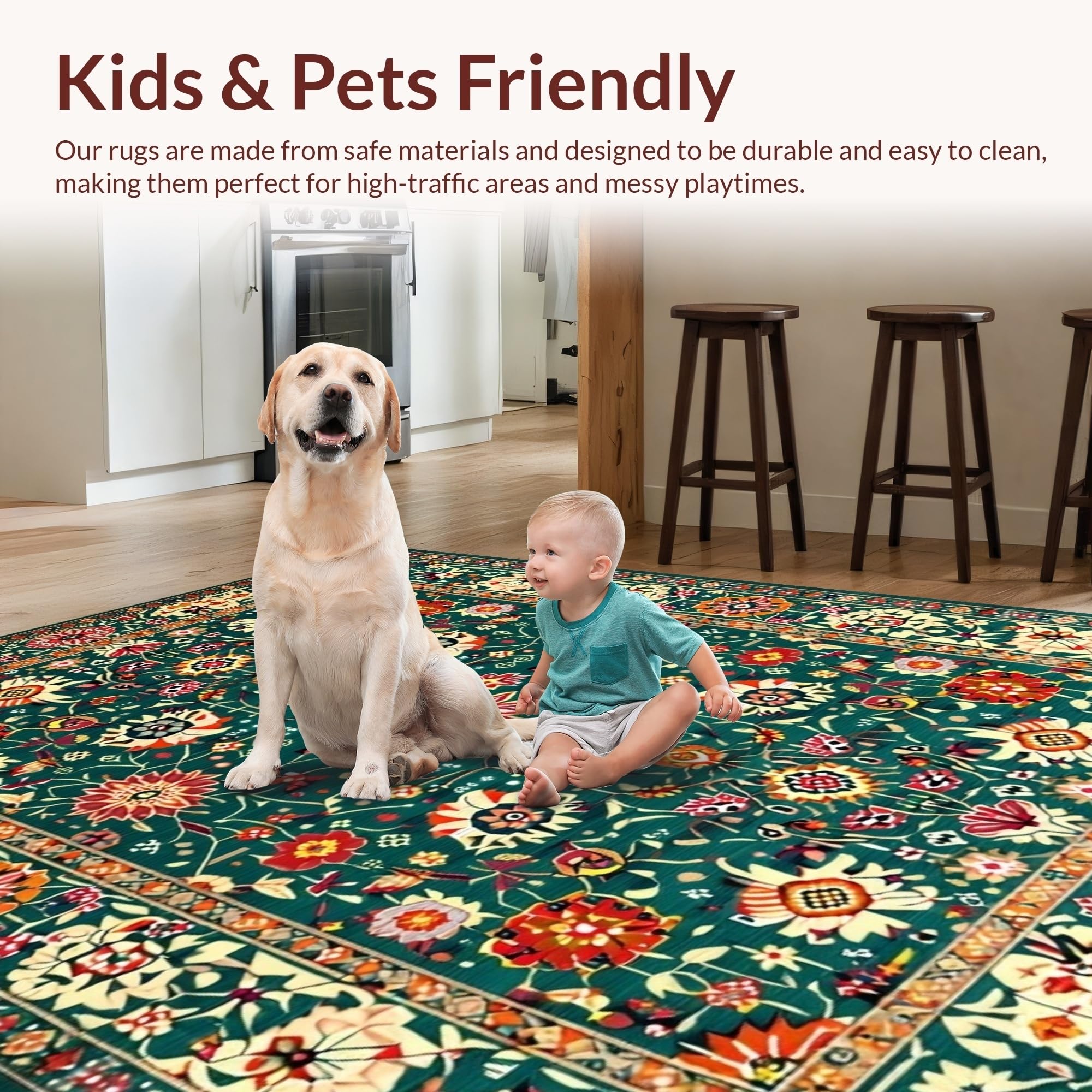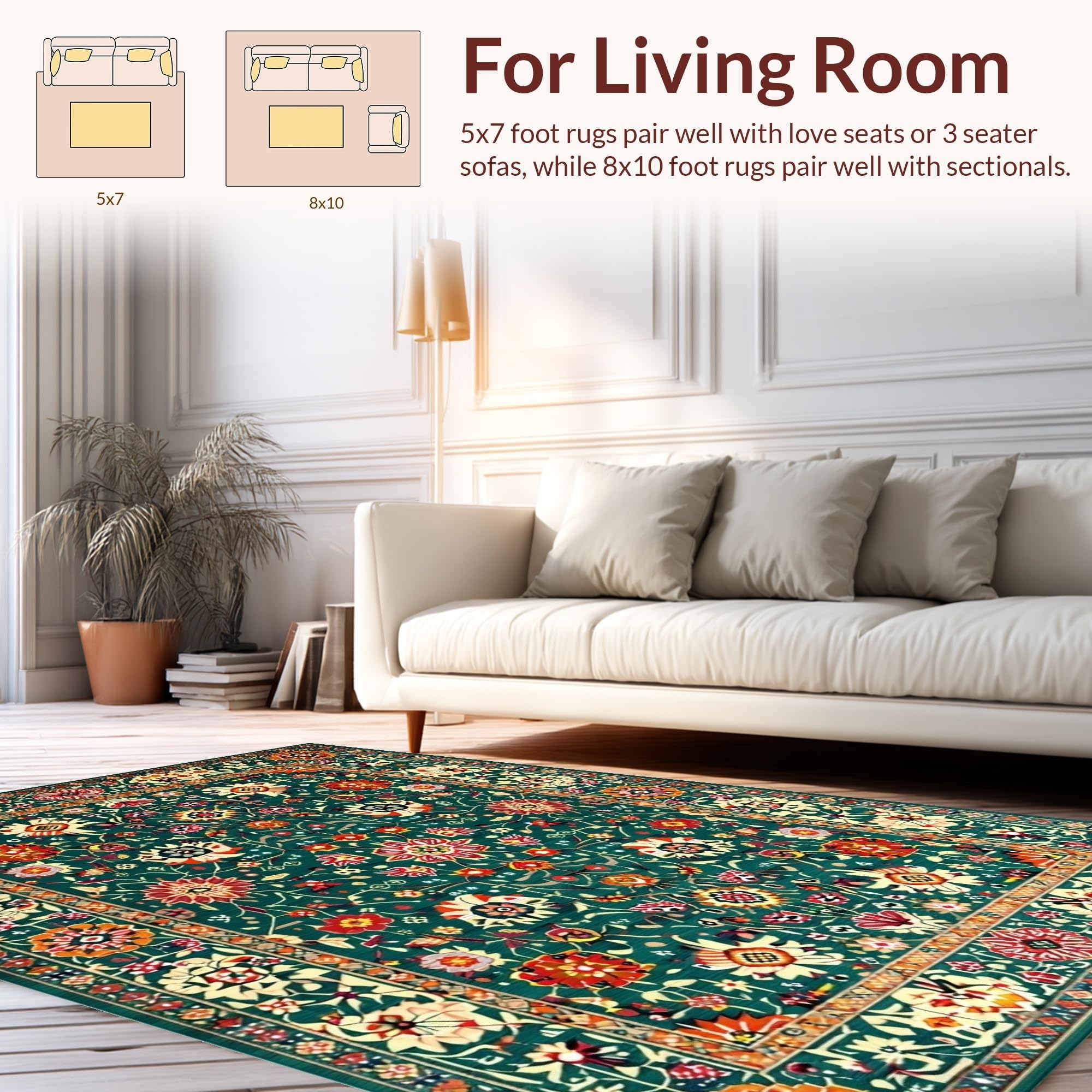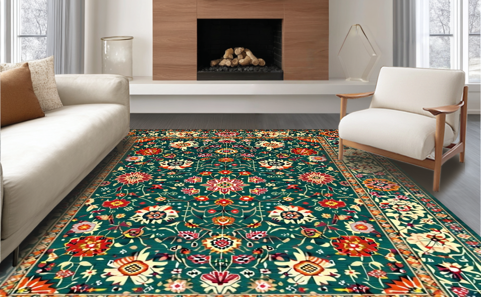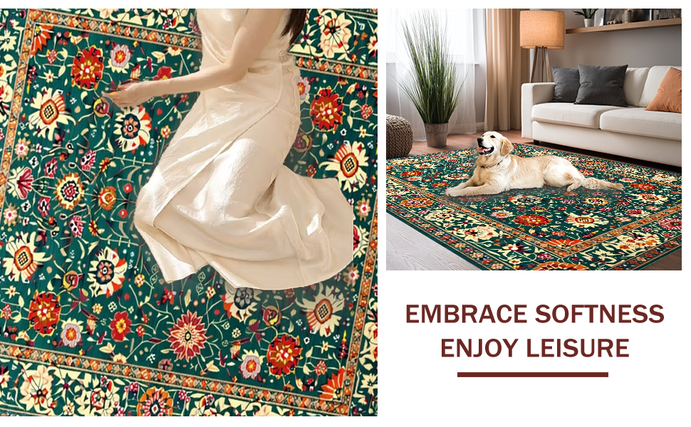 Ultra Soft Area Rug, Non Slip, Stain Resistant, Washable Area Rugs for Living Room, Bedroom, Modern Elegant Leafy Aesthetics(Green) Overview: