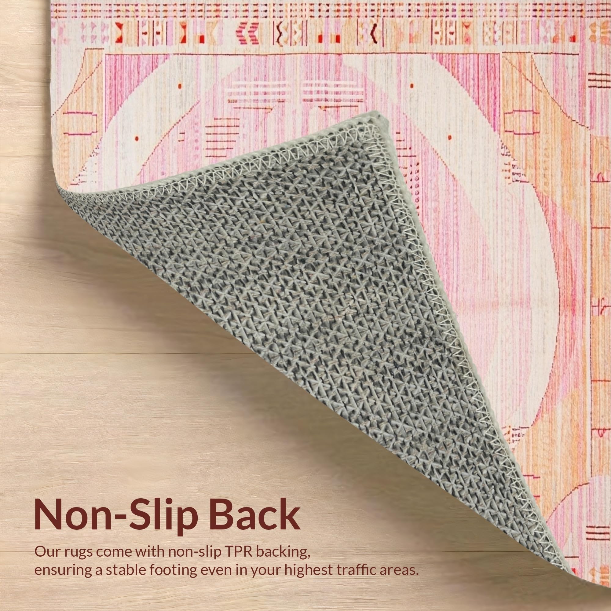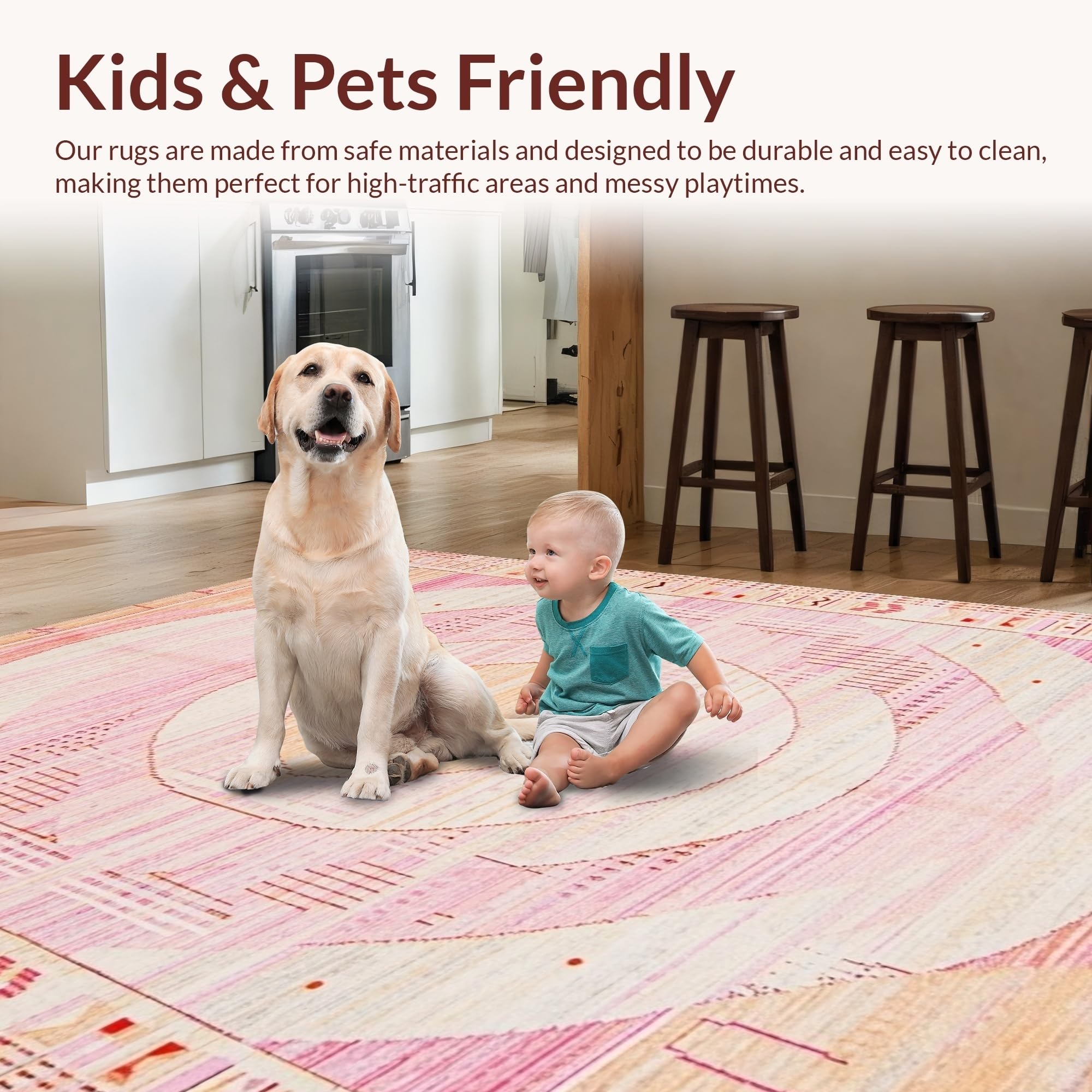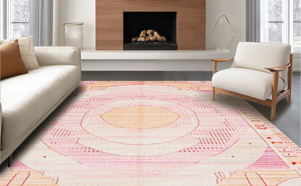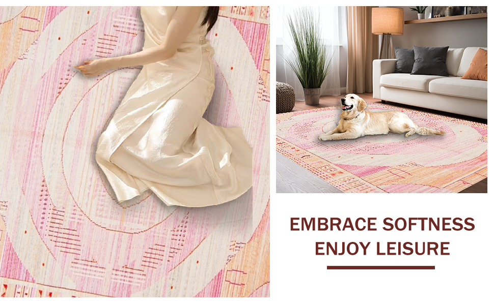 Ultra Soft Area Rug, Non Slip, Stain Resistant, Washable Area Rugs for Living Room, Bedroom, Modern Elegant Linear Geometry(Pink) Overview: