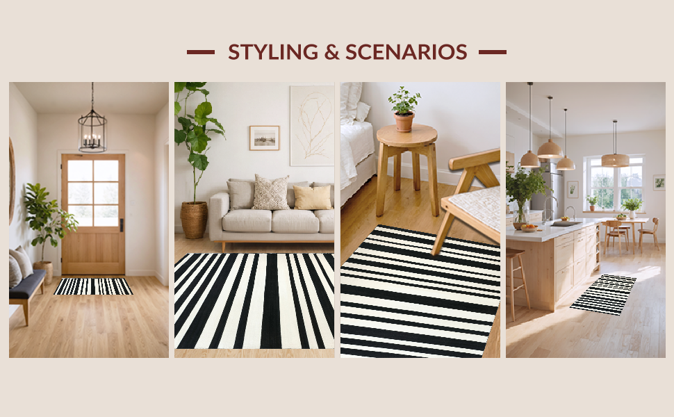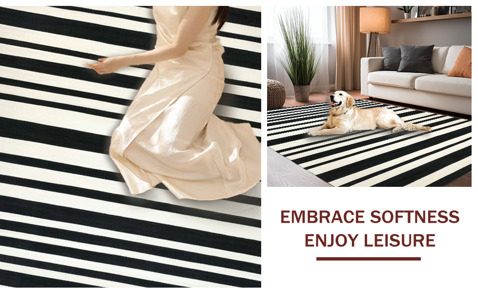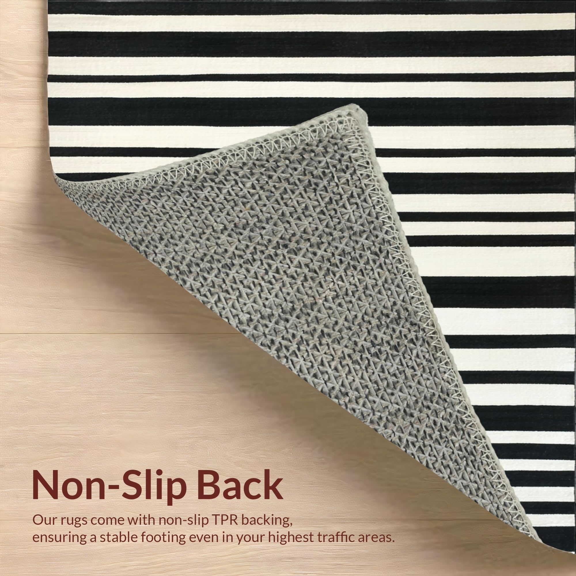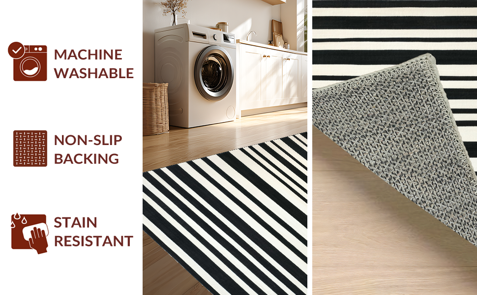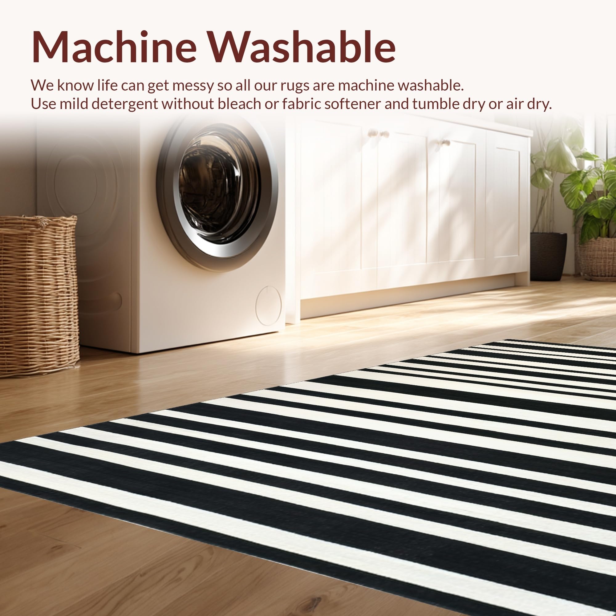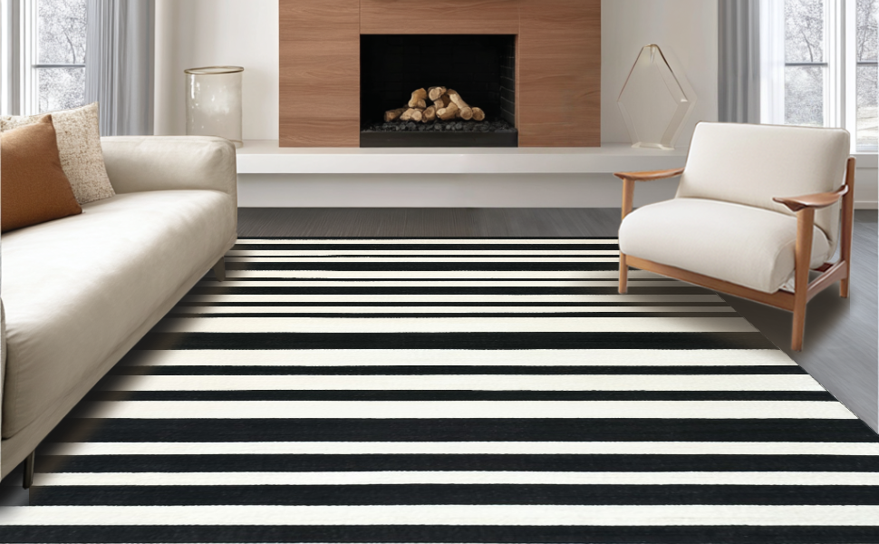Ultra Soft Area Rug, Non Slip, Stain Resistant, Washable Area Rugs for Living Room, Bedroom, Modern Entry Carpet Bold Striped Design Indoor Outdoor Rug(Black) Overview: