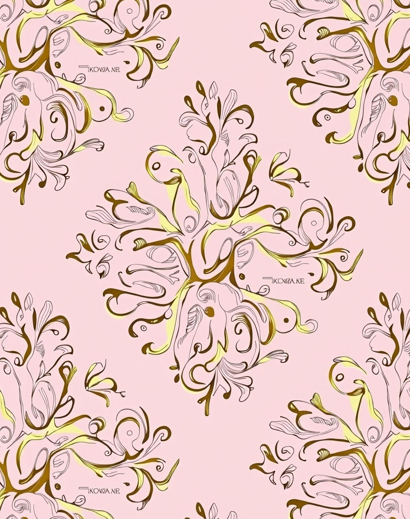 Modern Floral Scroll with Gilded Baroque Highlights(Pink)