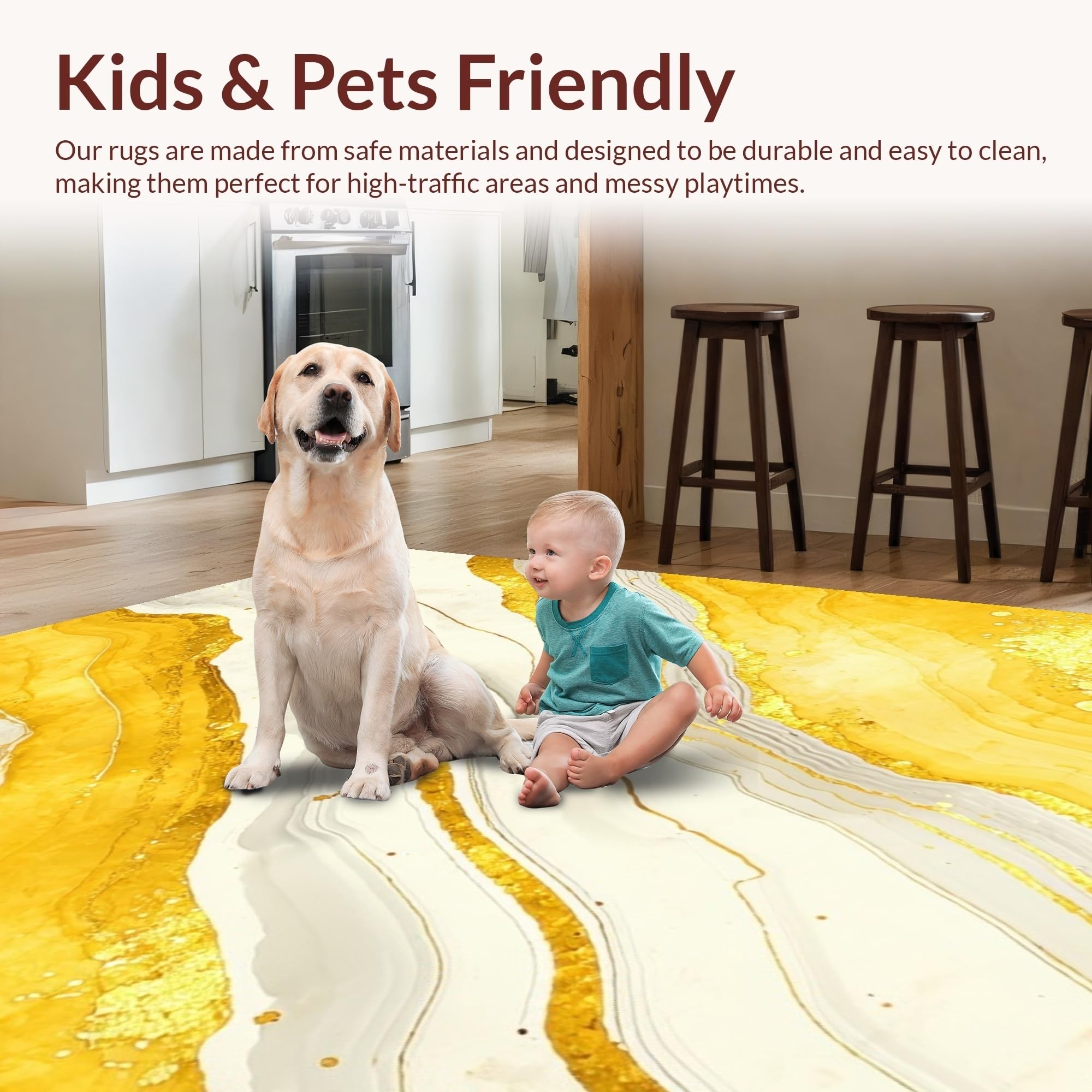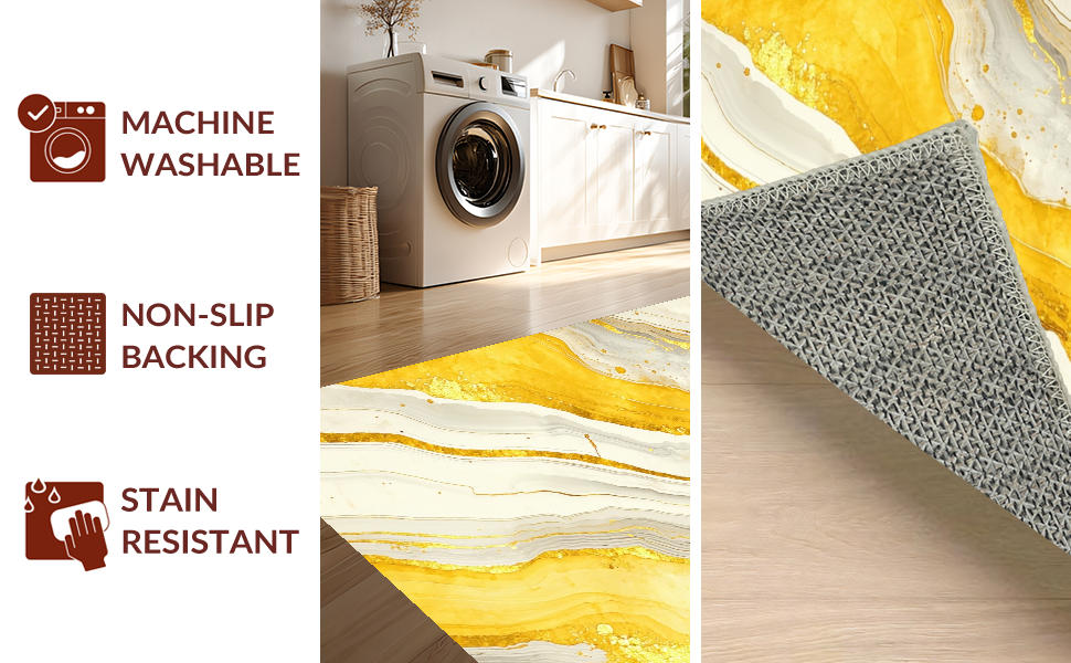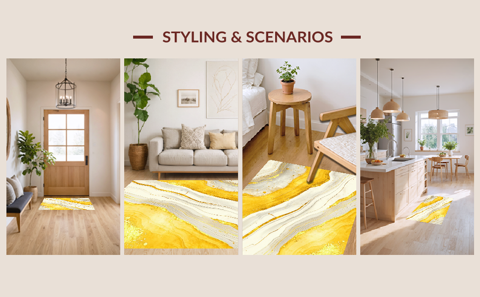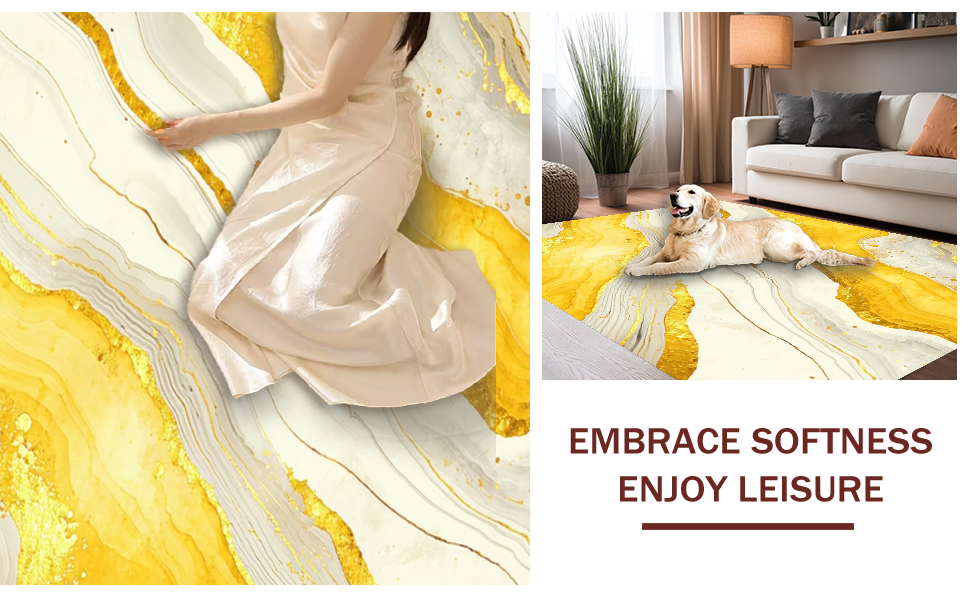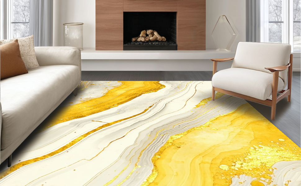 Ultra Soft Area Rug, Non Slip, Stain Resistant, Washable Area Rugs for Living Room, Bedroom, Modern Fluid Artful Expression(Yellow) Overview: