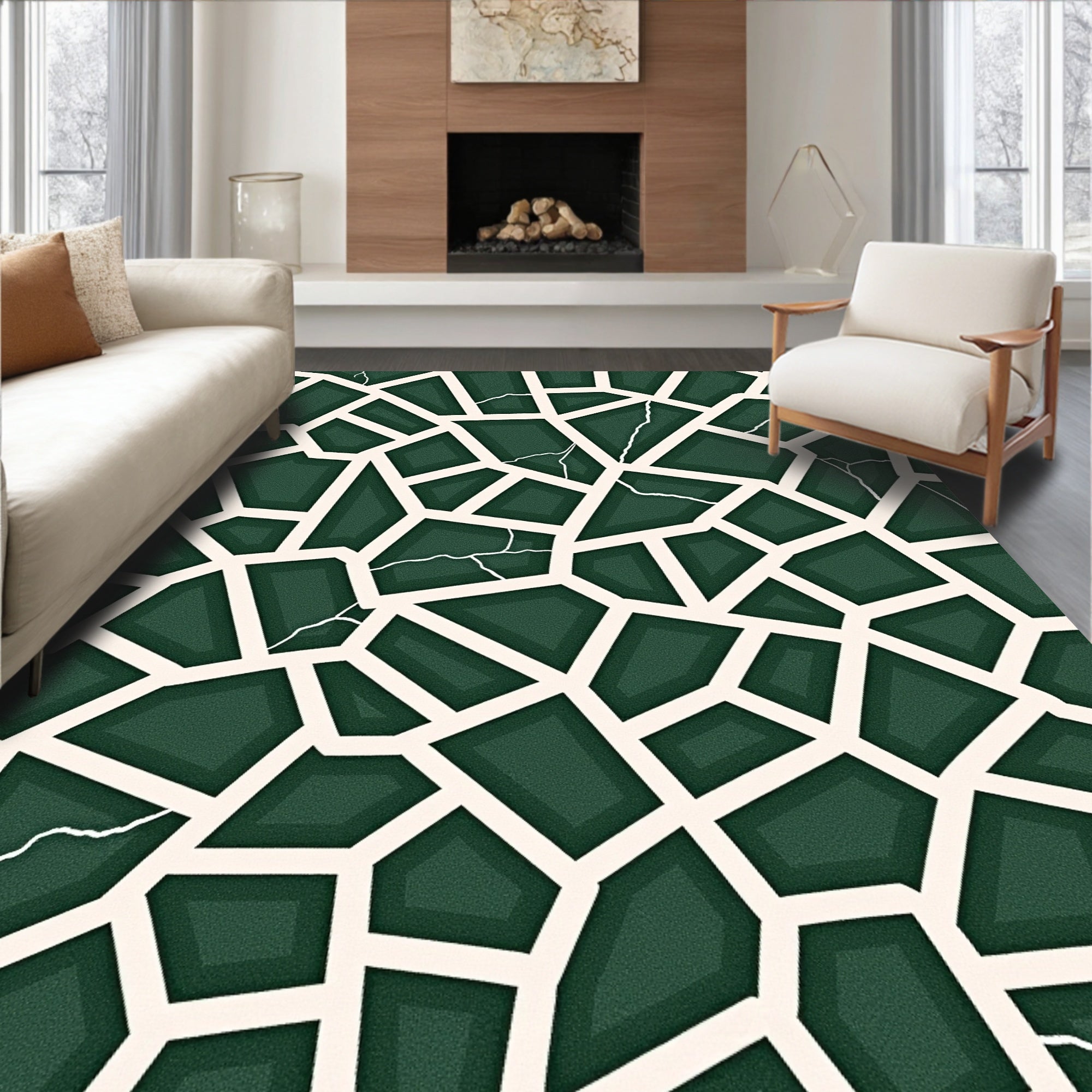 Ultra Soft Area Rug, Non Slip, Stain Resistant, Washable Area Rugs for Living Room, Bedroom, Modern Fractured Stone Mosaic Asymmetrical Artistic Decorative Floor(Green) Overview: