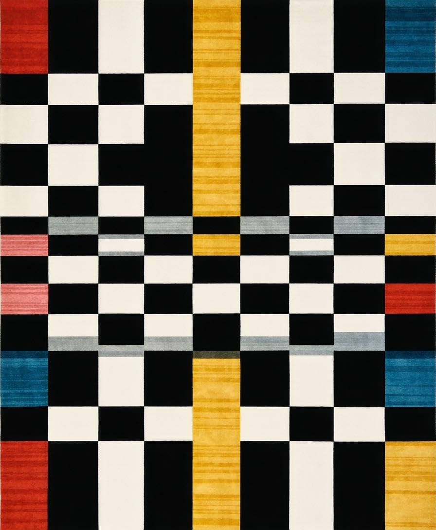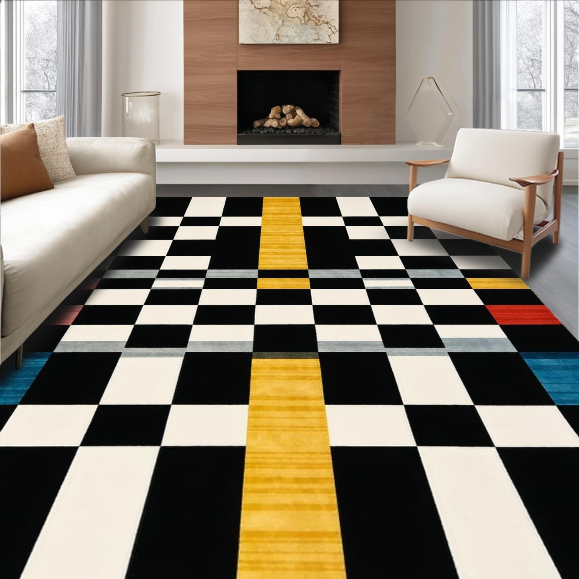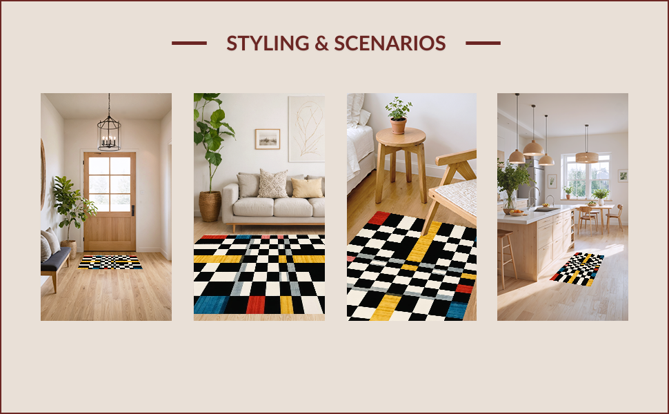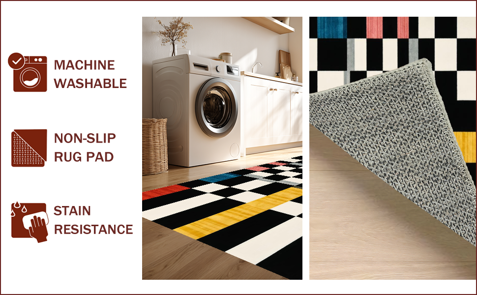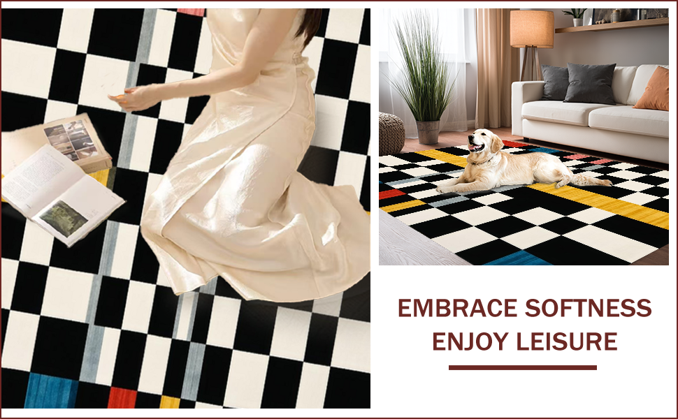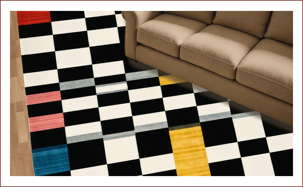 Ultra Soft Area Rug, Non Slip, Stain Resistant, Washable Area Rugs for Living Room, Bedroom, Modern Geometric Checkered Elegance(Black) Overview: