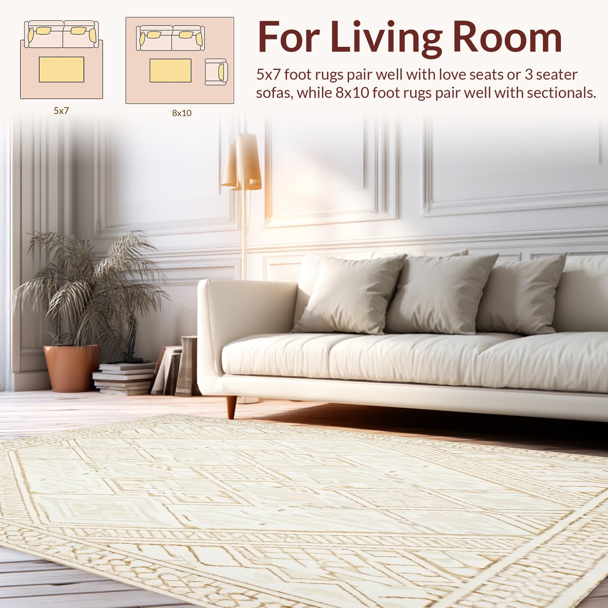 Ultra Soft Area Rug, Non Slip, Stain Resistant, Washable Area Rugs for Living Room, Bedroom, Modern Geometric Cream & Beige Area Diamond Trellis Design(Beige) Overview: