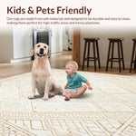 - Soft and Fluffy Comfort: This low pile rug is made from a faux cashmere texture, offering a smooth, soft touch that elevates any room. Ideal for areas where comfort matters without compromising on easy maintenance.