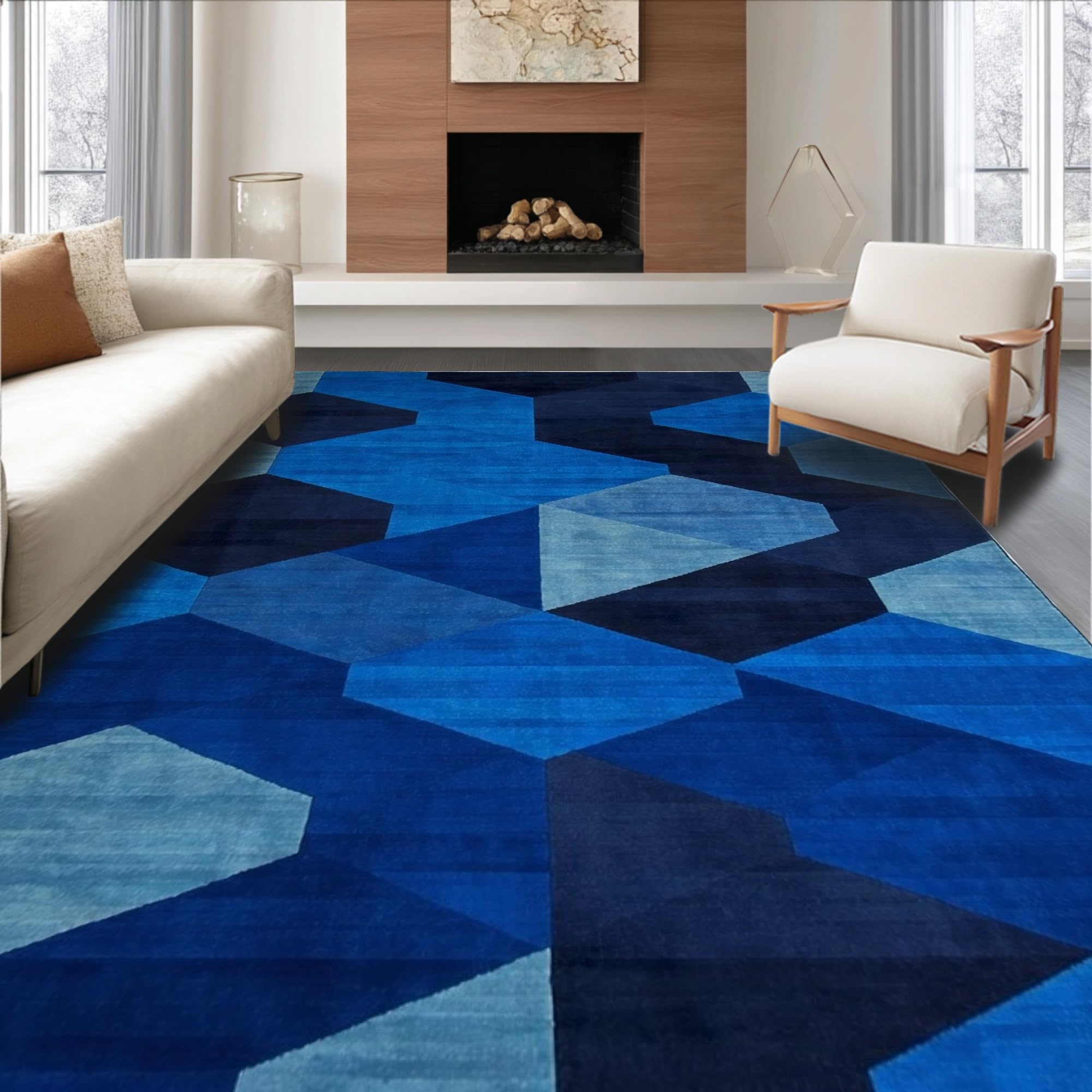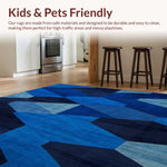 Ultra Soft Area Rug, Non Slip, Stain Resistant, Washable Area Rugs for Living Room, Bedroom, Modern Geometric Entryway Carpet with Artistic Navy Hexagon Pattern(Blue) Overview: