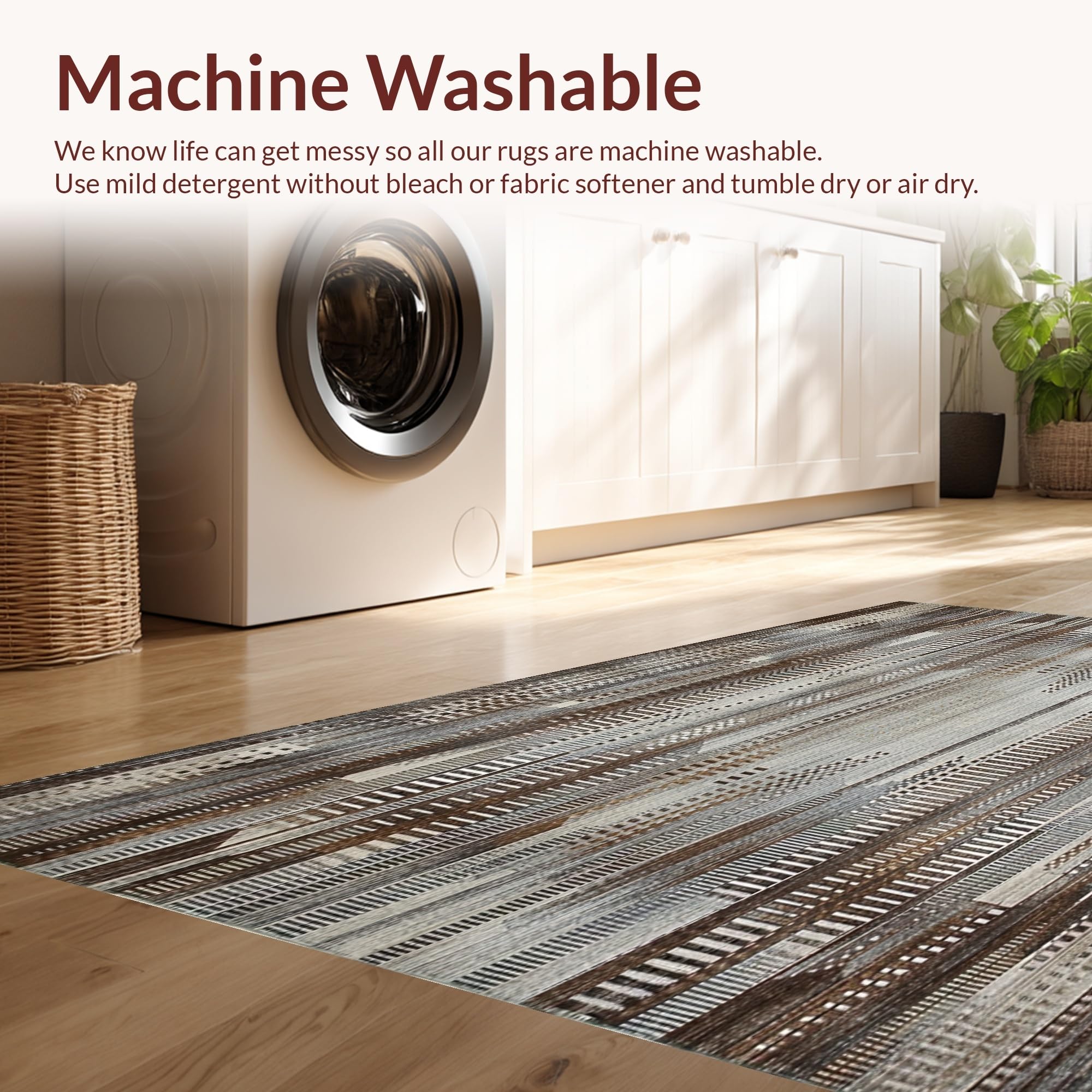 - Machine Washable: Our rugs can be easily thrown in the wash machine.