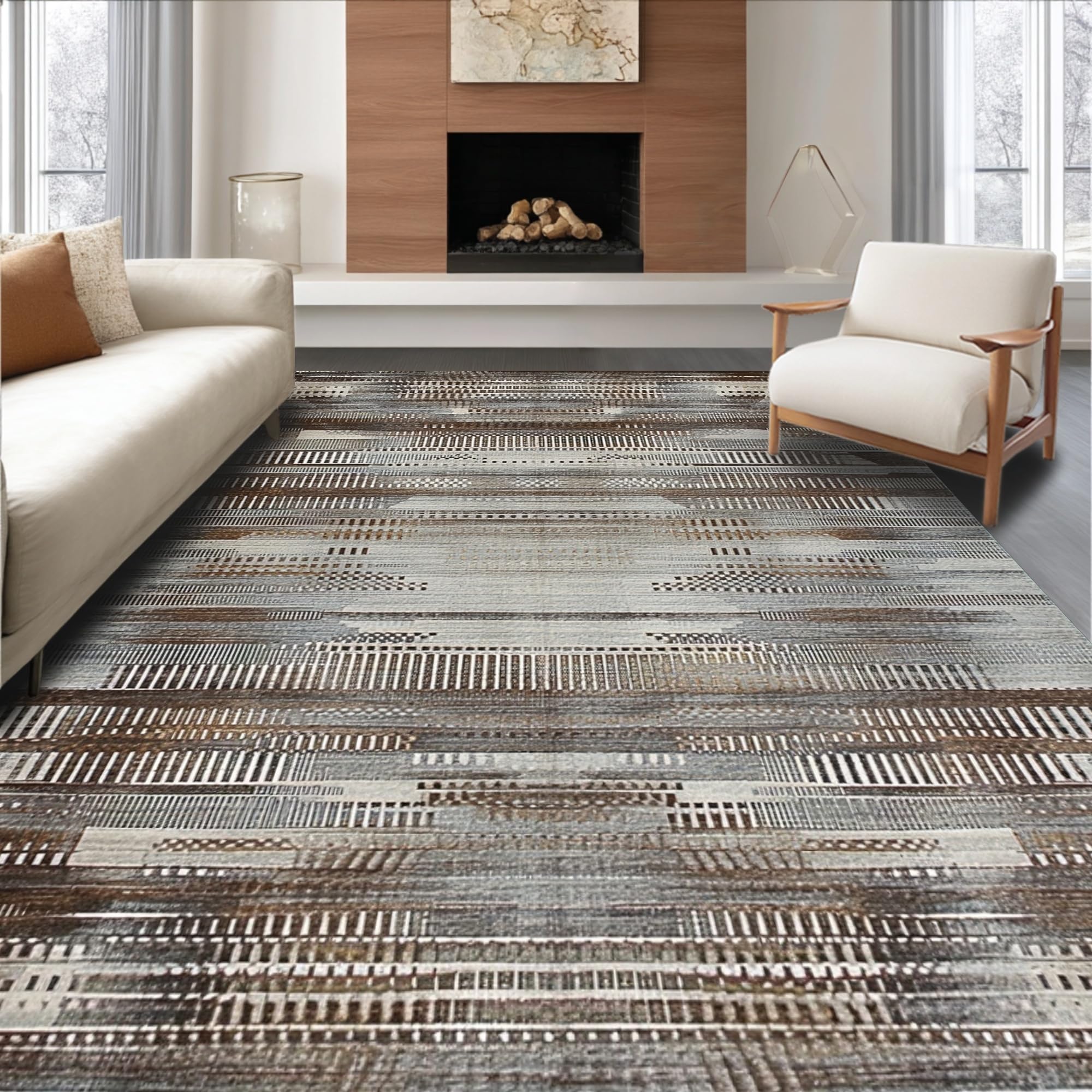 Ultra Soft Area Rug, Non Slip, Stain Resistant, Washable Area Rugs for Living Room, Bedroom, Modern Geometric Ink Wash(Gray) Overview: