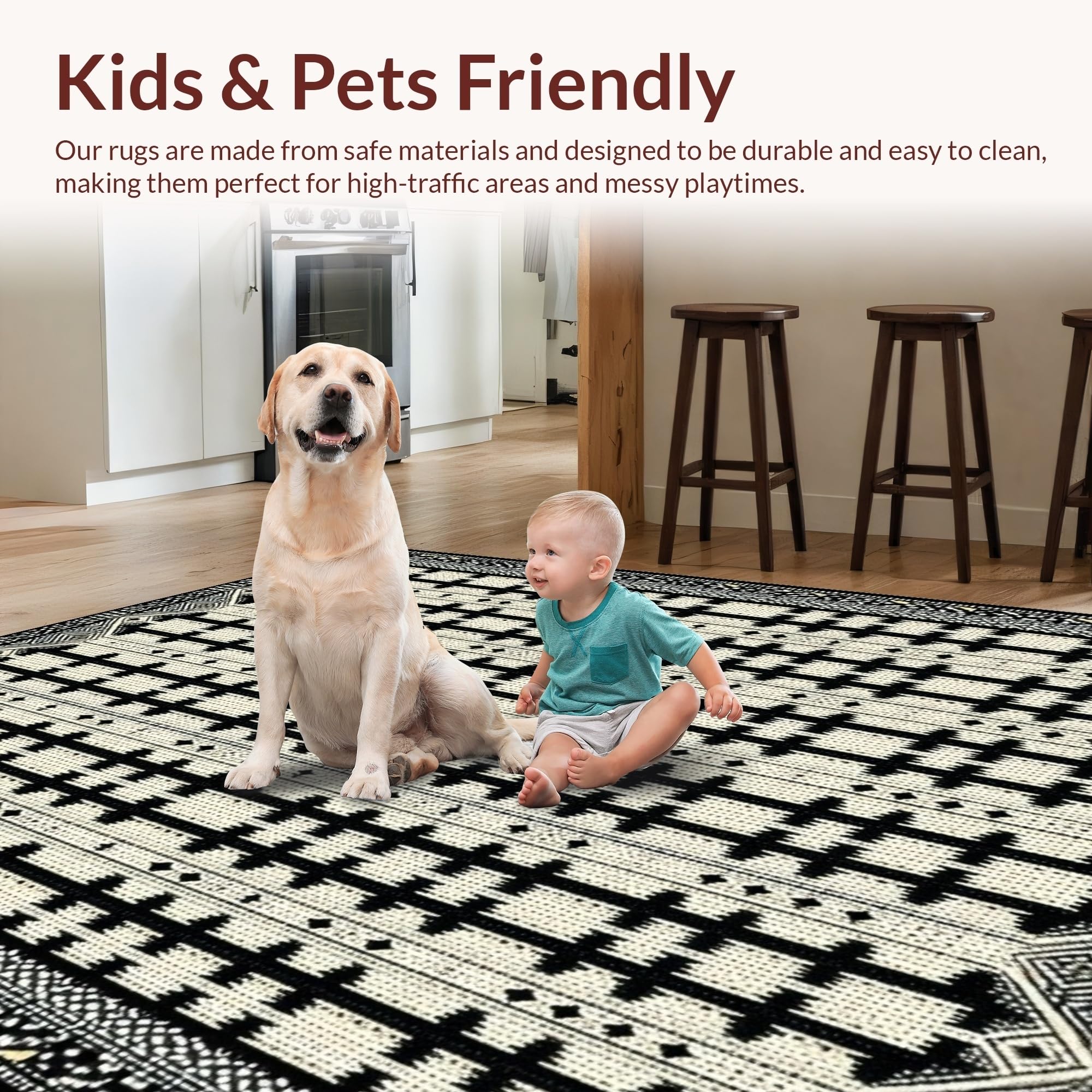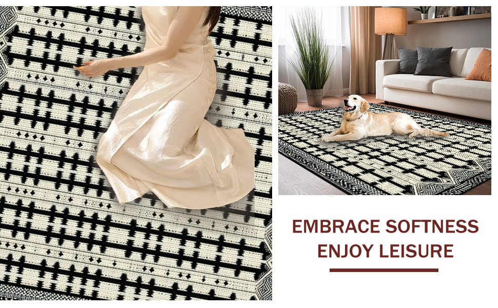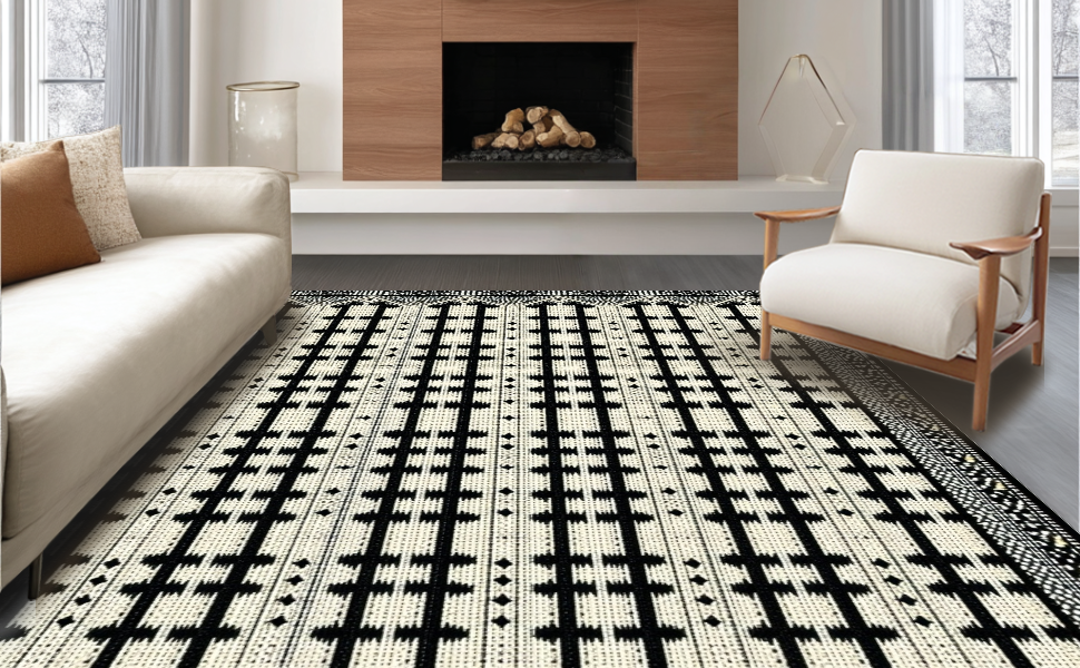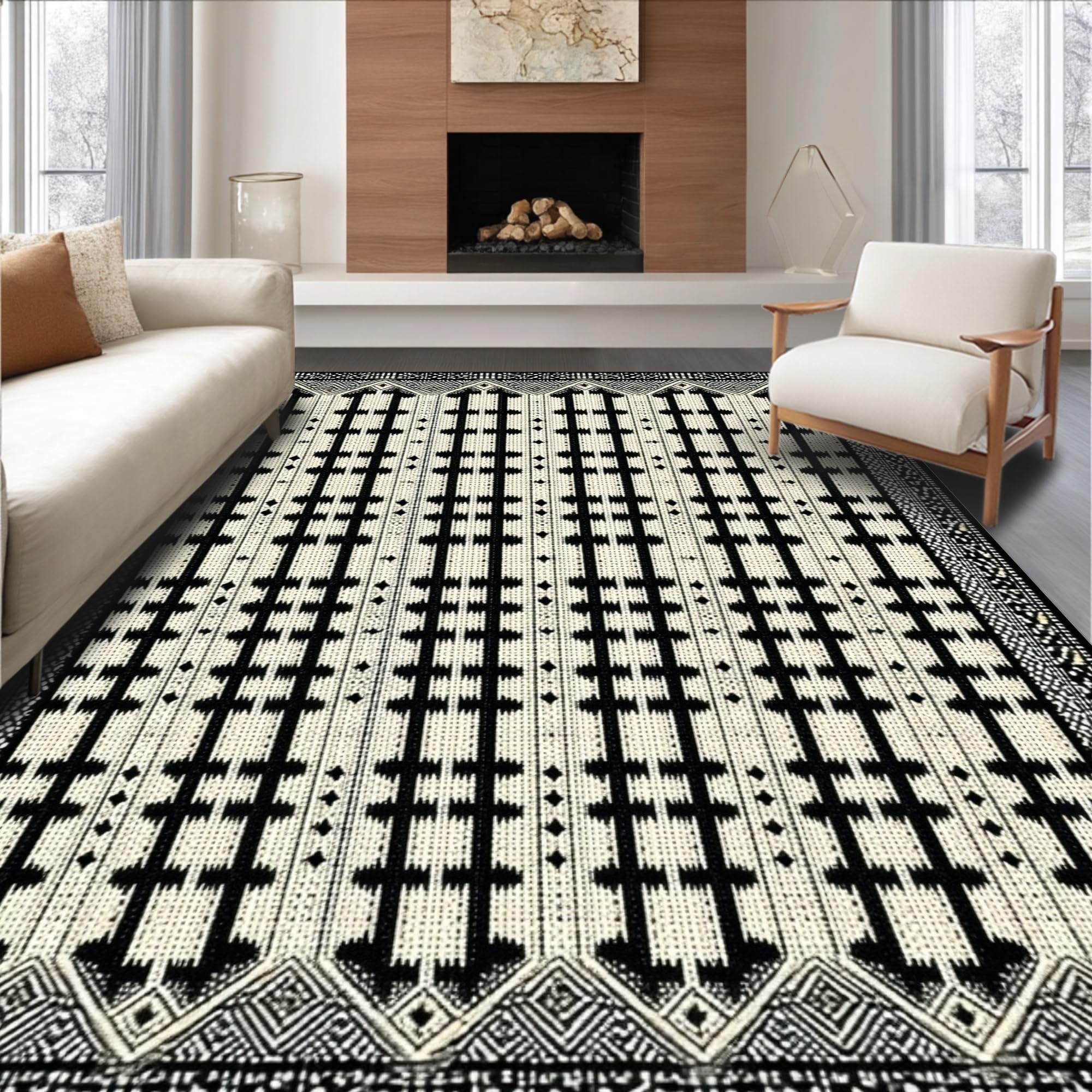 Ultra Soft Area Rug, Non Slip, Stain Resistant, Washable Area Rugs for Living Room, Bedroom, Modern Geometric Lattice Motif(Black) Overview: