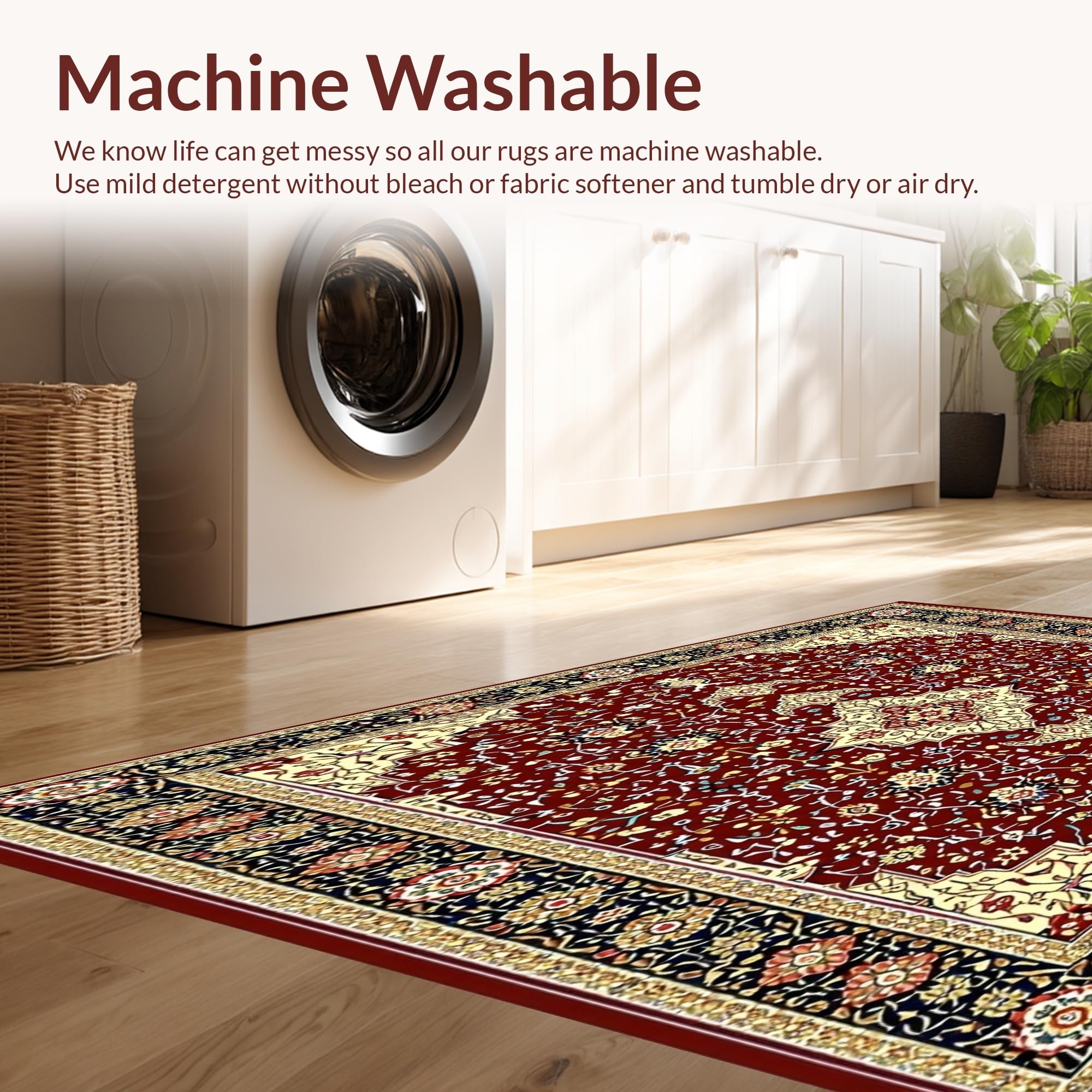 - Machine Washable: Our rugs can be easily thrown in the wash machine.