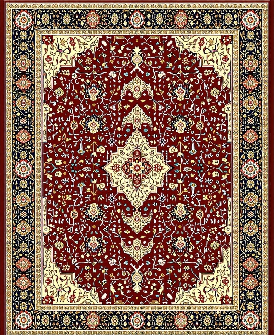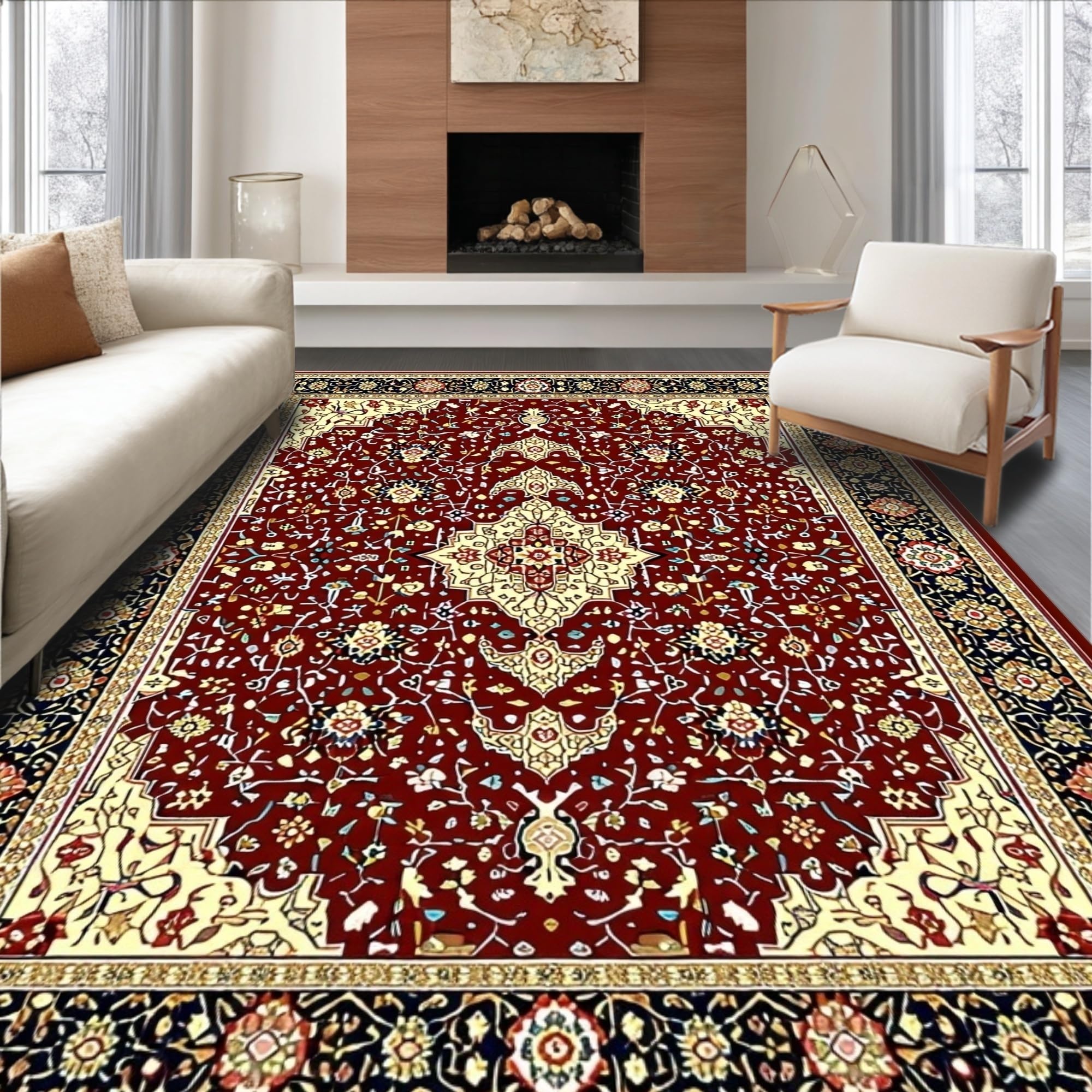 Ultra Soft Area Rug, Non Slip, Stain Resistant, Washable Area Rugs for Living Room, Bedroom, Modern Geometric Medallion Area(Red) Overview: