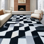 Ultra Soft Area Rug, Non Slip, Stain Resistant, Washable Area Rugs for Living Room, Bedroom, Modern Geometric Non-Shedding(Black) Overview: